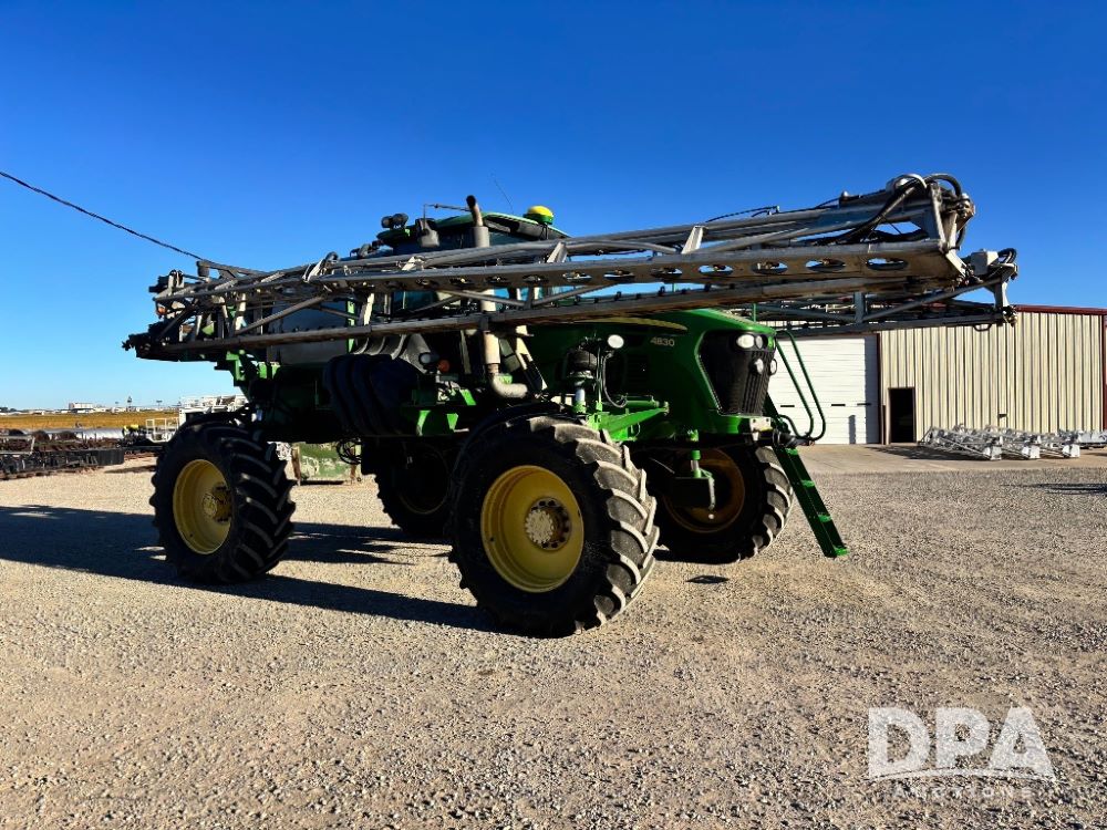 2013 John Deere 4830 Sprayer (GP11730), John Deere diesel engine, hydrostatic transmission, heat, air conditioning, Am/Fm radio, 1,000 gallon stainless steel liquid system, 120' aluminum spray boom, stainless steel chemical inductor tank, front fill option, 380/90R46 tires, fenders, GreenStar monitor, shows 4,933 hours.