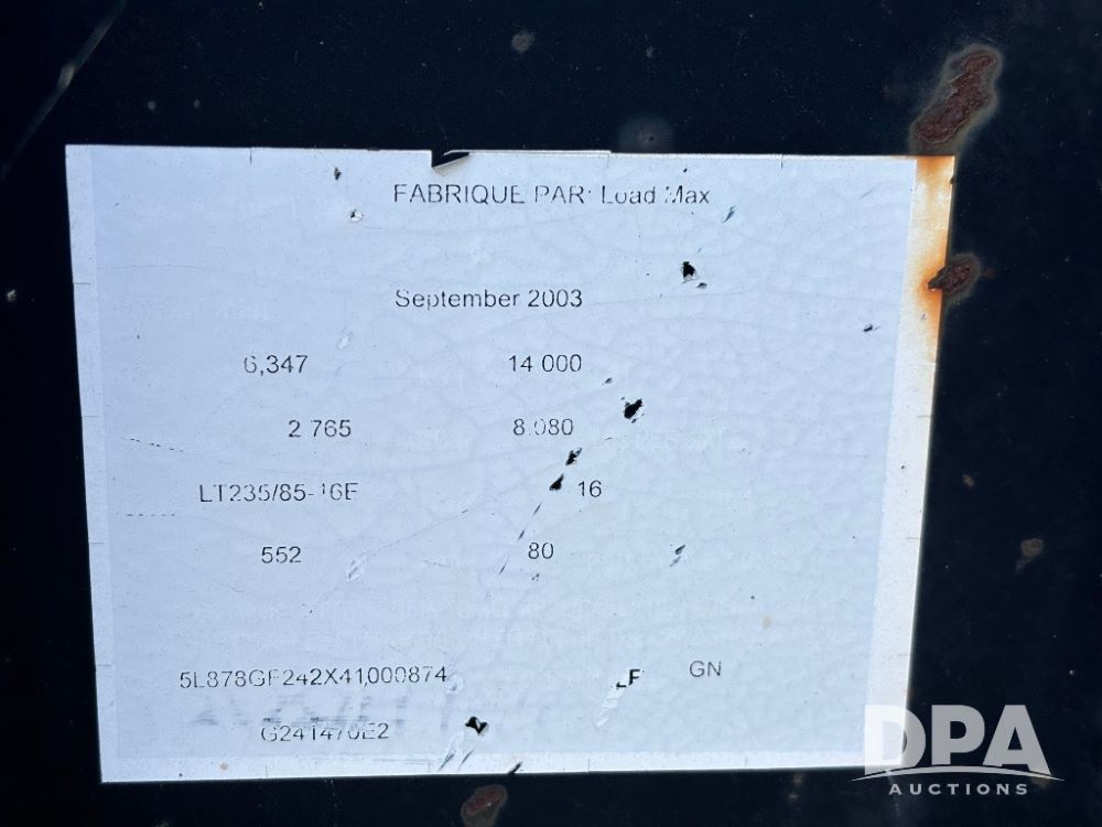 2004 Load Max Gooseneck Trailer (GP11715, Unit 126169), 2004 Load Max gooseneck trailer, tandem axle, spring suspension, steel deck, Hopkins Break-Away System, ST235/85R16 tires.