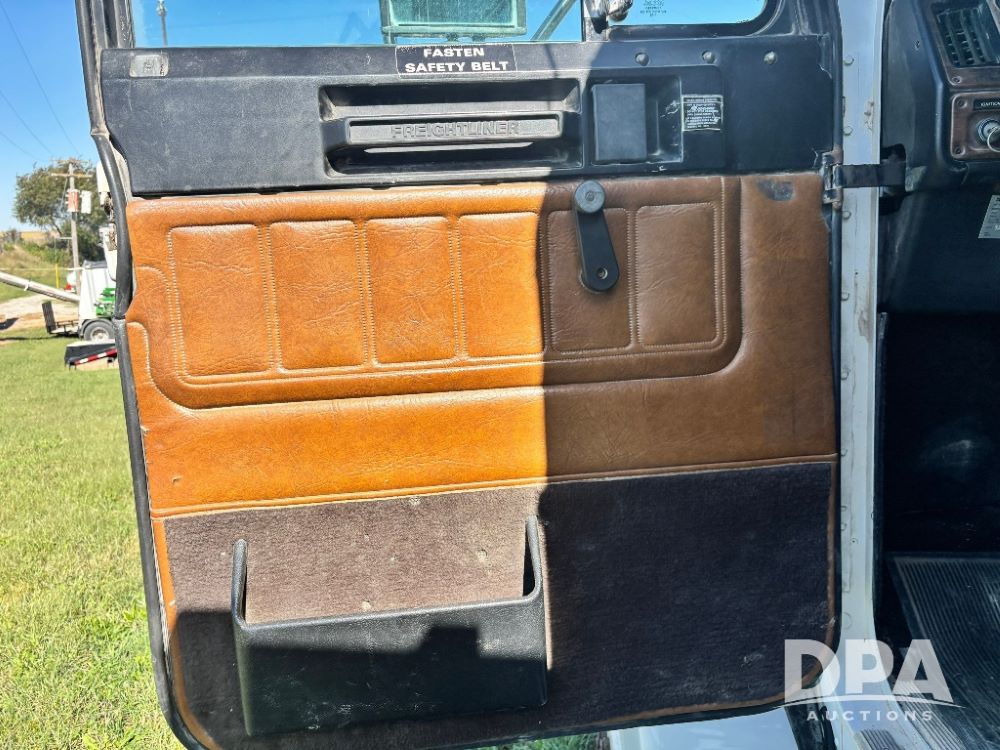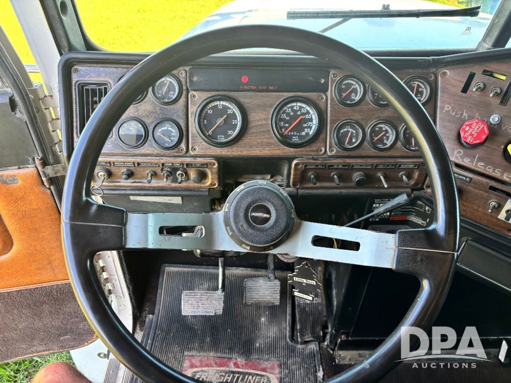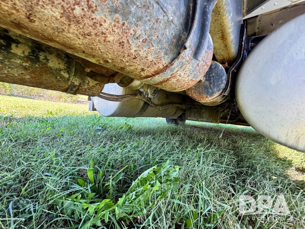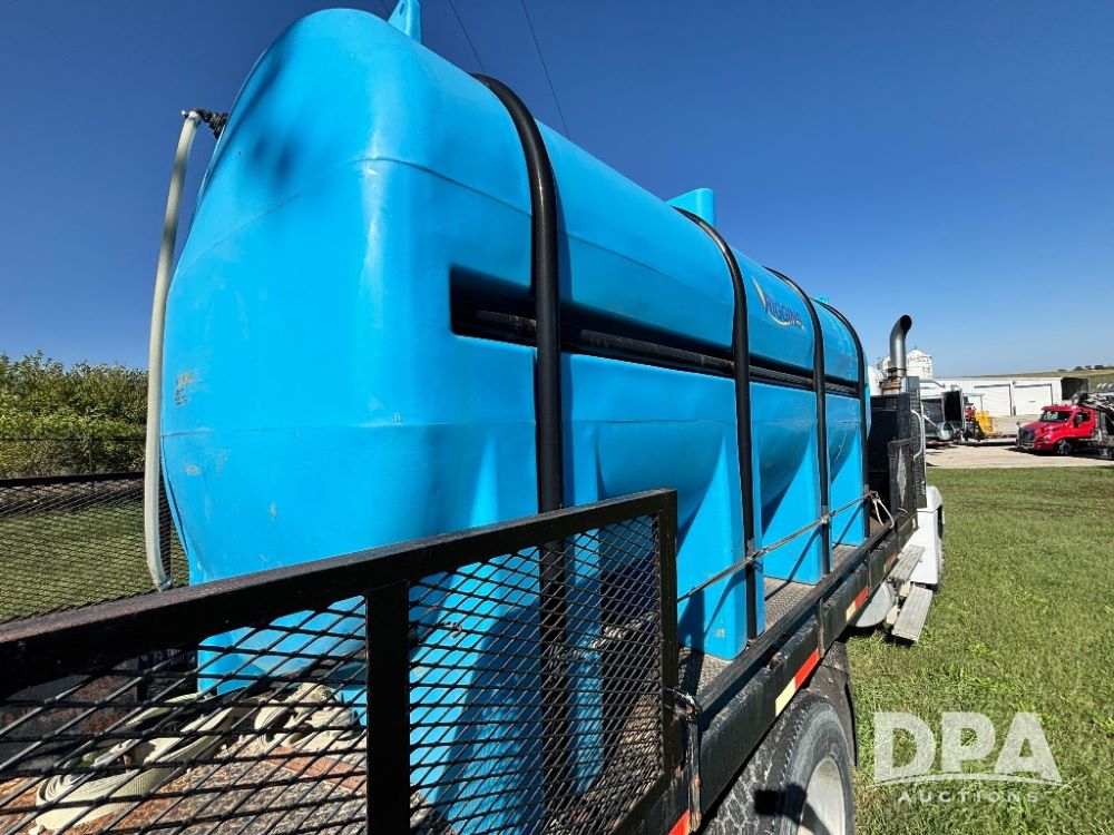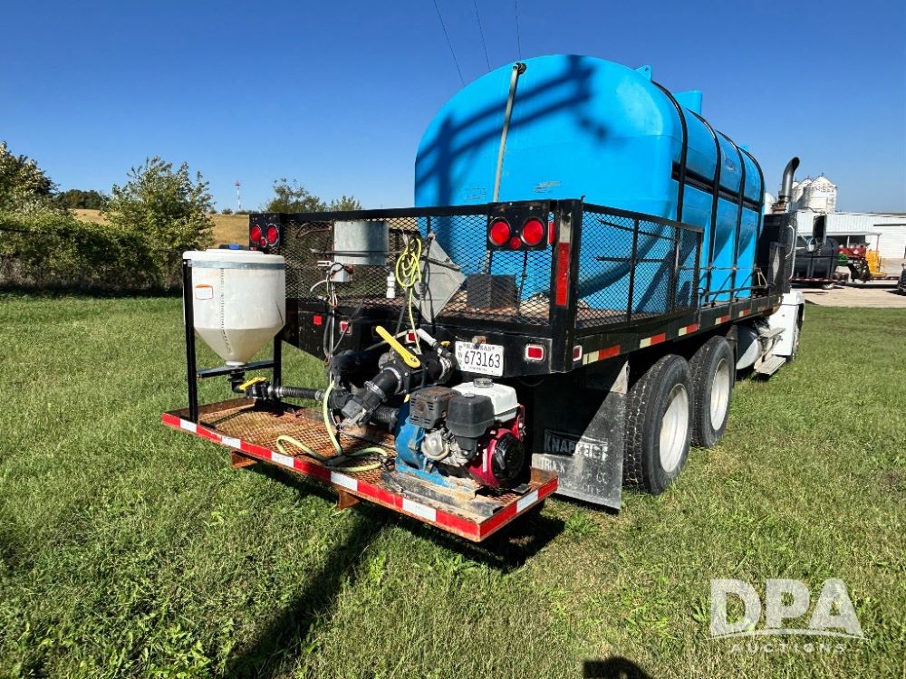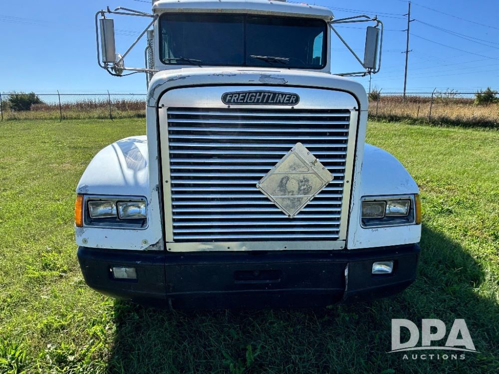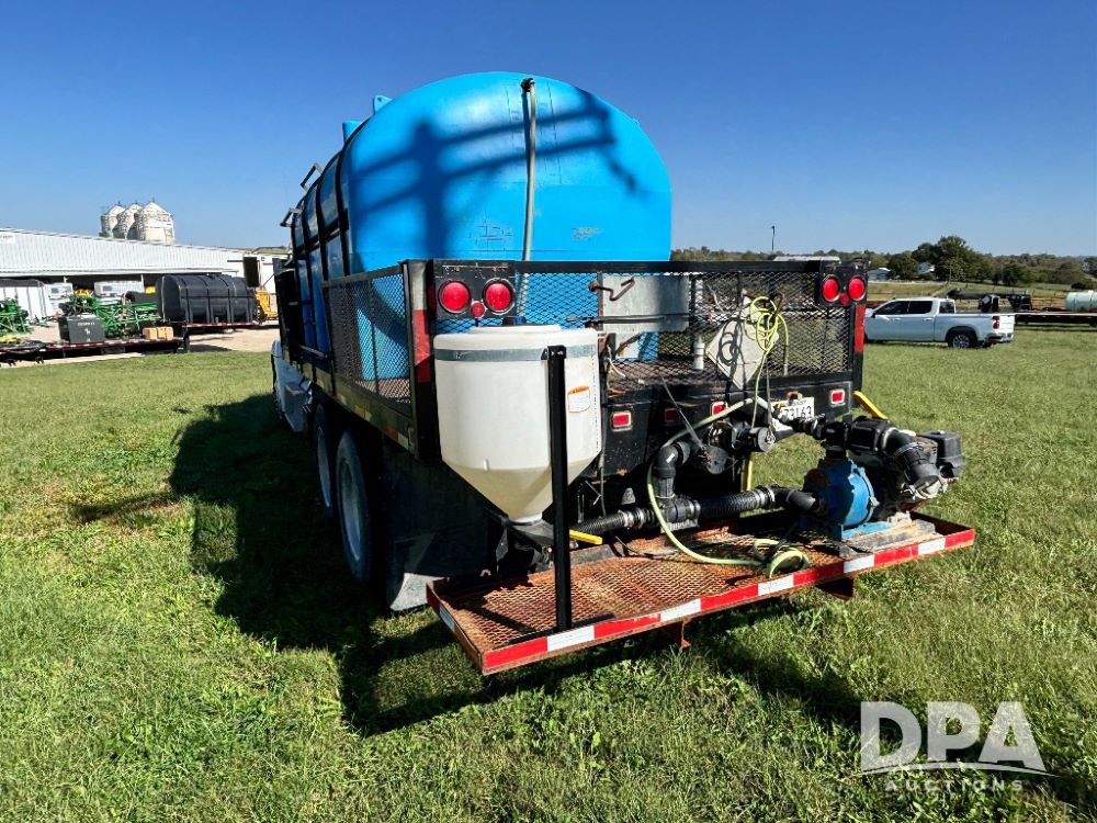 1993 Freightliner FLD120 Liquid Nurse Truck (GP11721, Unit 126178), Cat 3406 diesel engine, Eaton Fuller 9 speed transmission, heat, Am/Fm radio, cruise control, tandem axle, air ride suspension, Ace Roto-Mold 3,200 gallon poly flat bottom liquid tank, poly cone bottom inductor tank/stand, Honda electric start gas motor, pump, 285/75R24.5 front tires, 275/80R24.5 rear tires, GVWR 52,000 pounds, shows 334,050 miles.
