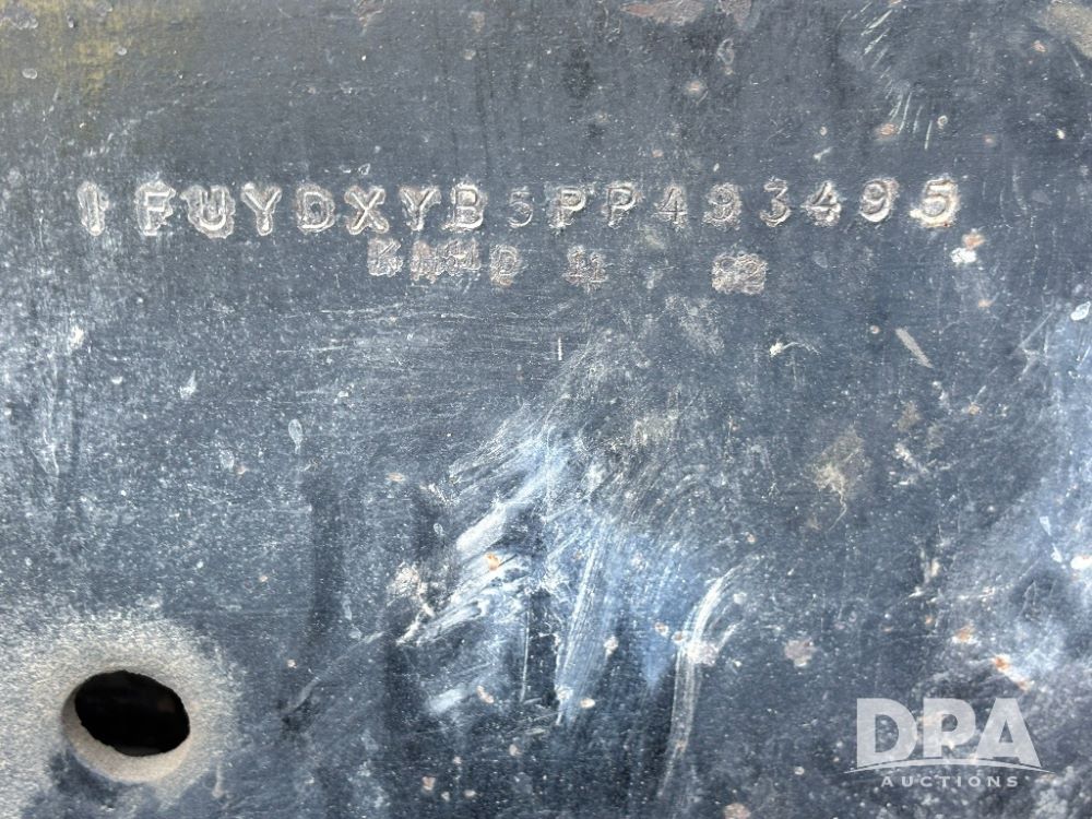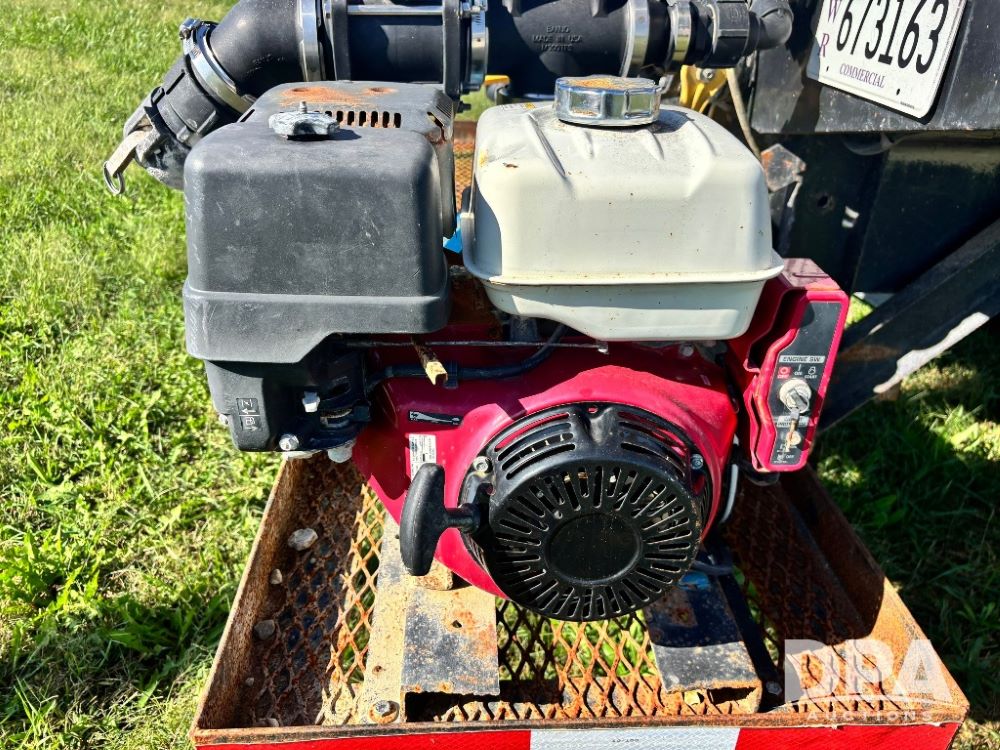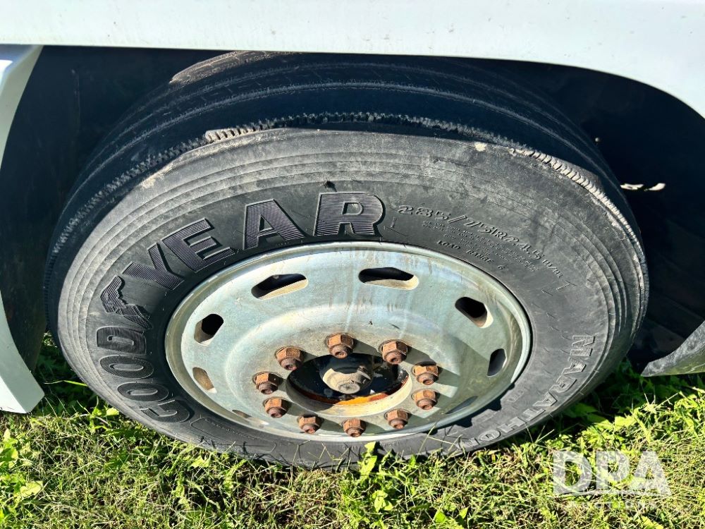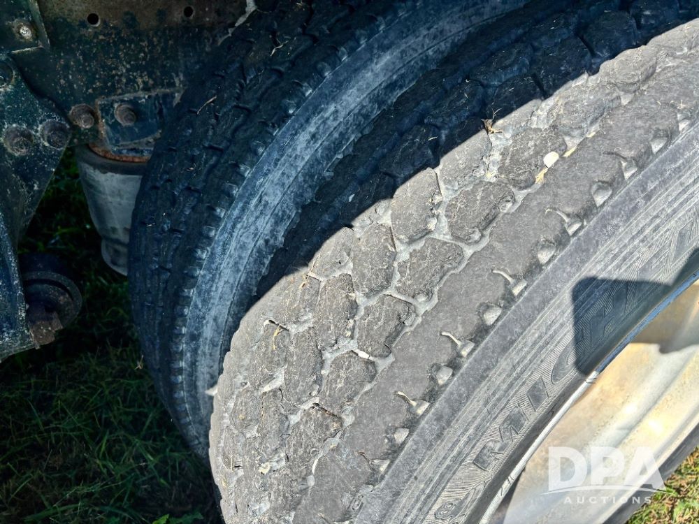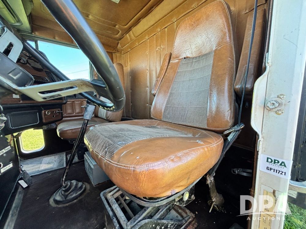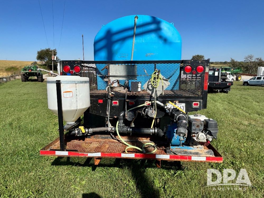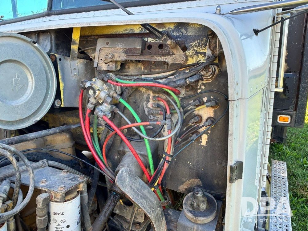 1993 Freightliner FLD120 Liquid Nurse Truck (GP11721, Unit 126178), Cat 3406 diesel engine, Eaton Fuller 9 speed transmission, heat, Am/Fm radio, cruise control, tandem axle, air ride suspension, Ace Roto-Mold 3,200 gallon poly flat bottom liquid tank, poly cone bottom inductor tank/stand, Honda electric start gas motor, pump, 285/75R24.5 front tires, 275/80R24.5 rear tires, GVWR 52,000 pounds, shows 334,050 miles.