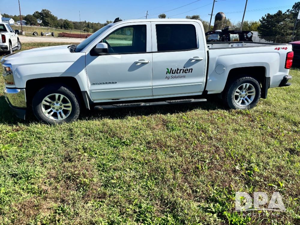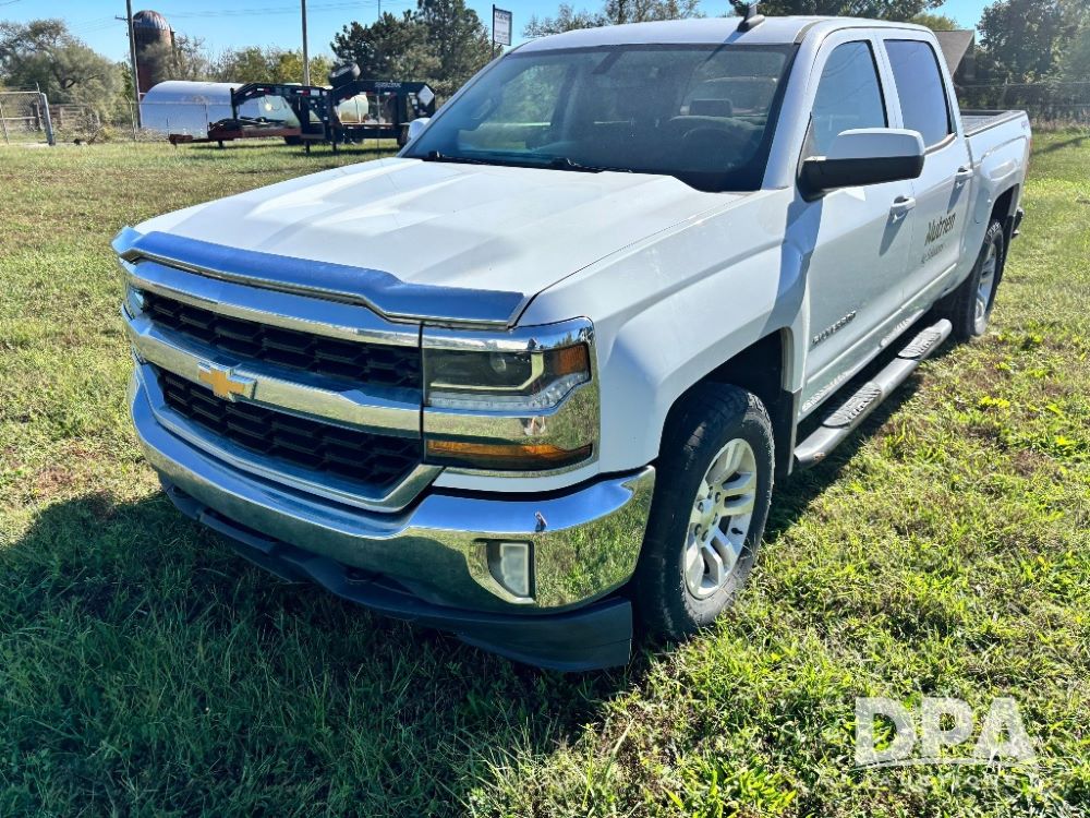 2018 Chevrolet Silverado LT 4x4 Pickup (GP11717, Unit 126159), gas engine, automatic transmission, heat, air conditioning, Am/Fm radio, cloth interior, power windows, locks and mirrors, dual climate control, cruise control, touch screen, running boards, tow package, LT275/65R18 tires, shows 223,852 miles.