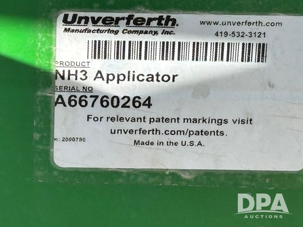 2021 Unverferth Renegade 3500 Tool Bar (GP11484, Unit 123958), 2021 Unverferth Renegade 3500 anhydrous pull type tool bar, 19 knife, coulters, double disc sealers, 100 gallon poly liquid tank, hydraulic, 295/75R22.5 tires, Raven AccuFlow Vortex.