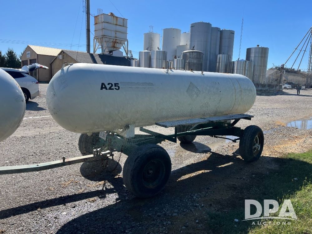 NH3 Nurse Tank (JN3186, Unit 27539), 1000 gallon NH3 nurse tank, center fill, no valves, no data plate, auto steer running gear, 11L-15 flotation tires.