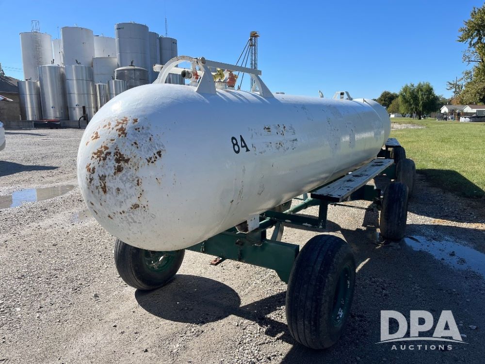 NH3 Nurse Tank (JN3187, Unit 27525), 1000 gallon NH3 nurse tank, rear fill, data plate, auto steer running gear, 11L-15 flotation tires.