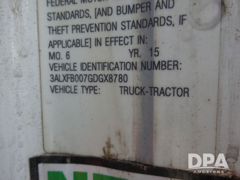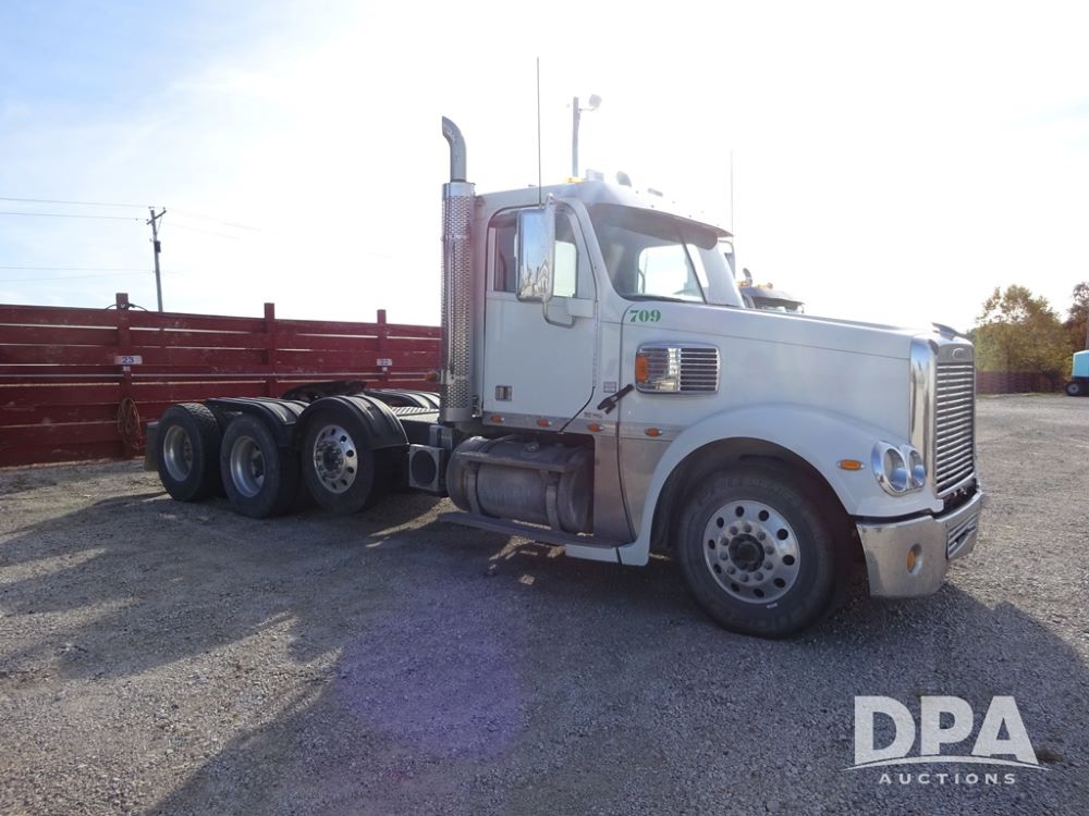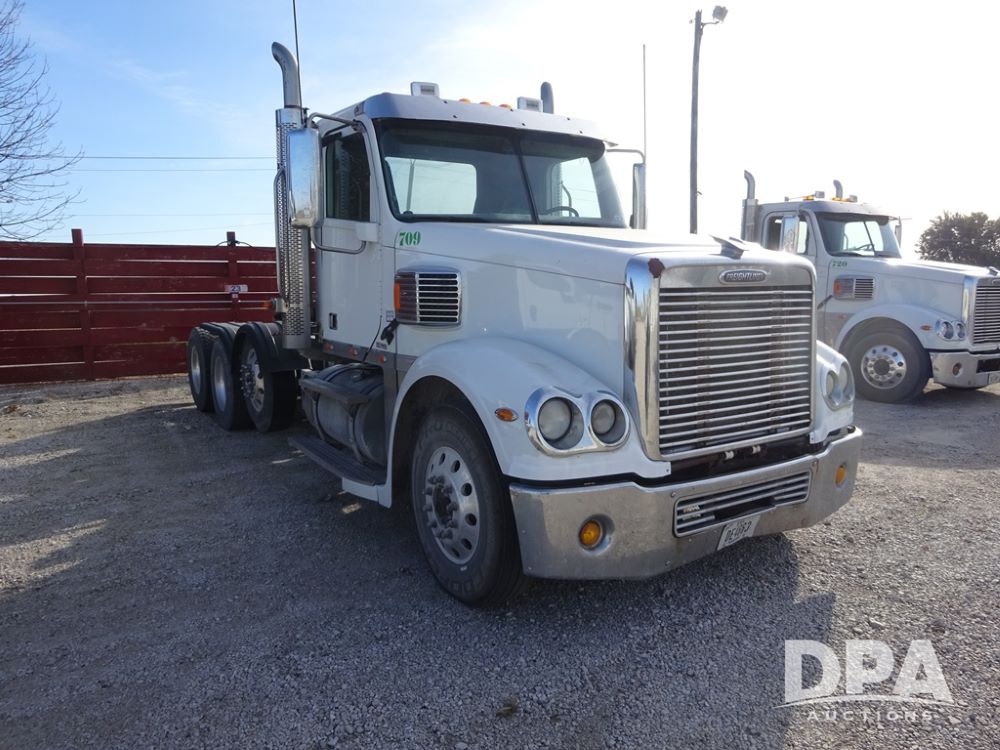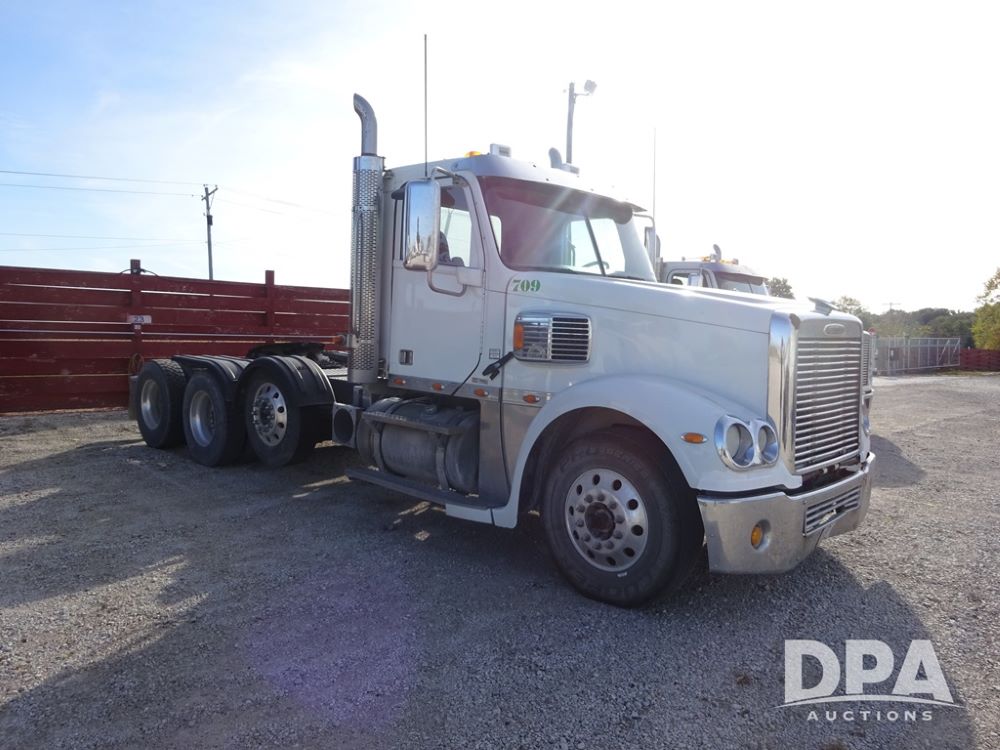 2016 Freightliner Coronado Day Cab Glider Truck (PZ13984, Unit 709), Detroit Series 60 diesel engine, Eaton Fuller 13 speed transmission, air conditioning, heat, Am/Fm CD radio, cruise control, engine brake, power windows & locks, 5th wheel, wet kit, tandem axle, full screw, air ride suspension, quarter fenders, pusher axle, fenders, 11R22.5 tires, aluminum rims, 295/75R22.5 pusher tires, aluminum rims, shows 662,145 miles.