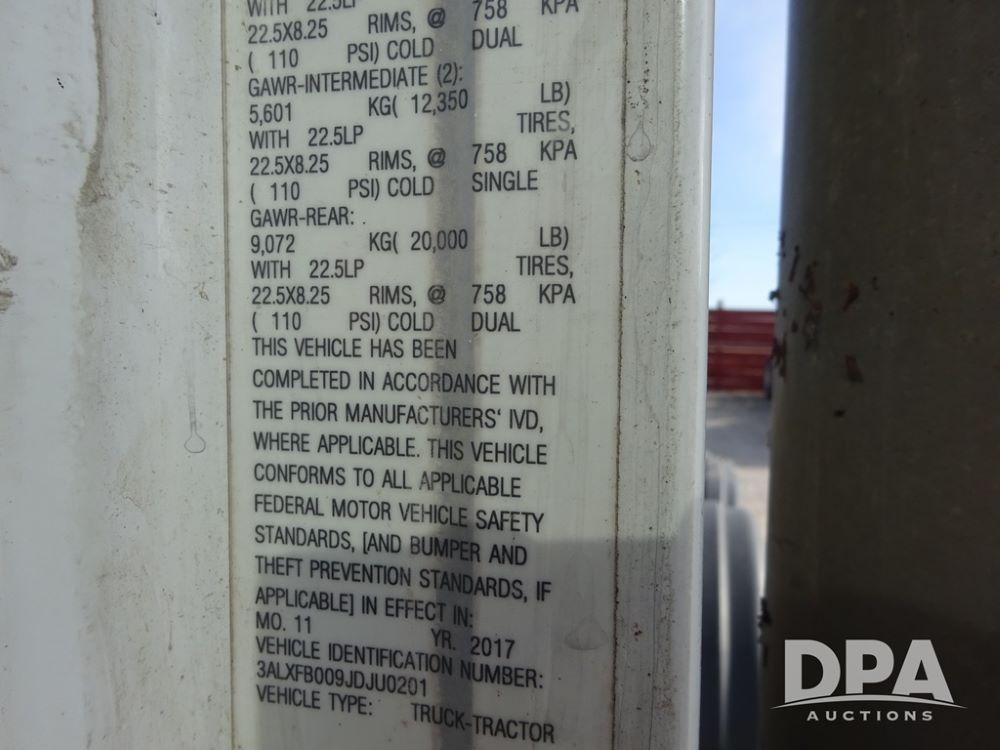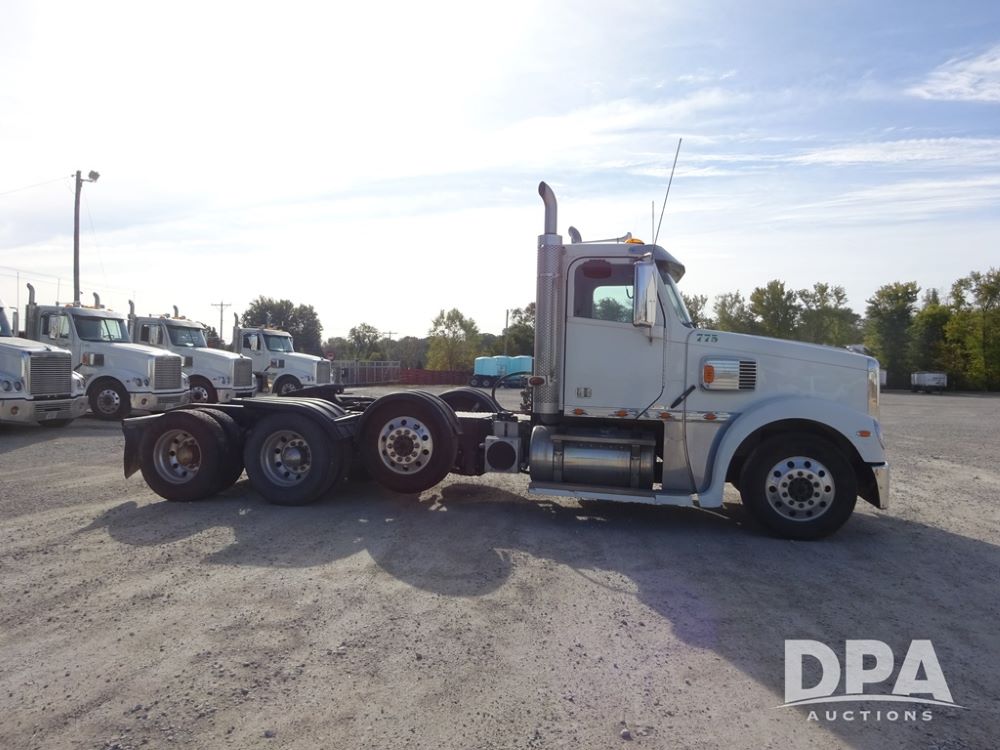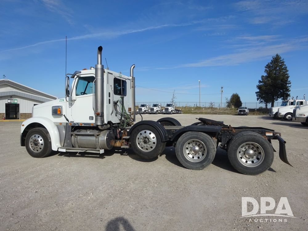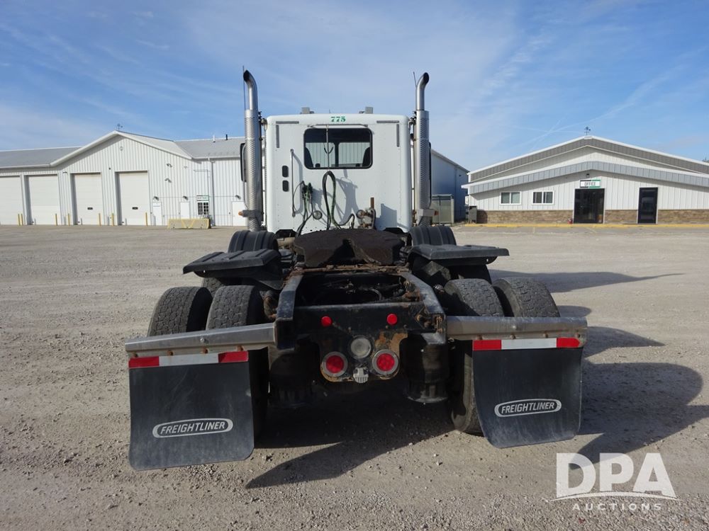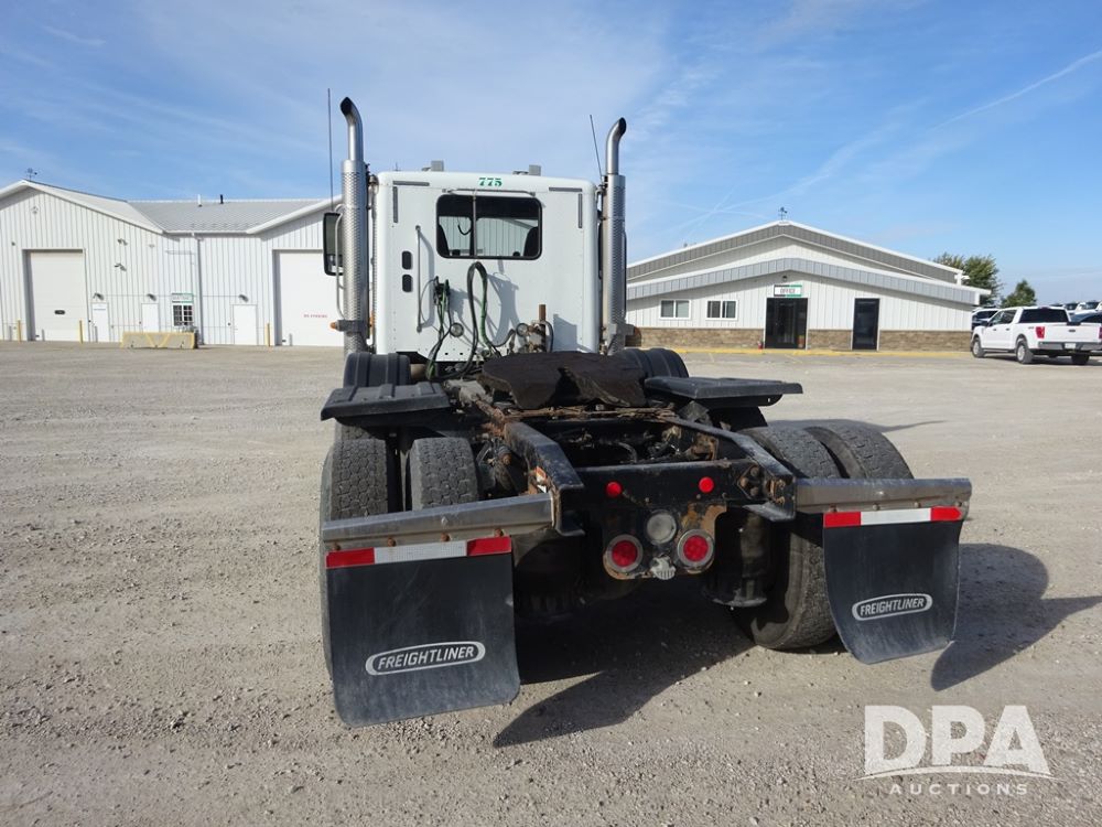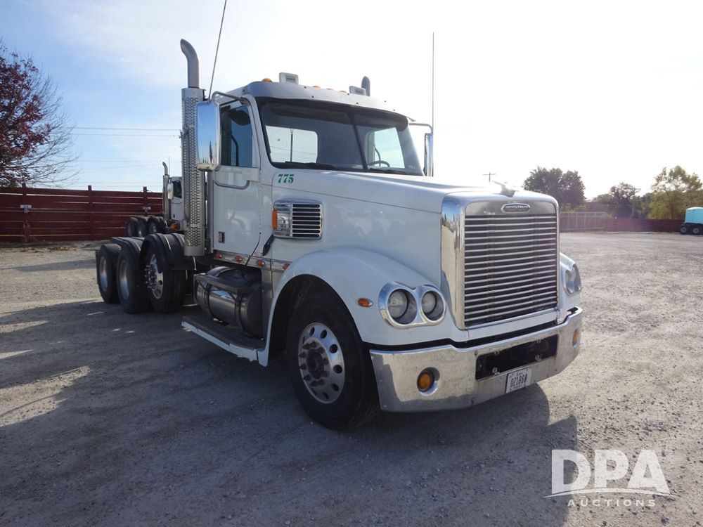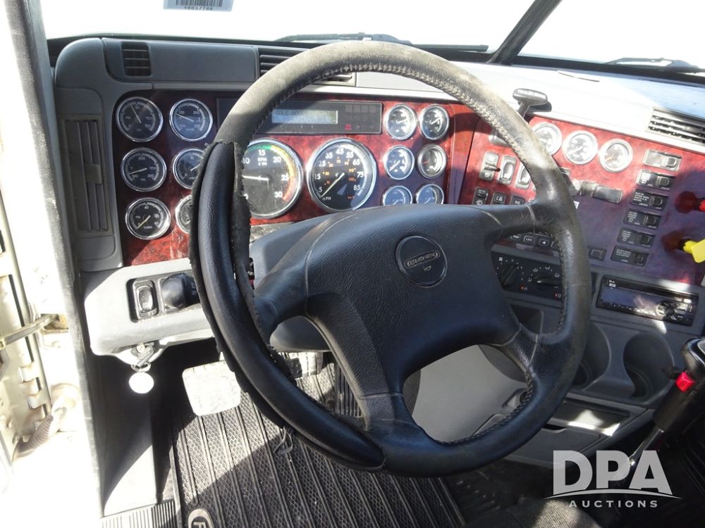 2018 Freightliner Coronado Day Cab Glider Truck (PZ13985, Unit 775), Detroit Series 60 diesel engine, Eaton Fuller 13 speed transmission, air conditioning, heat, Am/Fm CD radio, cruise control, engine brake, power windows & locks, 5th wheel, wet kit, tandem axle, full screw, air ride suspension, quarter fenders, pusher axle, fenders, 295/75R22.5 tires, aluminum rims, 295/75R22.5 pusher tires, aluminum rims, shows 524,728 miles.