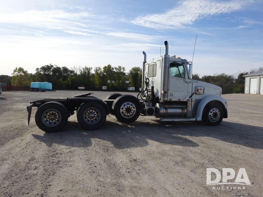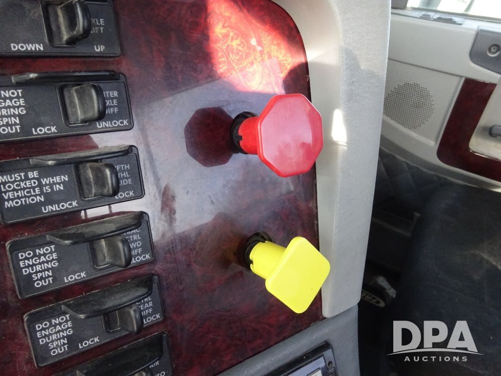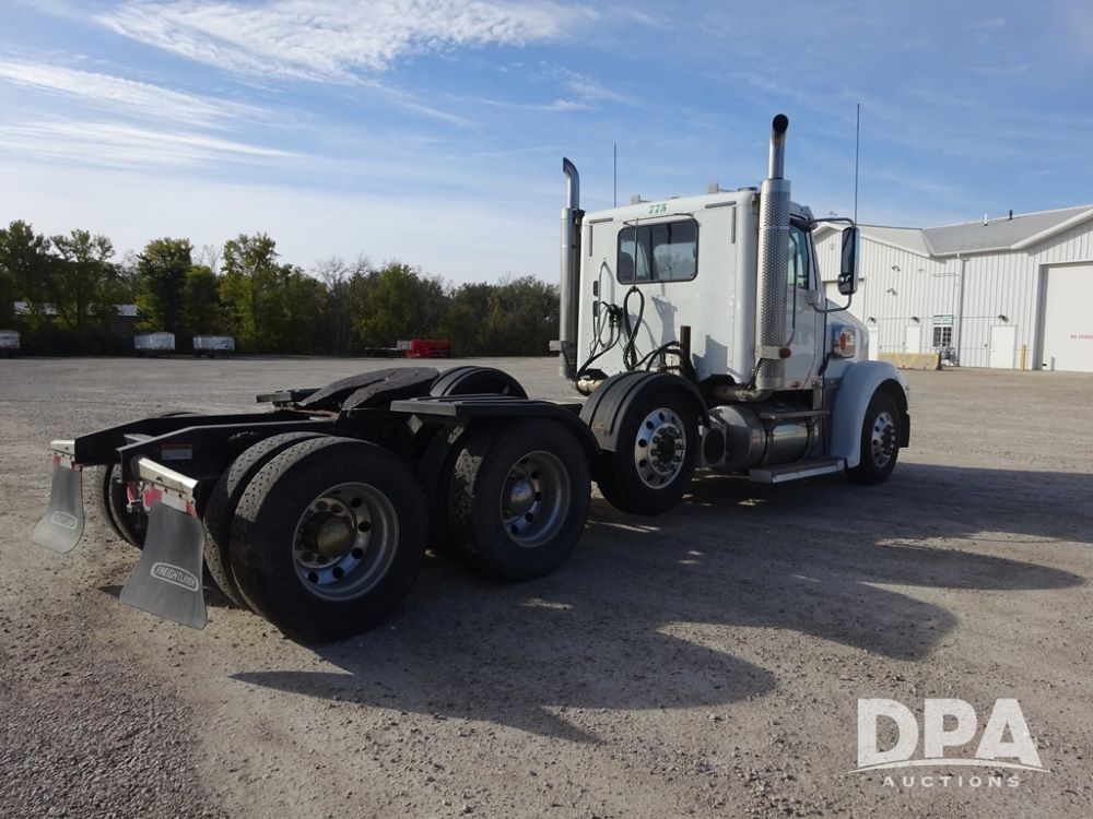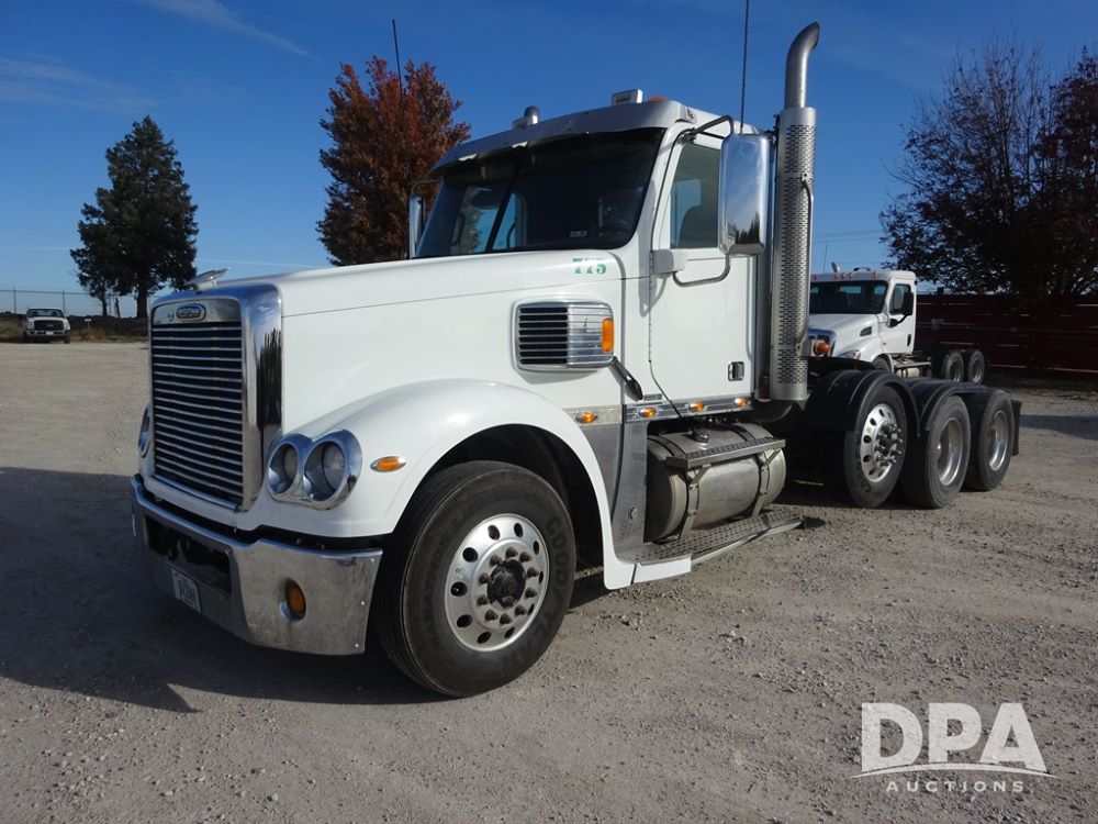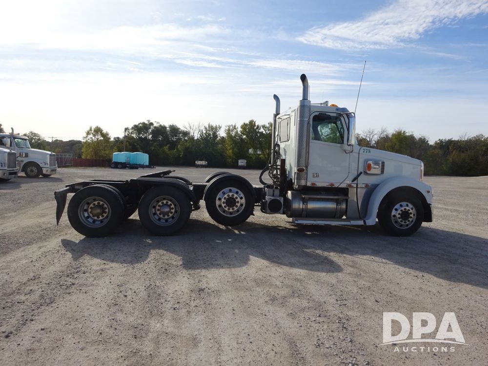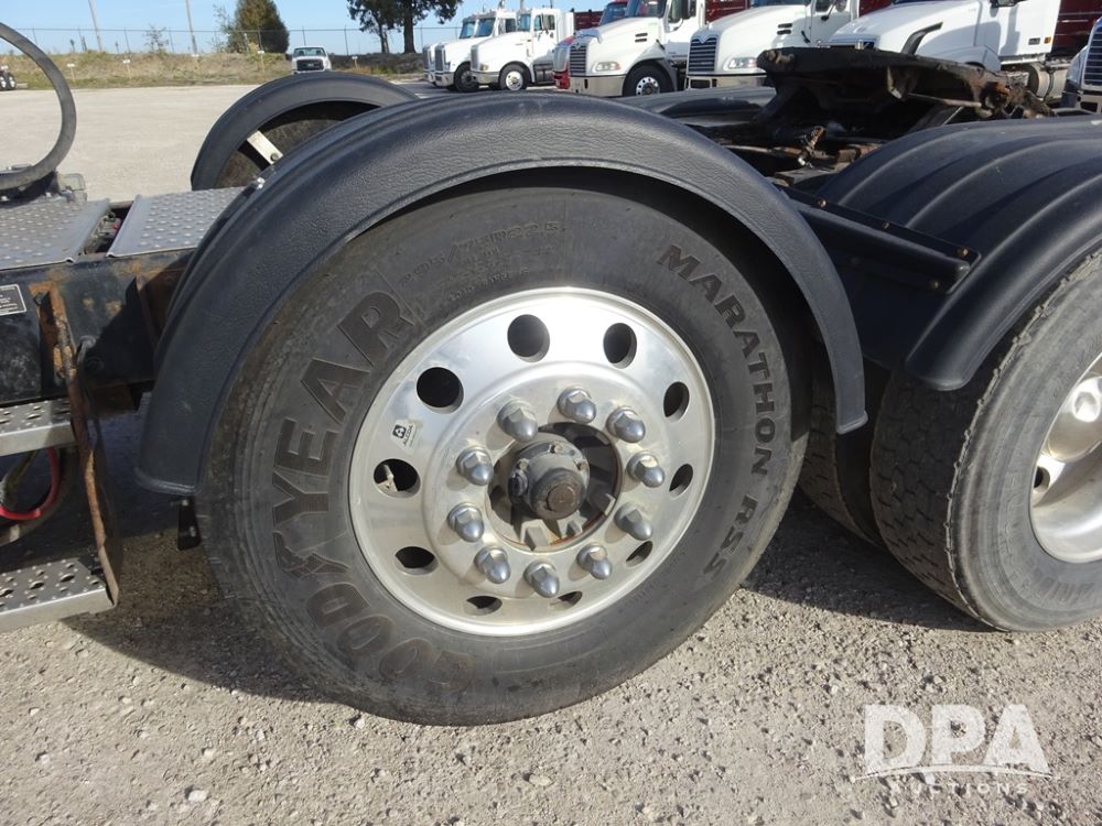 2018 Freightliner Coronado Day Cab Glider Truck (PZ13985, Unit 775), Detroit Series 60 diesel engine, Eaton Fuller 13 speed transmission, air conditioning, heat, Am/Fm CD radio, cruise control, engine brake, power windows & locks, 5th wheel, wet kit, tandem axle, full screw, air ride suspension, quarter fenders, pusher axle, fenders, 295/75R22.5 tires, aluminum rims, 295/75R22.5 pusher tires, aluminum rims, shows 524,728 miles.