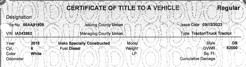 Notes: This Unit is being sold as 2018 Freightliner Cascadia Day Cab Truck, please note that it is titled as 2018 Specially Constructed.
