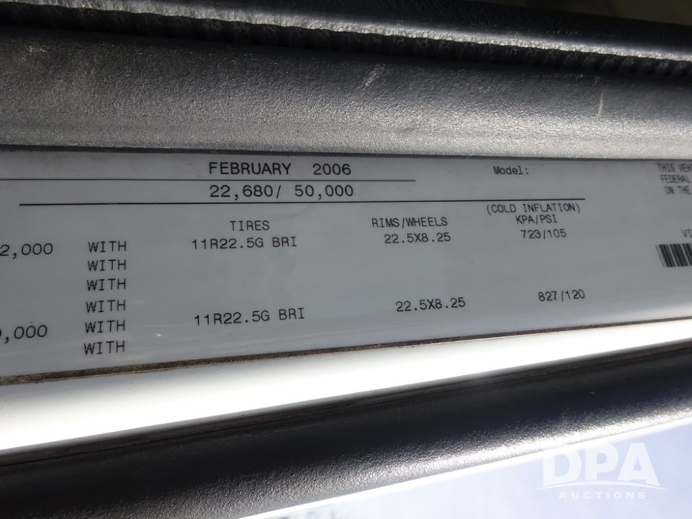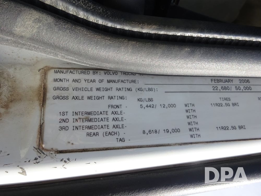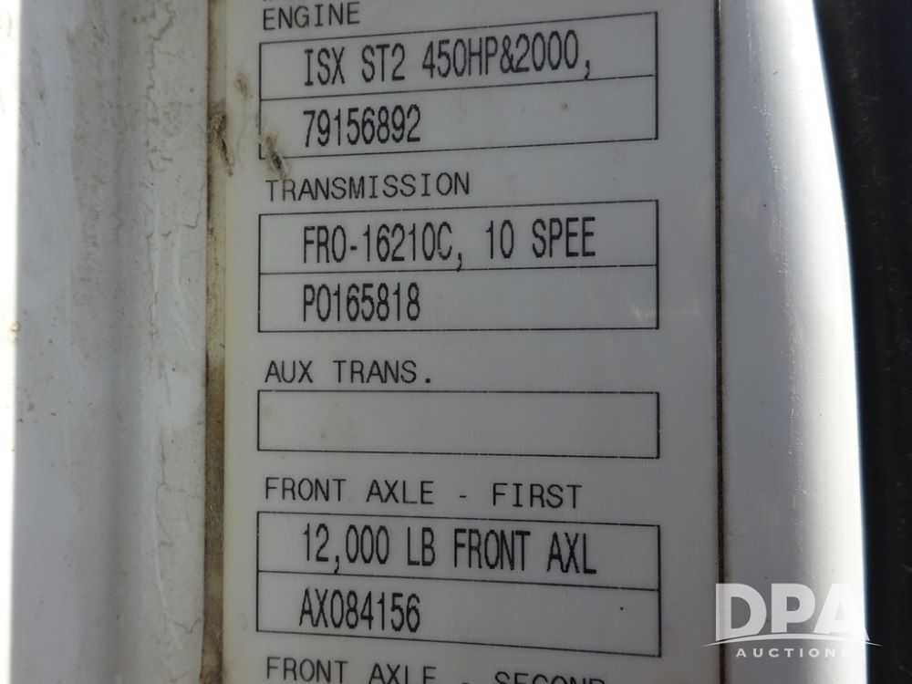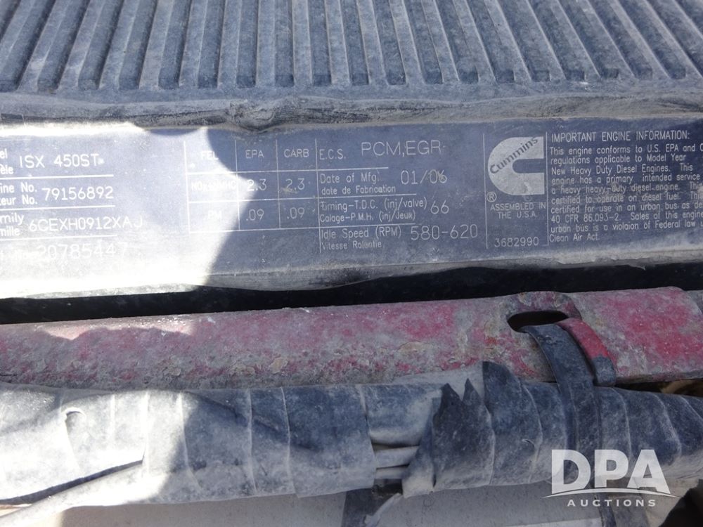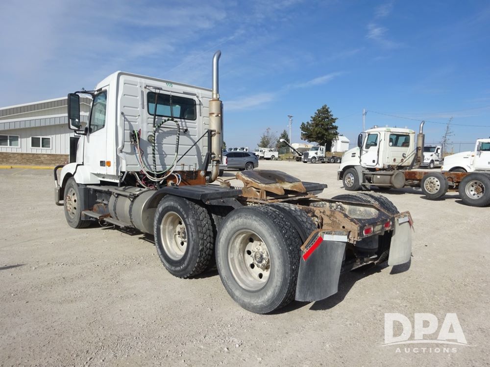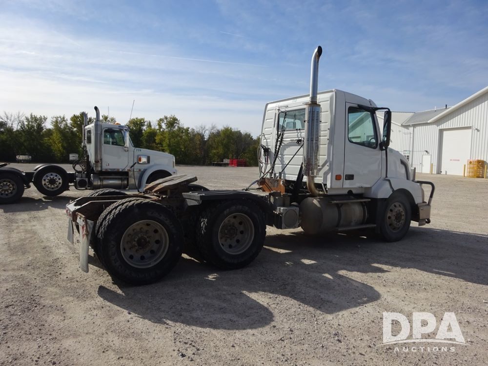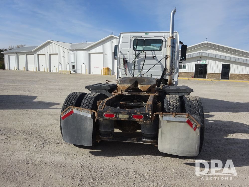 2007 Volvo VNL Day Cab Truck (PZ13987, Unit 110), Cummins ISX 450ST diesel engine, Eaton Fuller 10 speed transmission, air conditioning, heat, Am/Fm CD radio, cruise control, engine brake, power windows & locks, Grill Guard, 5th wheel, wet kit, tandem axle, full screw, air ride suspension, quarter fenders, 11R22.5 tires, aluminum rims, shows 565,542 miles.