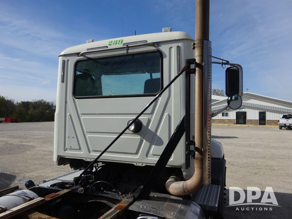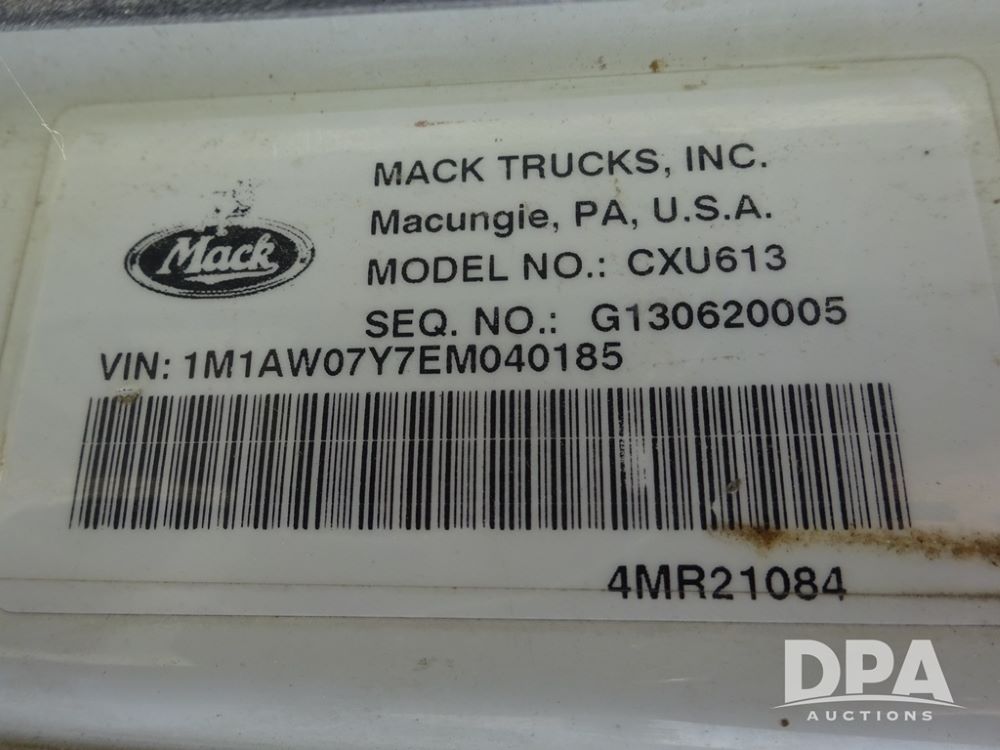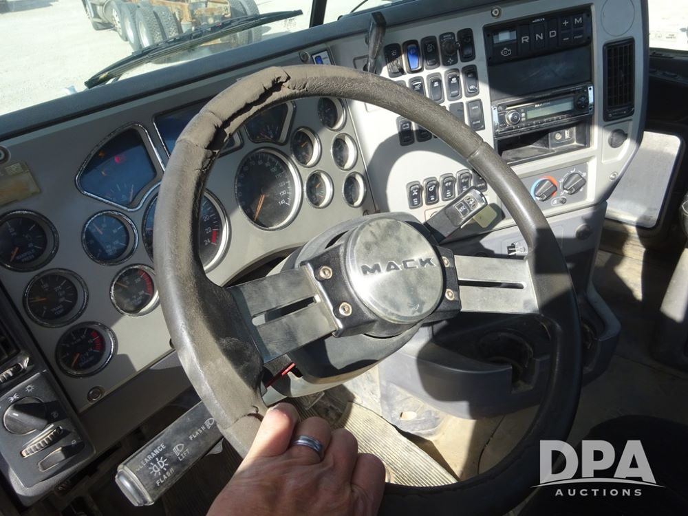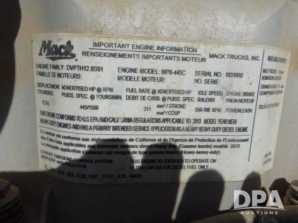 2014 Mack Pinnacle Truck (PZ13988, Unit 239), Mack MP8-445C diesel engine, mDrive transmission, air conditioning, heat, Am/Fm CD radio, cruise control, power windows & locks, tandem axle, full screw, air ride suspension, pusher axle, 295/75R22.5 tires, aluminum rims, shows 381,314 miles.