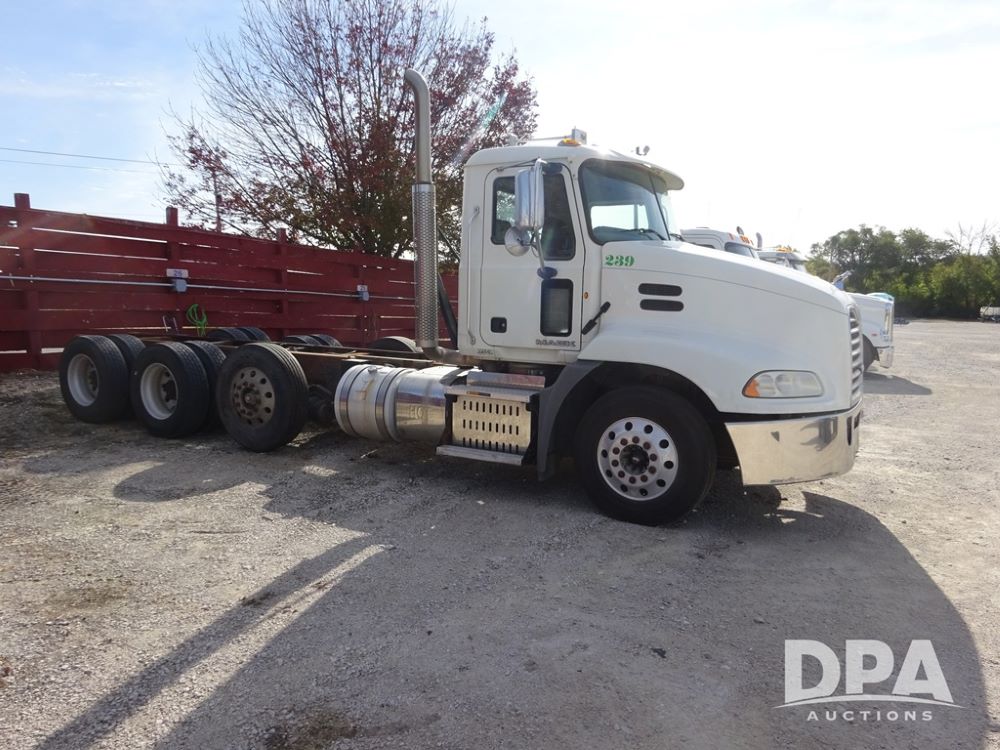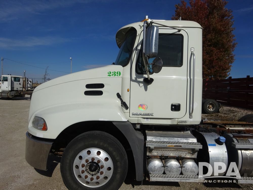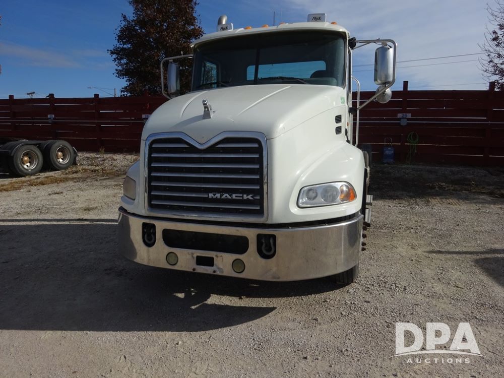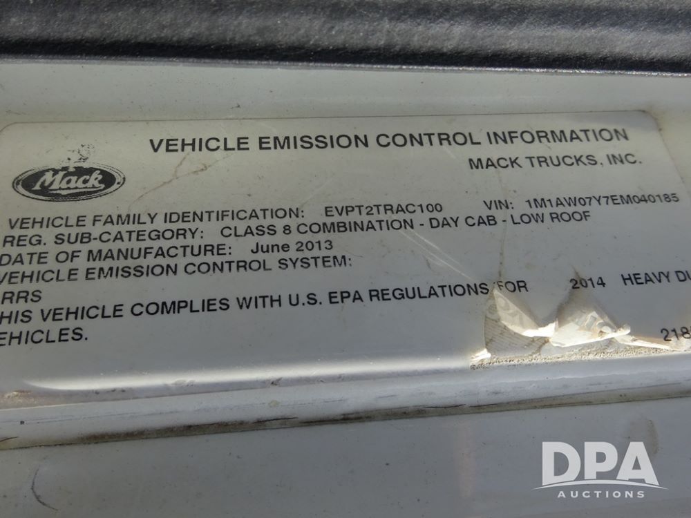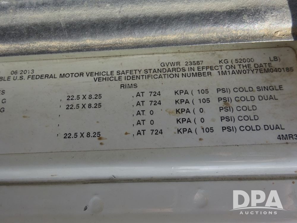 2014 Mack Pinnacle Truck (PZ13988, Unit 239), Mack MP8-445C diesel engine, mDrive transmission, air conditioning, heat, Am/Fm CD radio, cruise control, power windows & locks, tandem axle, full screw, air ride suspension, pusher axle, 295/75R22.5 tires, aluminum rims, shows 381,314 miles.