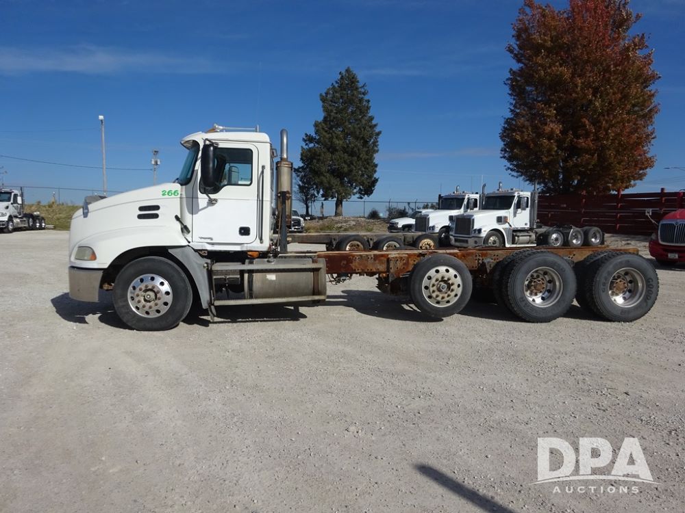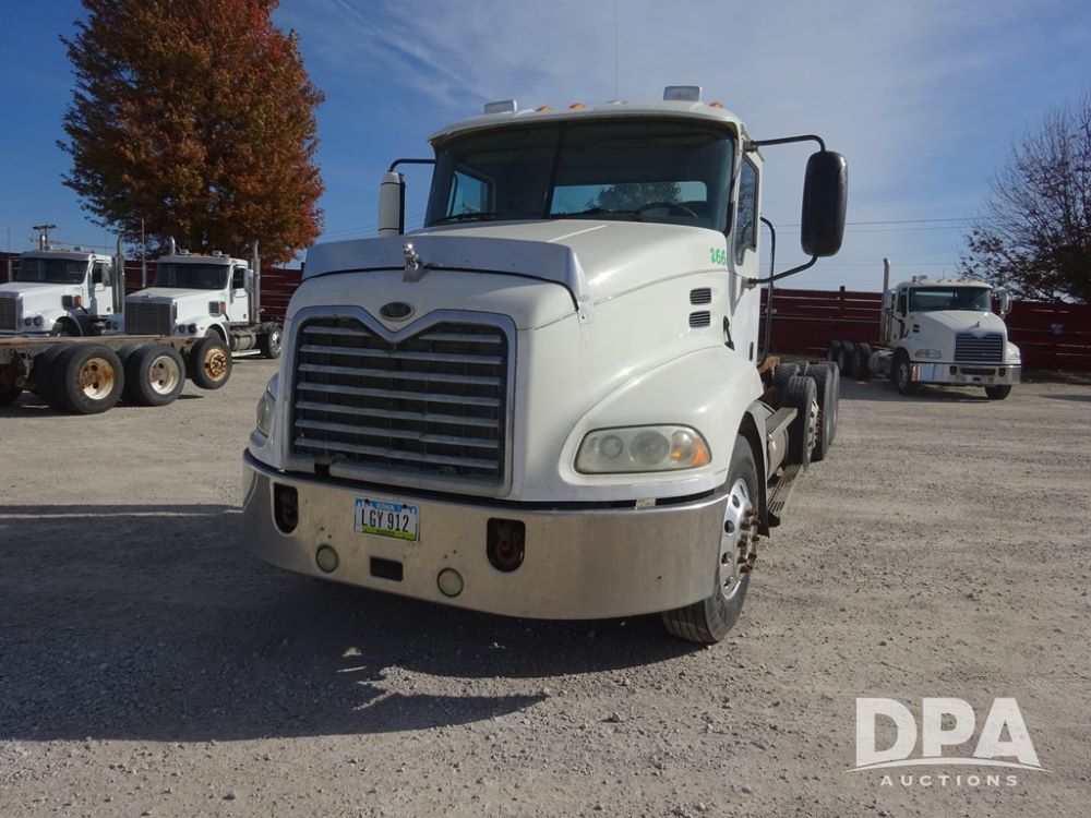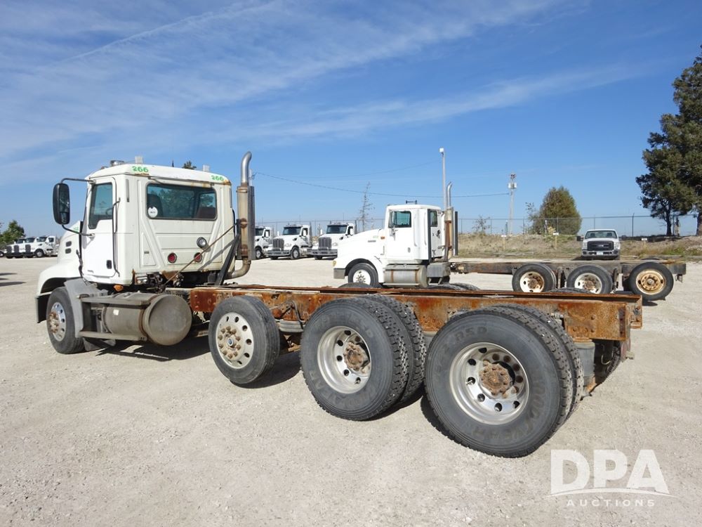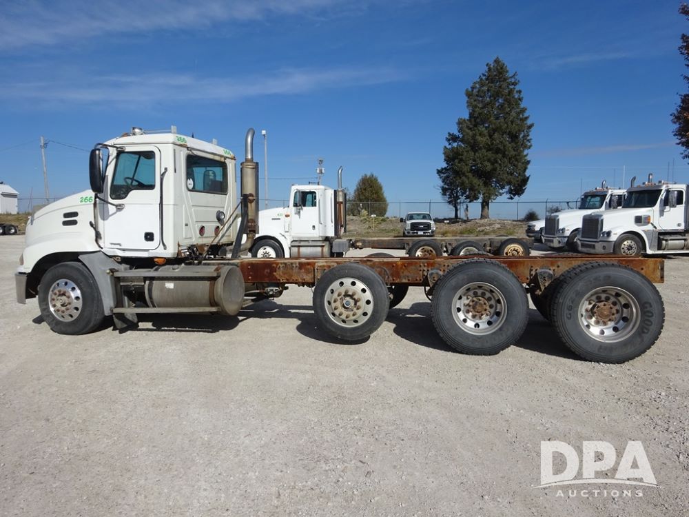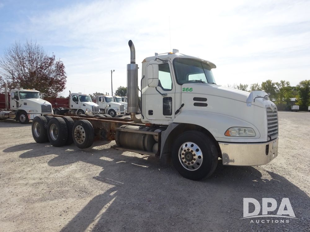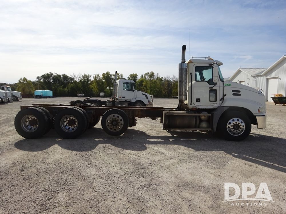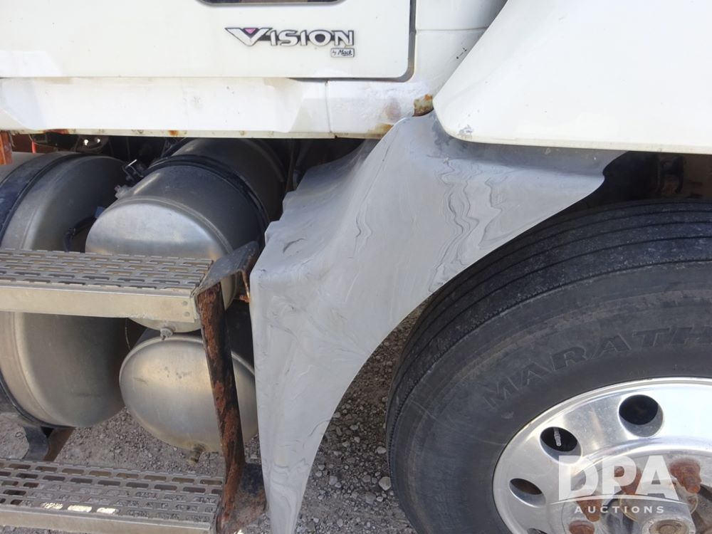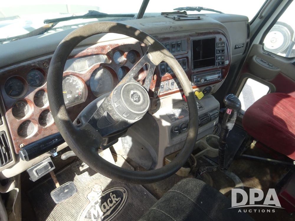 2005 Mack Vision Truck (PZ13989, Unit 266), Mack diesel engine, Eaton Fuller 13 speed transmission, air conditioning, heat, Am/Fm CD radio, cruise control, power windows & locks, tandem axle, full screw, pusher axle, 11R22.5 tires, aluminum rims, 255/70R22.5 pusher tires, aluminum rims, shows 701,240 miles.