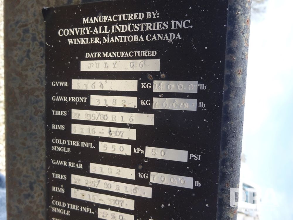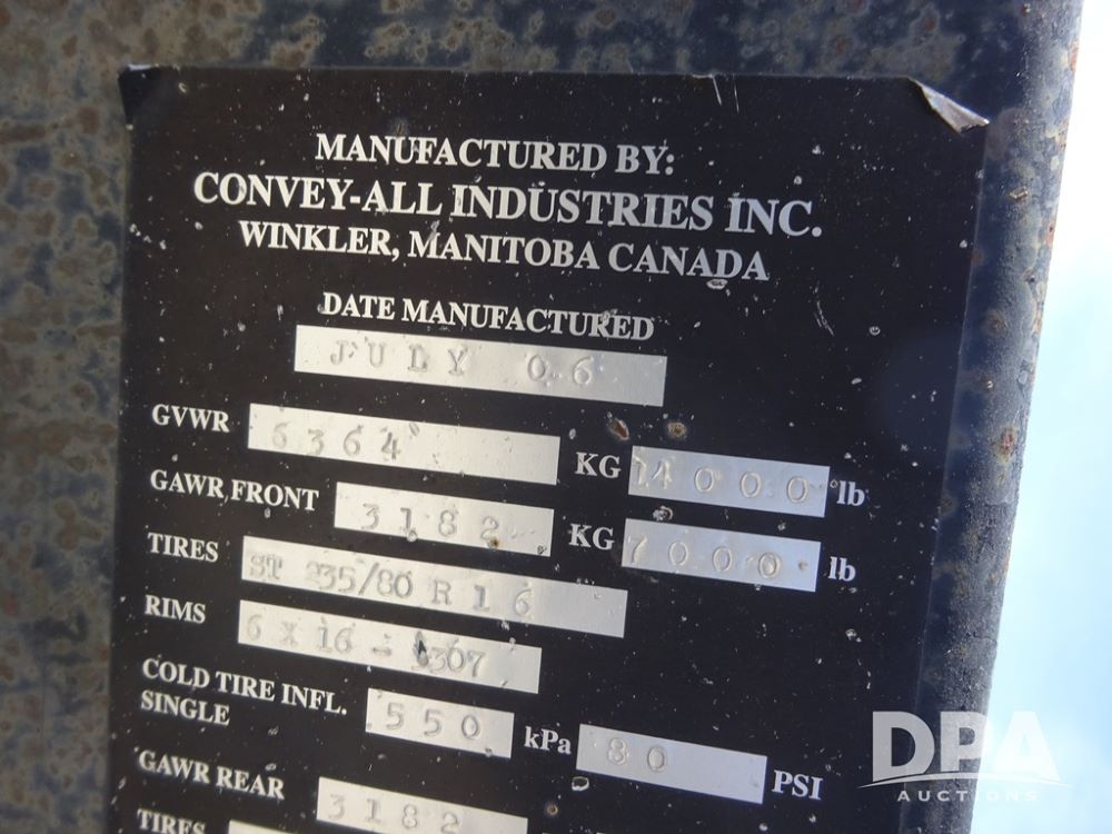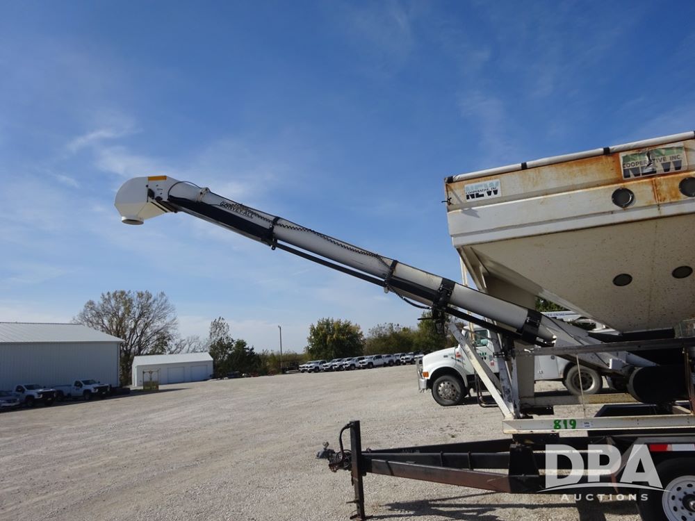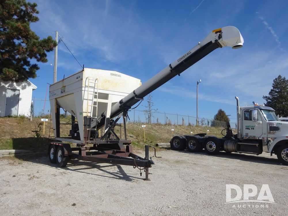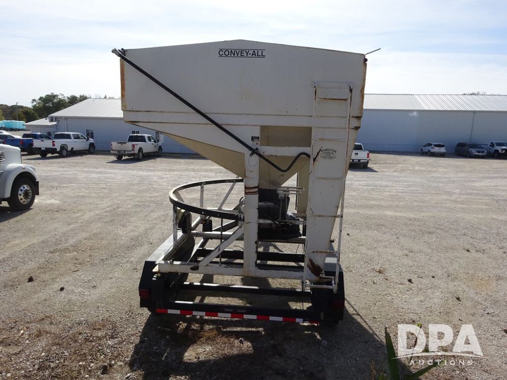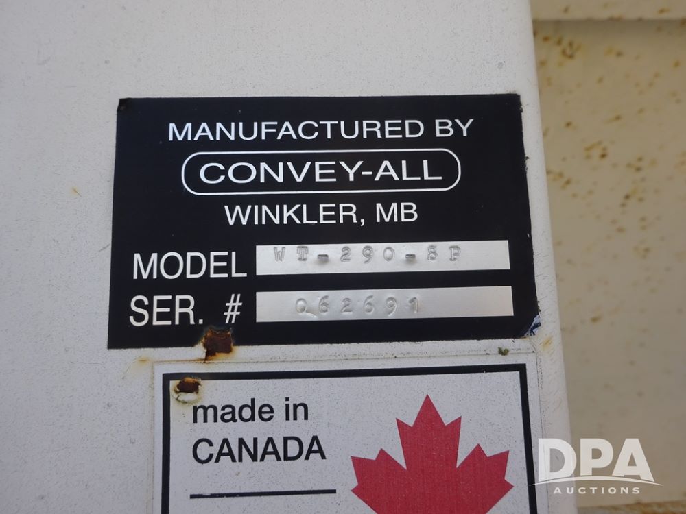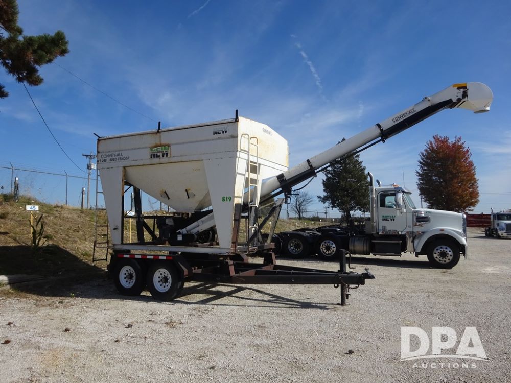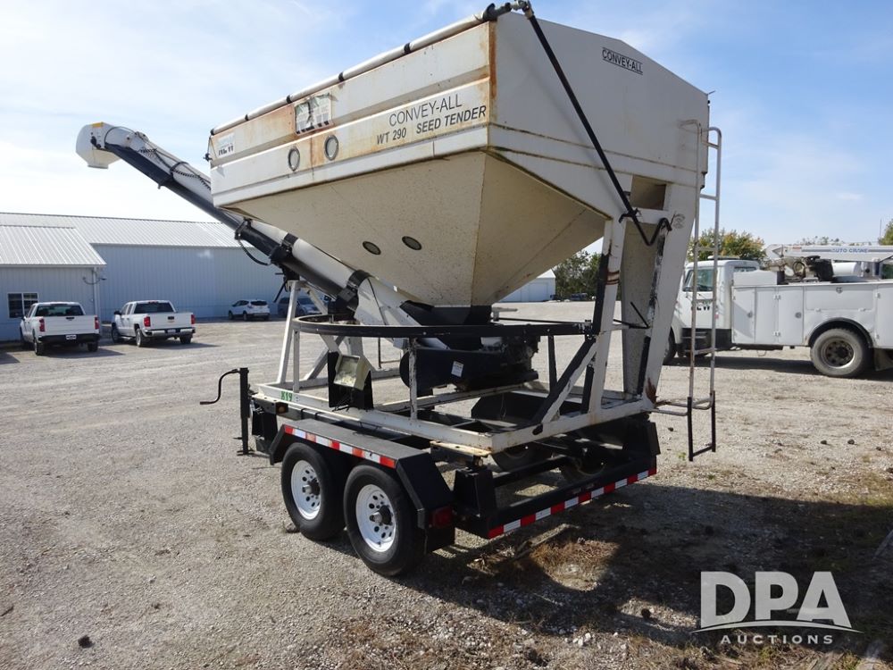 2006 Convey-All Seed Tender (PZ13997, Unit 819), 2006 Convey-All WT290 - SP seed tender (S/N 062691), front pivoting conveyor, 2 compartment, Avery Weigh-Tronix model 640XL scale, Honda GX390 13 hp electric start gas engine, 2006 Convey-All tandem axle trailer, bumper hitch, LT235/85R16 tires.