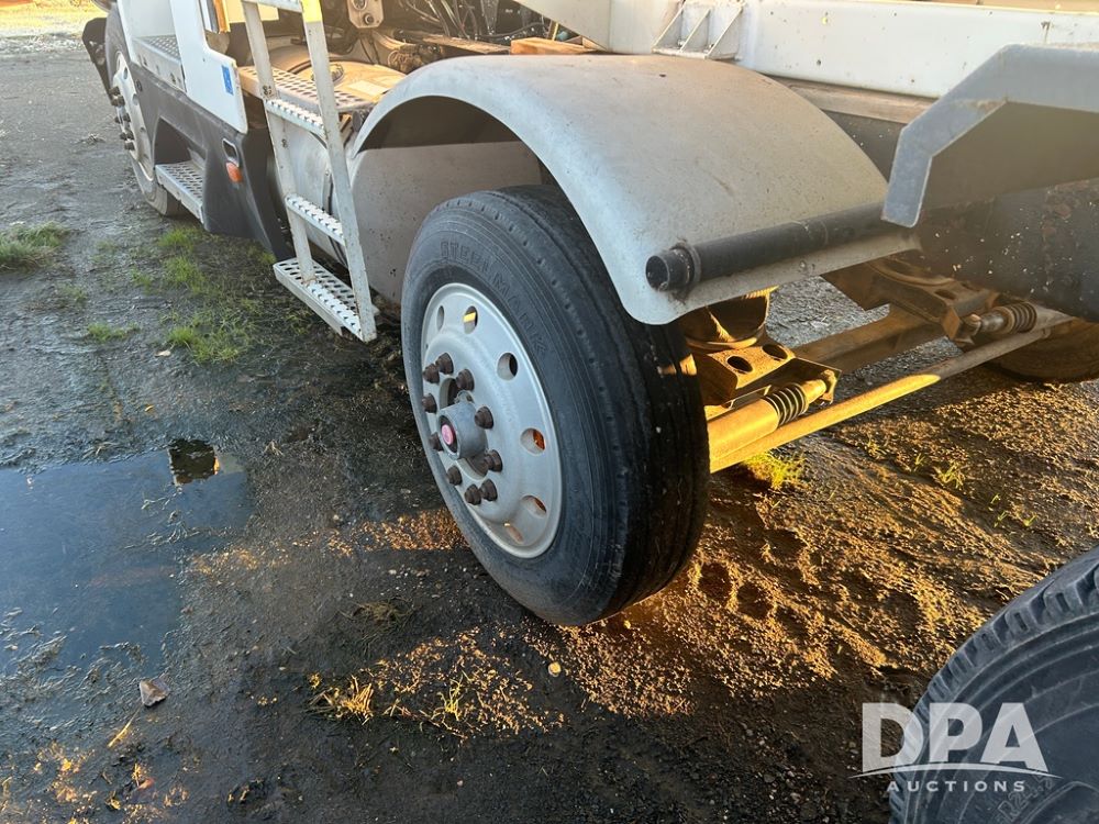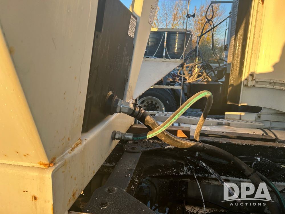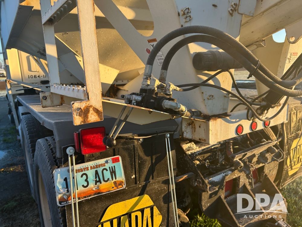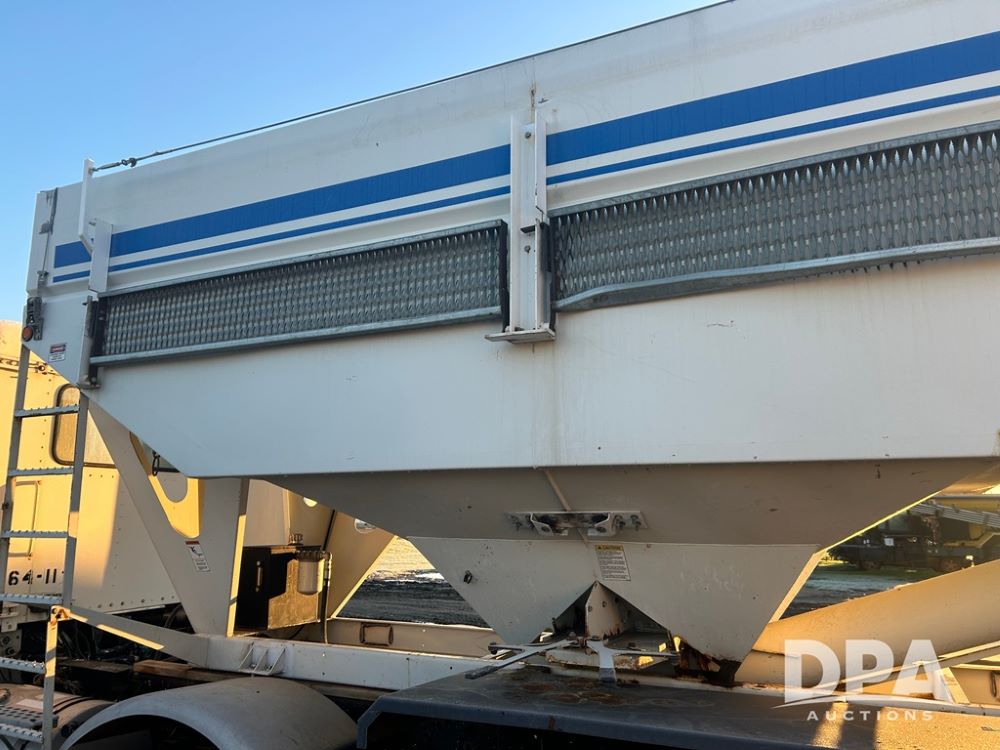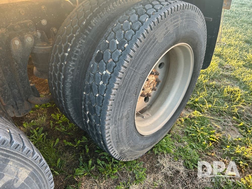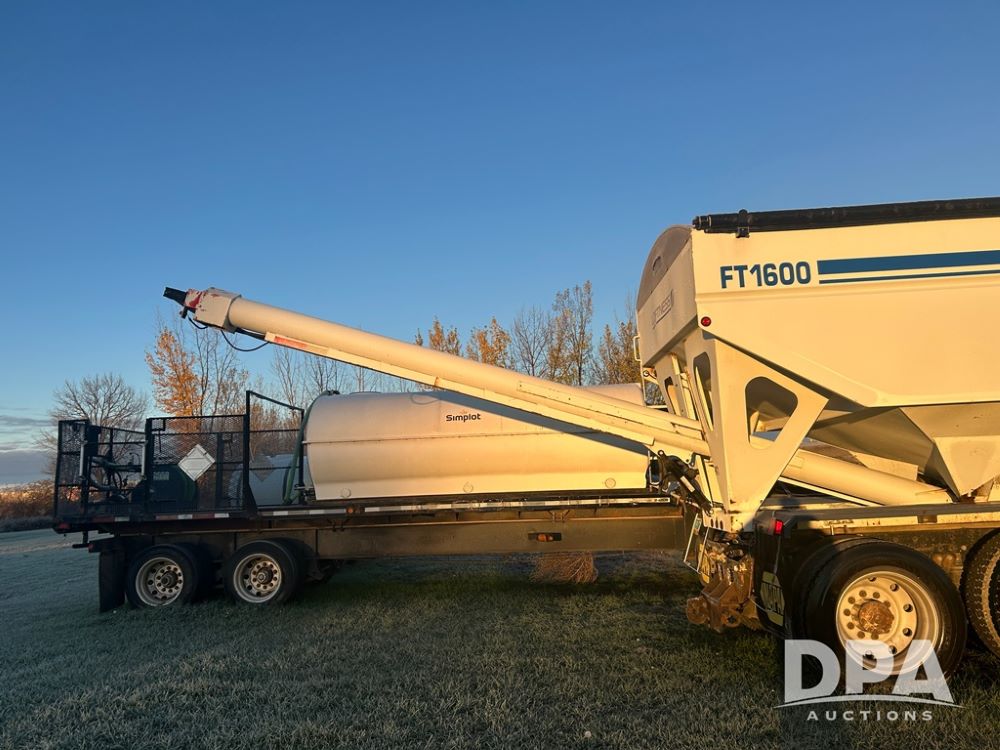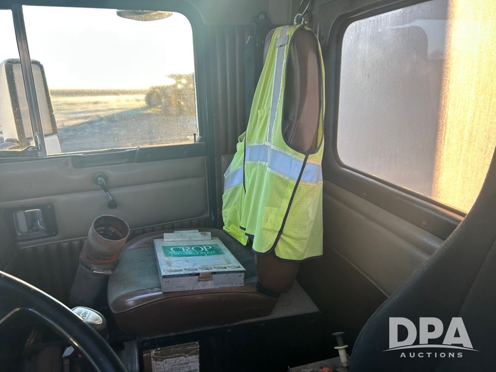 1991 Kenworth Dry Truck (CP1202 Unit 557793), model T600, NON RUNNER, Cat diesel engine, 13 speed transmission, tandem axle full screw, air ride suspension, air lift tag axle, Loftness FT1600 stainless steel hydraulic dry tender box, rear discharge auger, rear pup hookups, electric roll over tarp, engine brake, dual aluminum fuel tanks, 22.5 tires, aluminum wheels.