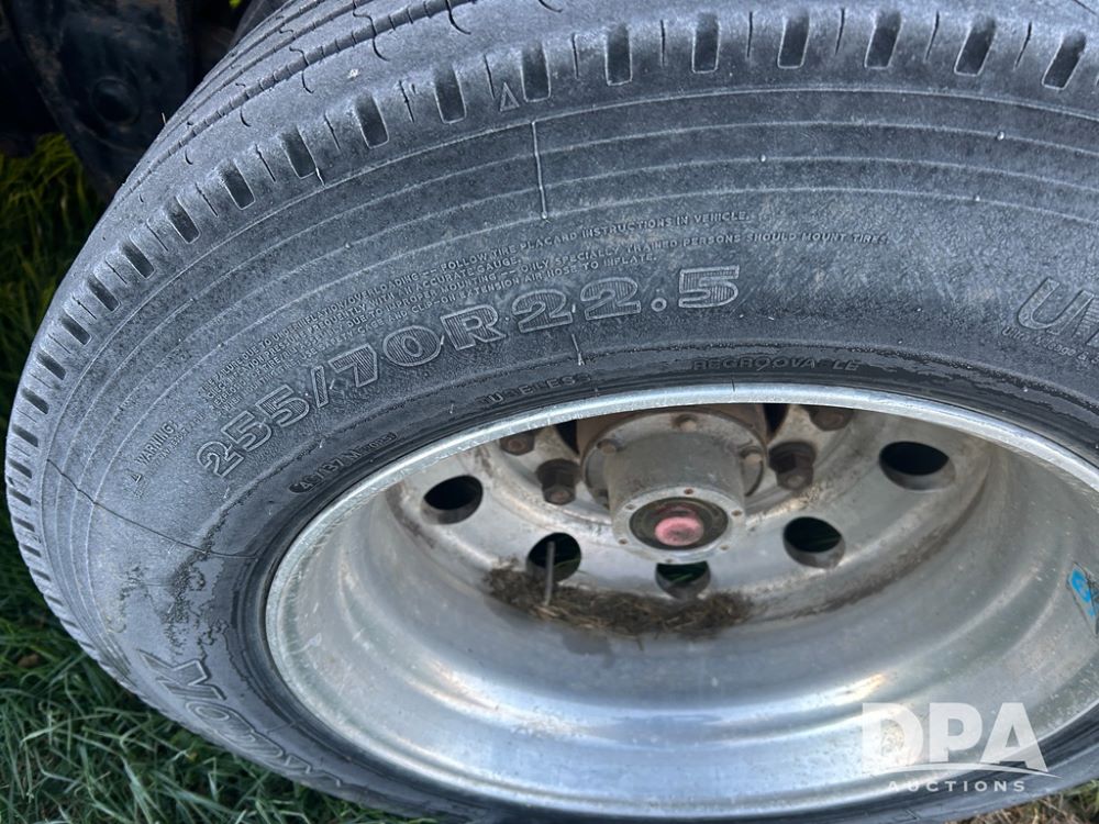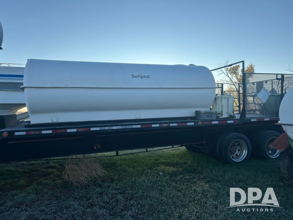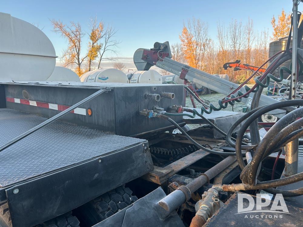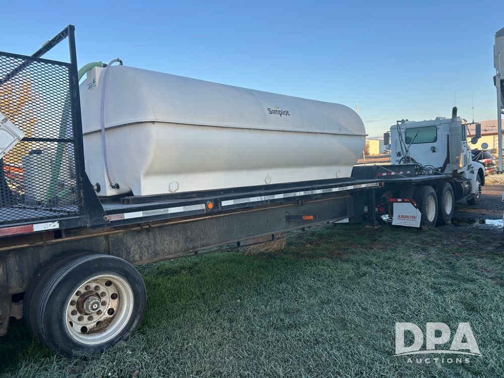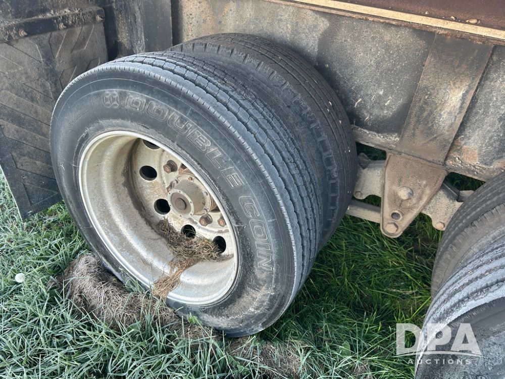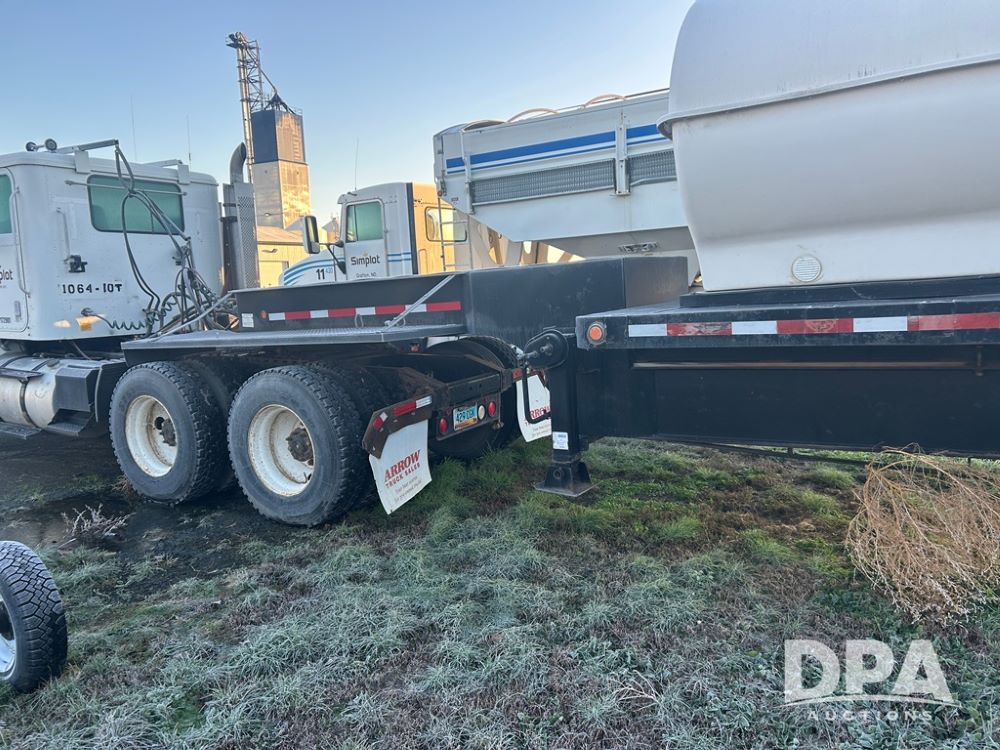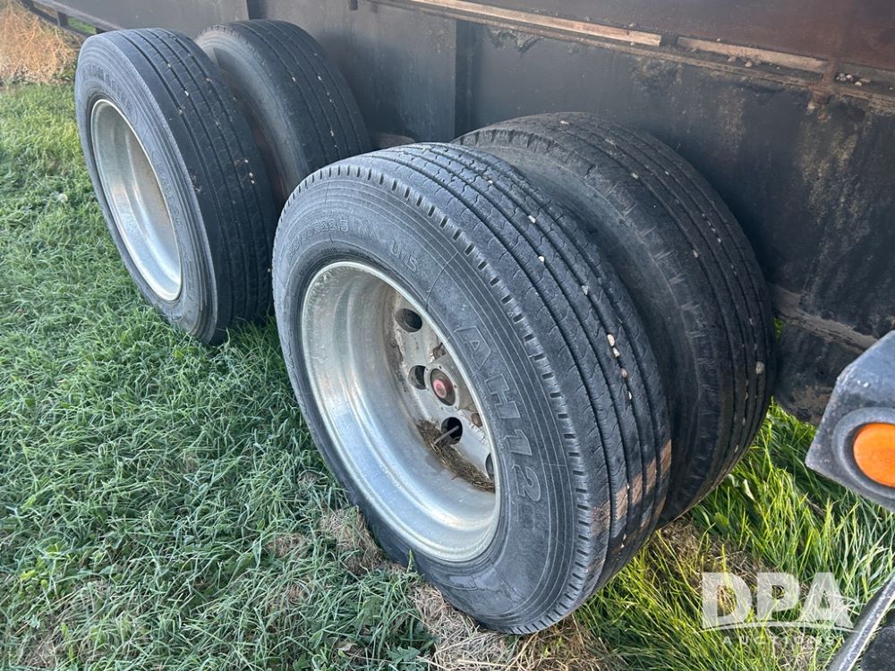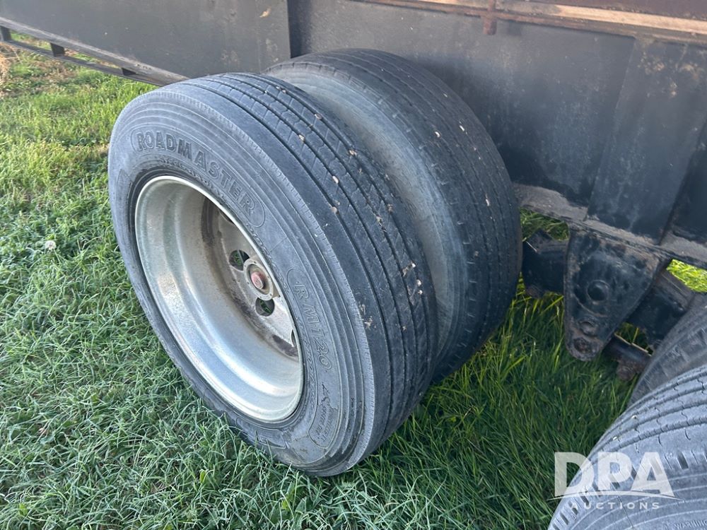 2002 B&B Liquid Trailer (CP1204), steel deck trailer, 3000 gallon fiberglass liquid tank, 3'' hose reel, hydraulic liquid pump, rear shuttle rack, tandem axle spring suspension, 255/70R22.5 tires, aluminum wheels.