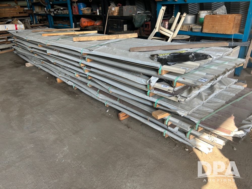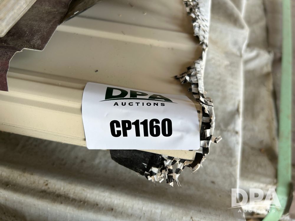 Metal Sheeting (CP1160), thirty (30) sheets, 16ft x 38in overlap coverage, tan in color, Premium Panel Loc Plus Profile style metal sheeting, 29 gauge, always stored inside.