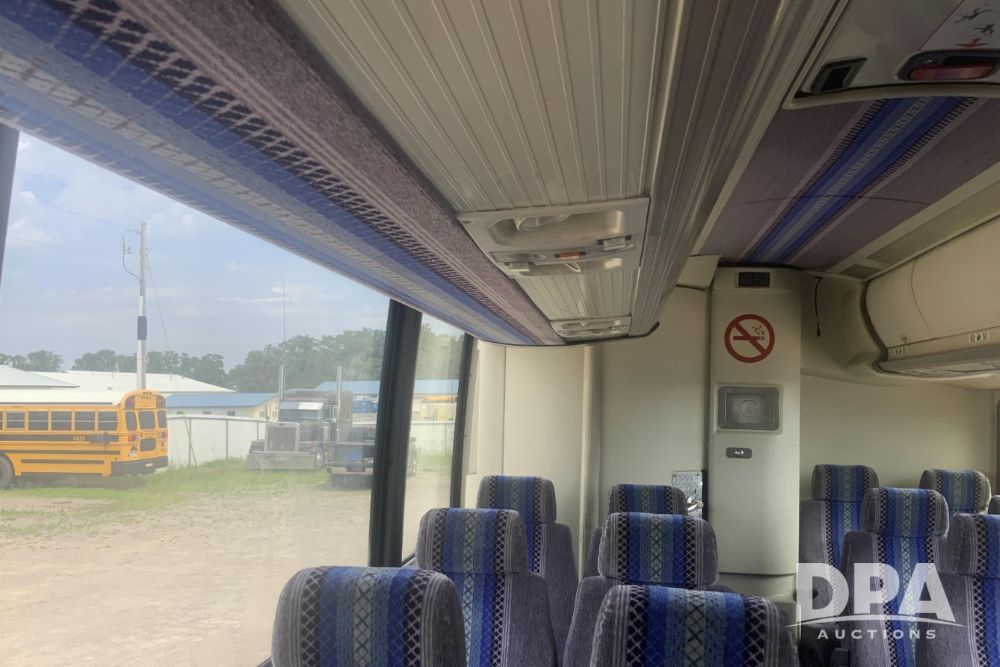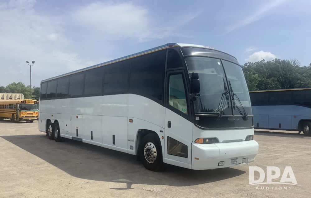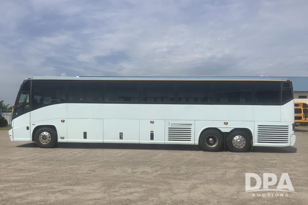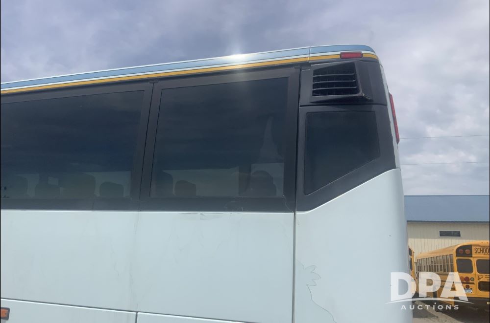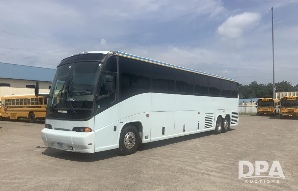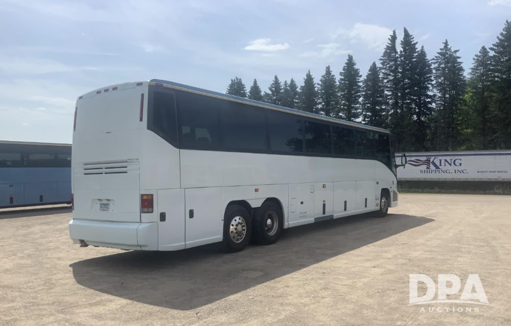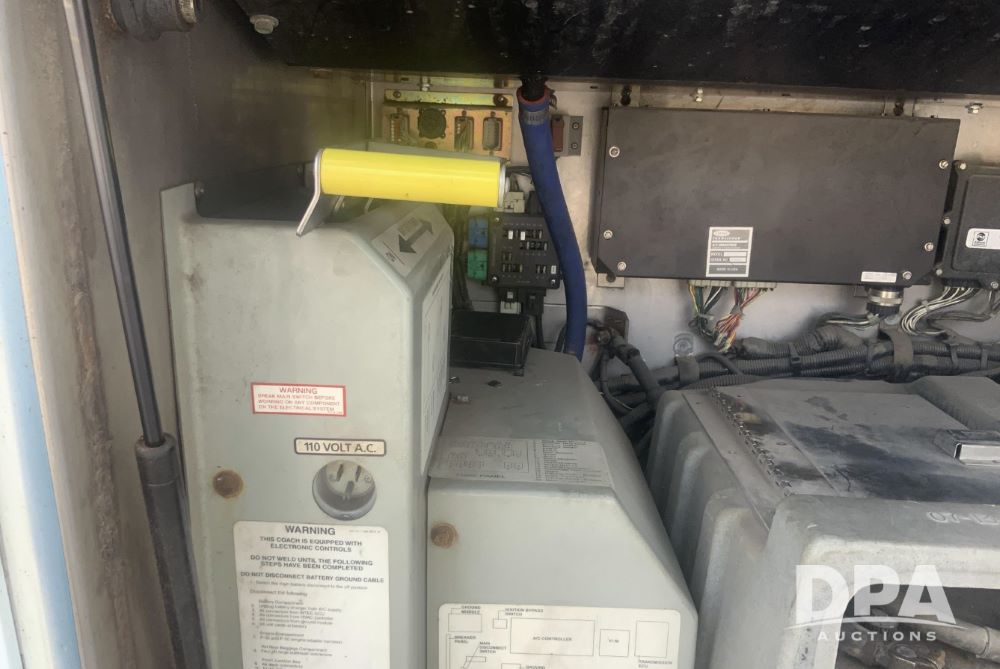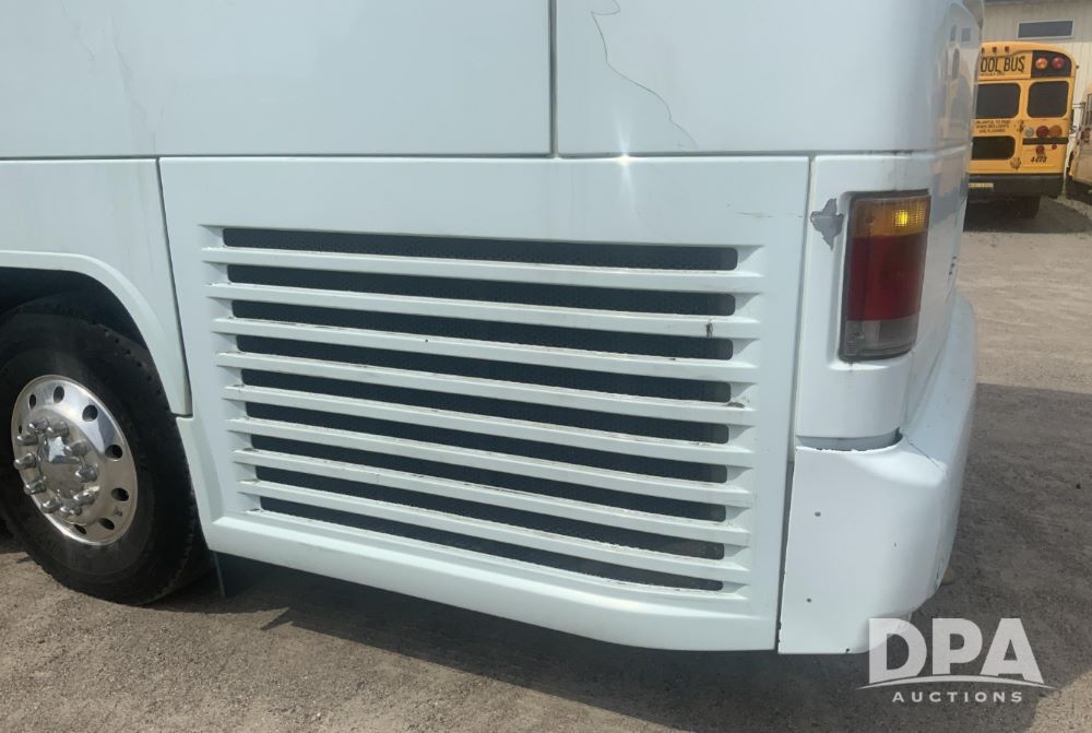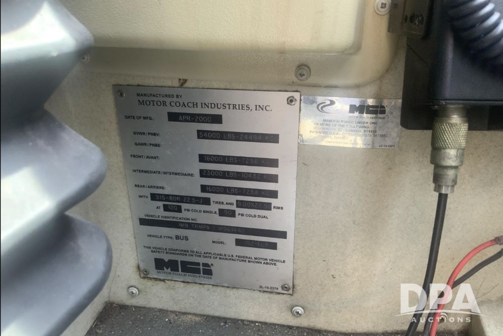 2001 Mci 102-El3 Passenger Bus (LLD1445), Detroit series 60 turbo diesel engine, Allison automatic transmission, 6 forward speeds, block heater, air suspension, air brakes, aluminum rims, heat, air conditioning, radio, DVD system with monitors, single person lavatory with sink, tag axle, 315/80R22 tires, shows 715,500 miles.