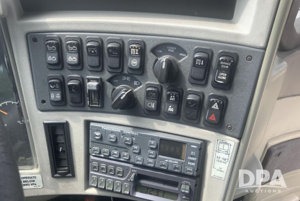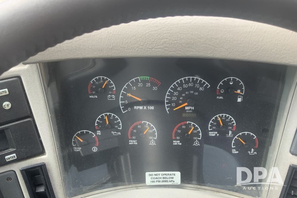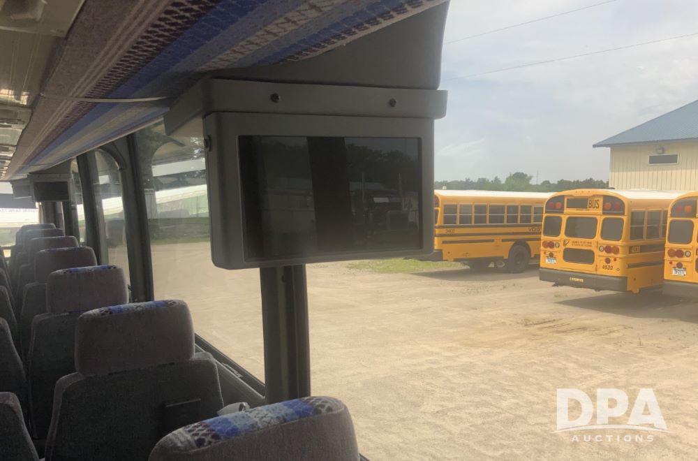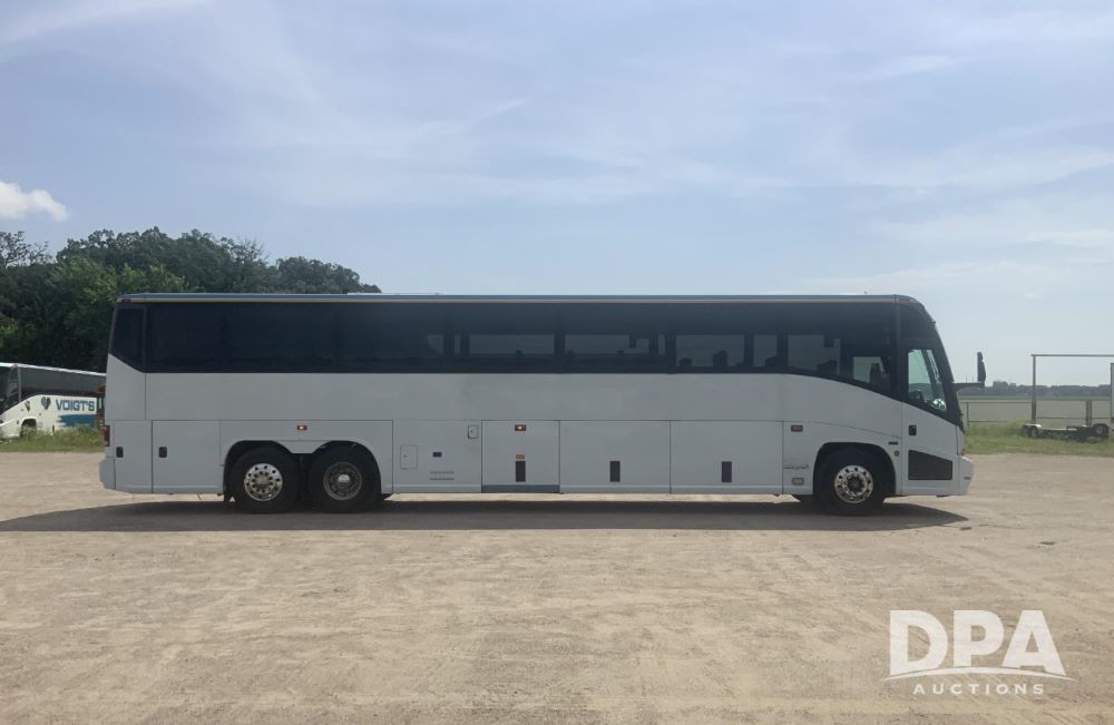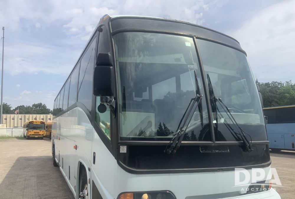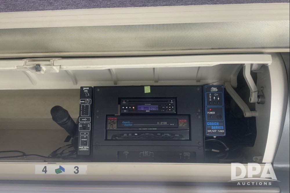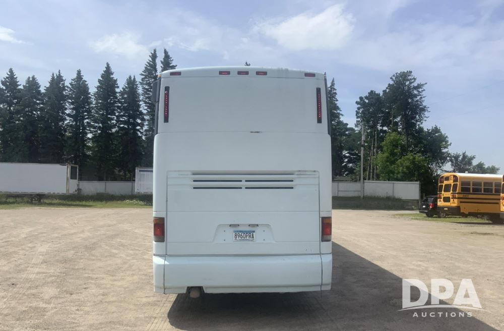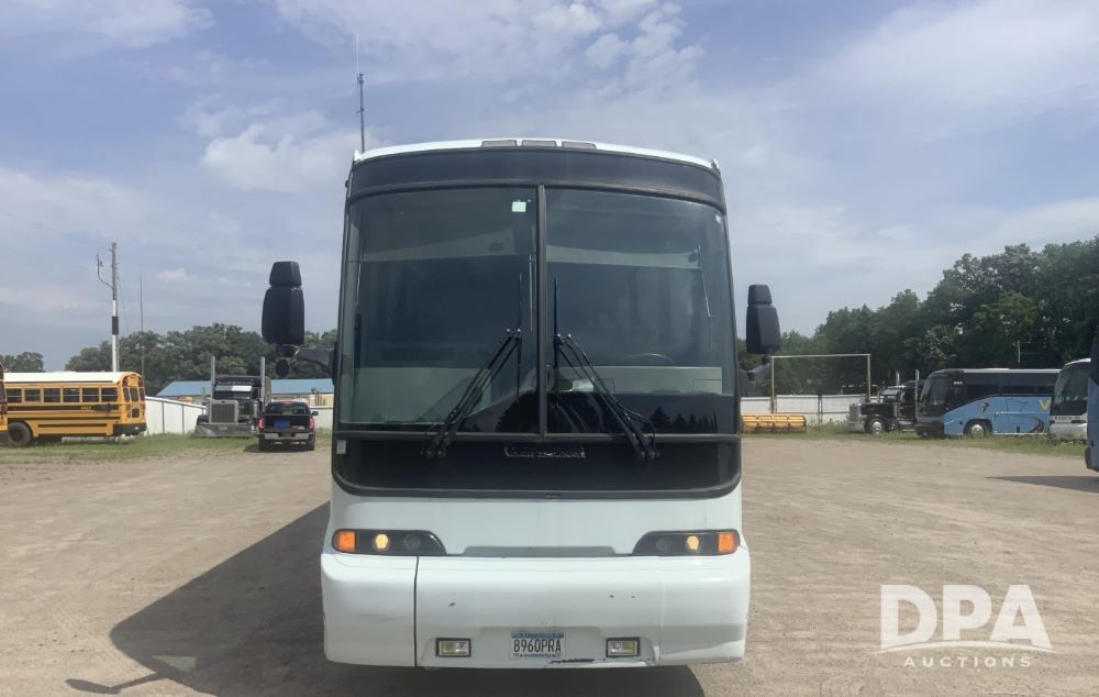 2001 Mci 102-El3 Passenger Bus (LLD1445), Detroit series 60 turbo diesel engine, Allison automatic transmission, 6 forward speeds, block heater, air suspension, air brakes, aluminum rims, heat, air conditioning, radio, DVD system with monitors, single person lavatory with sink, tag axle, 315/80R22 tires, shows 715,500 miles.