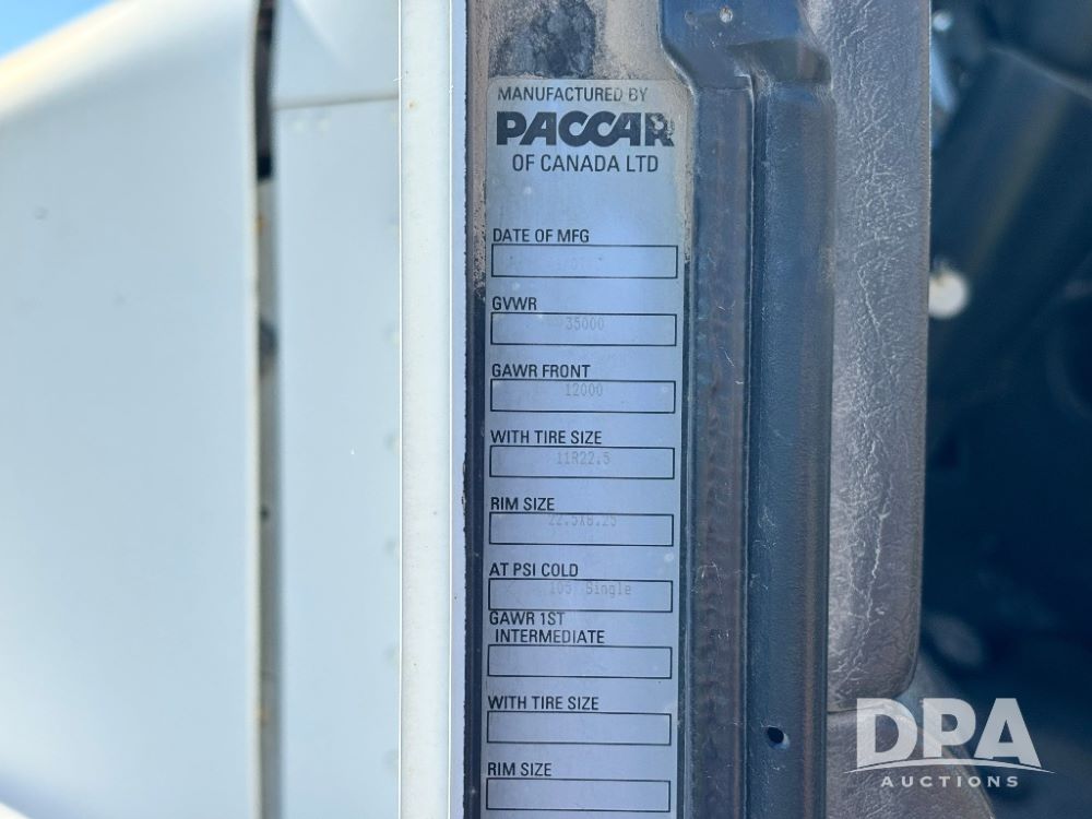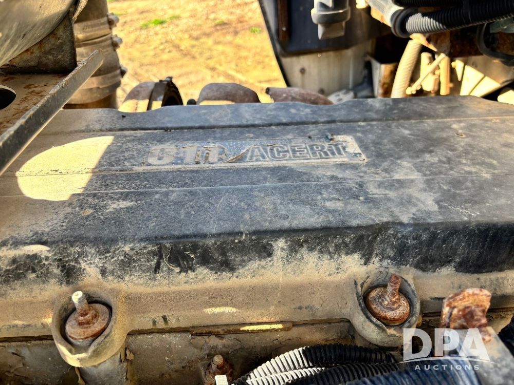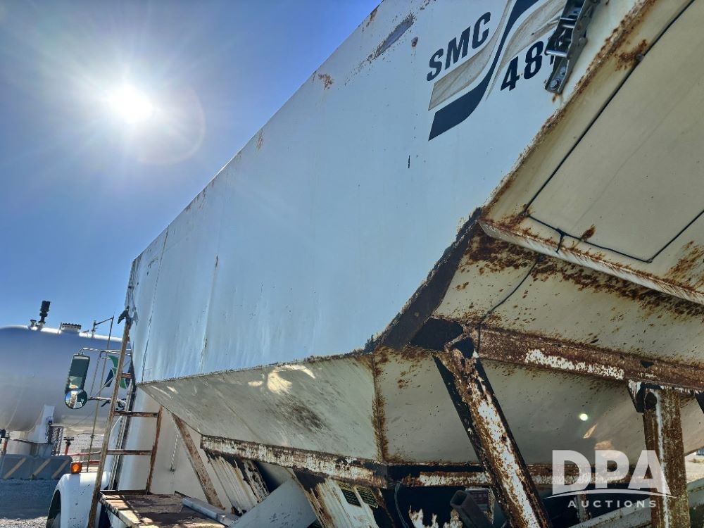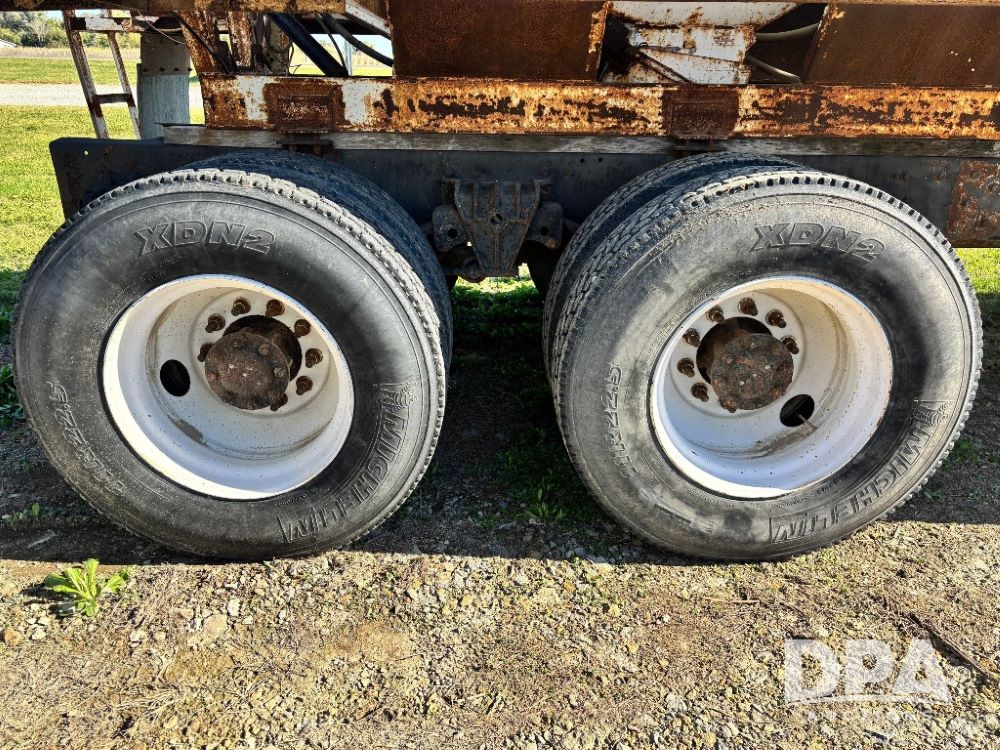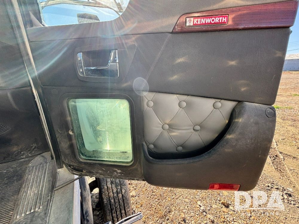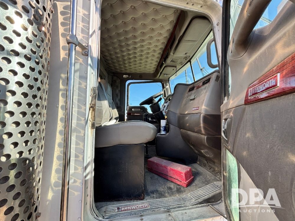 2007 Kenworth T800 Dry Tender Truck (GP11709, Unit 126179), Cat C11 Acert diesel engine, Eaton Fuller 10 speed transmission, heat, Am/Fm radio, cruise control, tandem axle, spring suspension, Simonsen SMC 4816 dry tender box, 16 ton capacity, rear discharge auger, hydraulic, roll tarp, single fuel tank, single exhaust, 11R22.5 tires, axle ratio 4.10, shows 434,974 miles.
