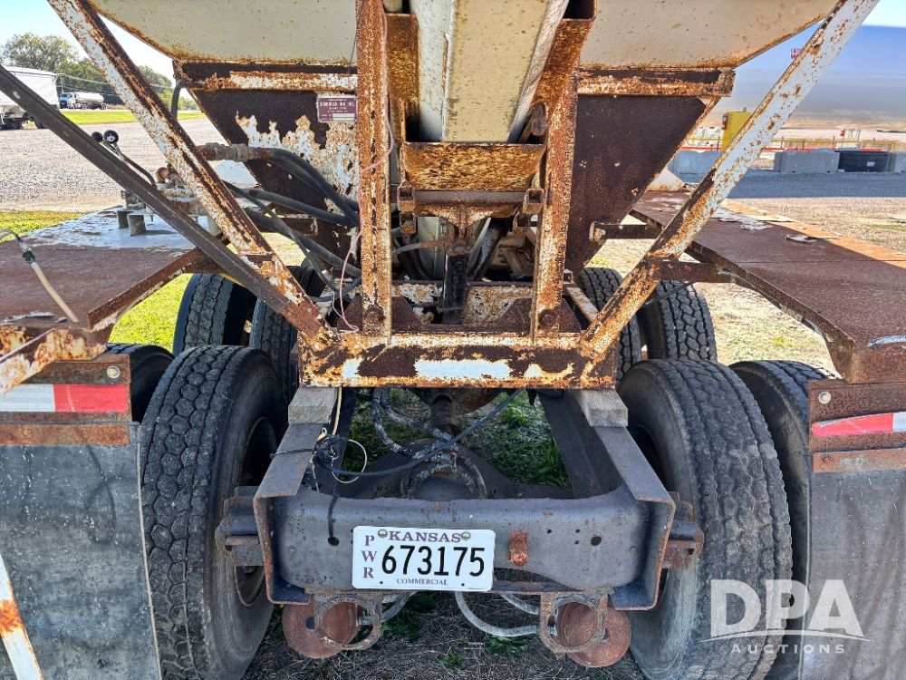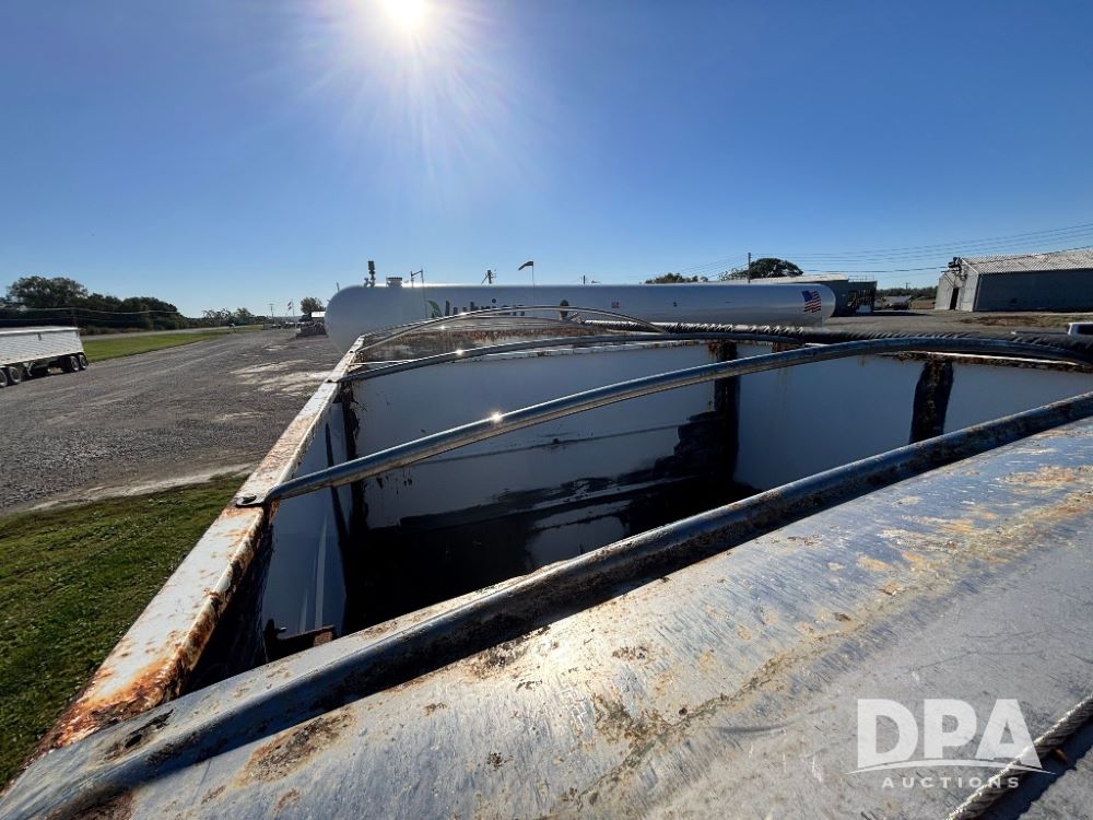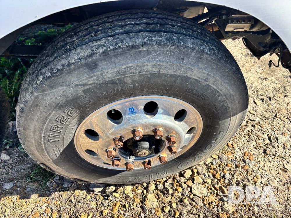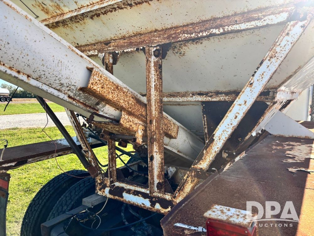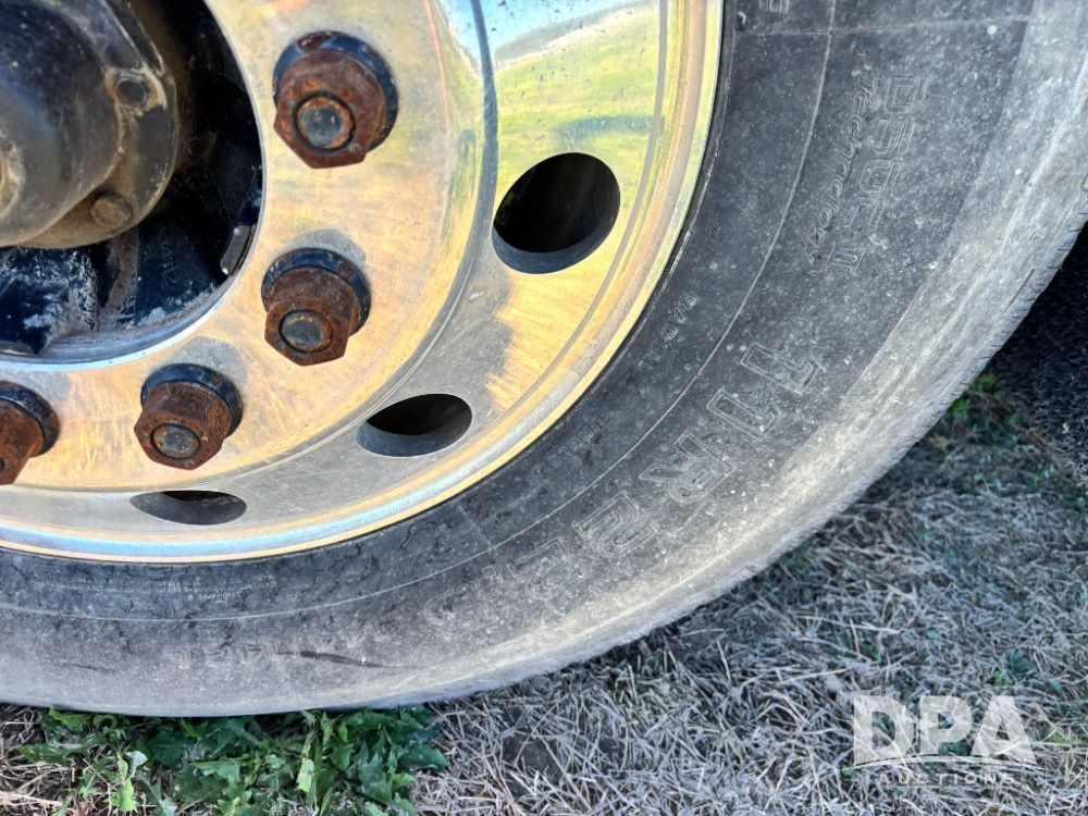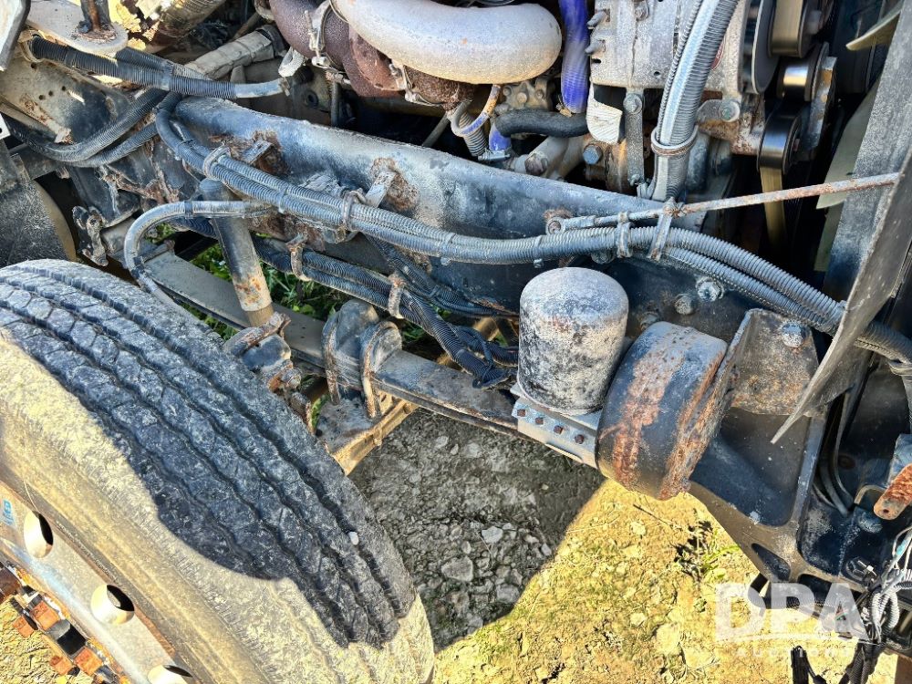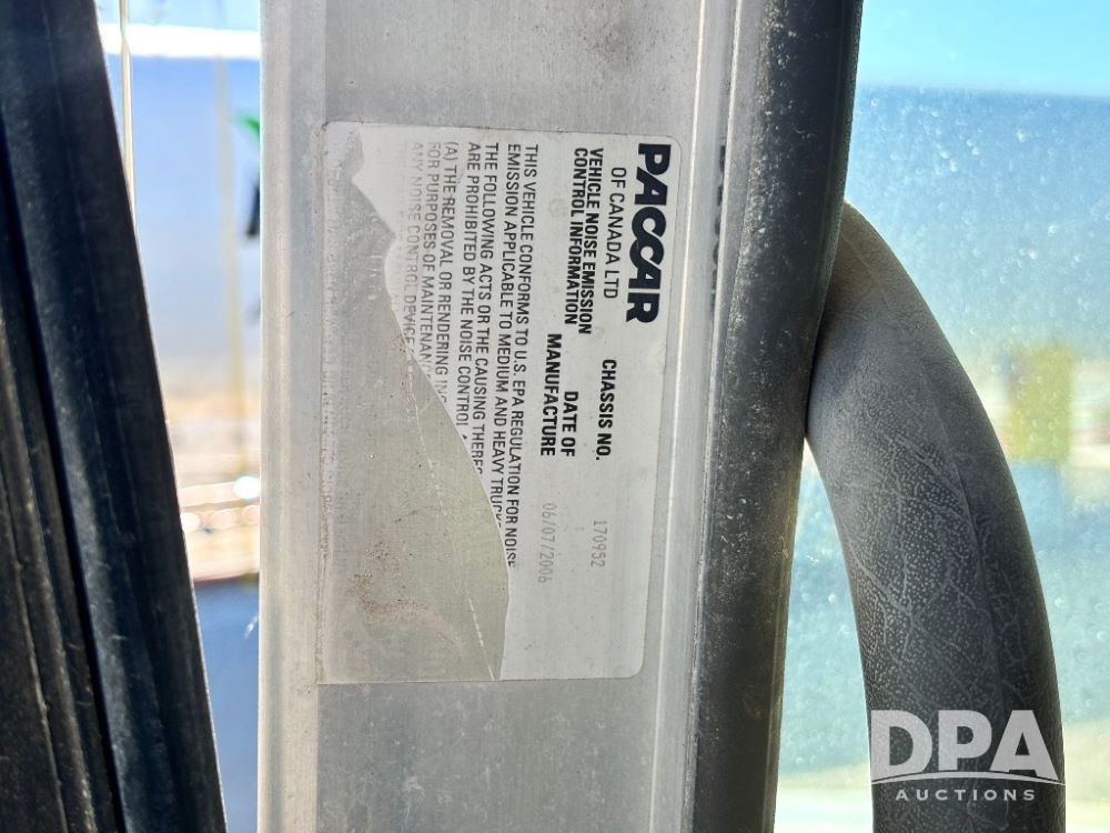2007 Kenworth T800 Dry Tender Truck (GP11709, Unit 126179), Cat C11 Acert diesel engine, Eaton Fuller 10 speed transmission, heat, Am/Fm radio, cruise control, tandem axle, spring suspension, Simonsen SMC 4816 dry tender box, 16 ton capacity, rear discharge auger, hydraulic, roll tarp, single fuel tank, single exhaust, 11R22.5 tires, axle ratio 4.10, shows 434,974 miles.