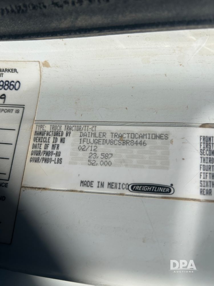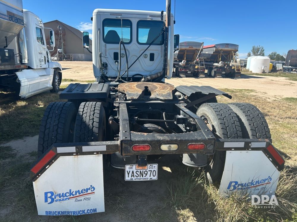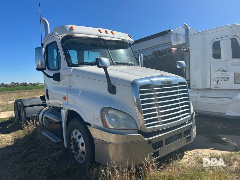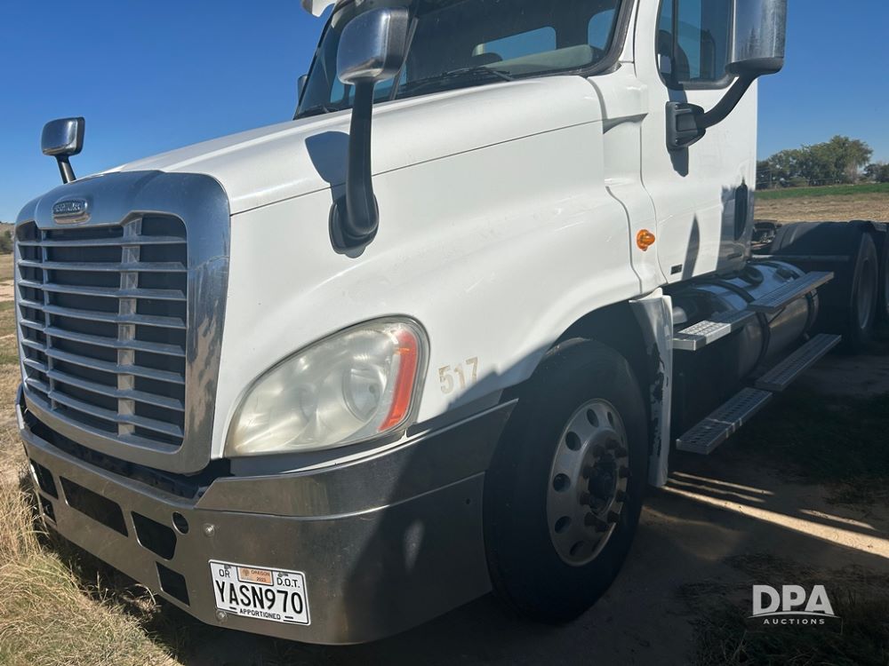 2012 Freightliner Cascadia Truck (CP1182 Unit 517), Detroit diesel engine, 10 speed transmission, tandem axle full screw, air ride suspension, air slide 5th wheel plate, hydraulic wet kit, engine brake, cruise control, heat/air conditioning, poly half fenders, 22..5 tires, all aluminum wheels.