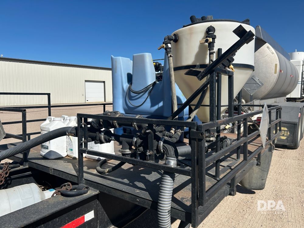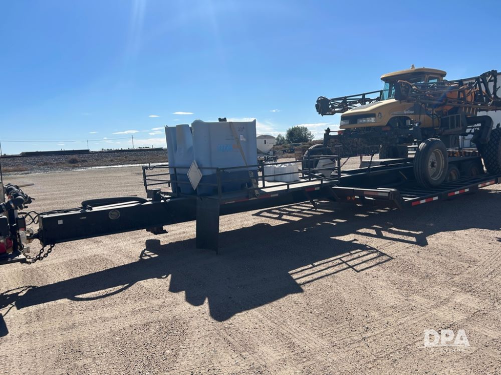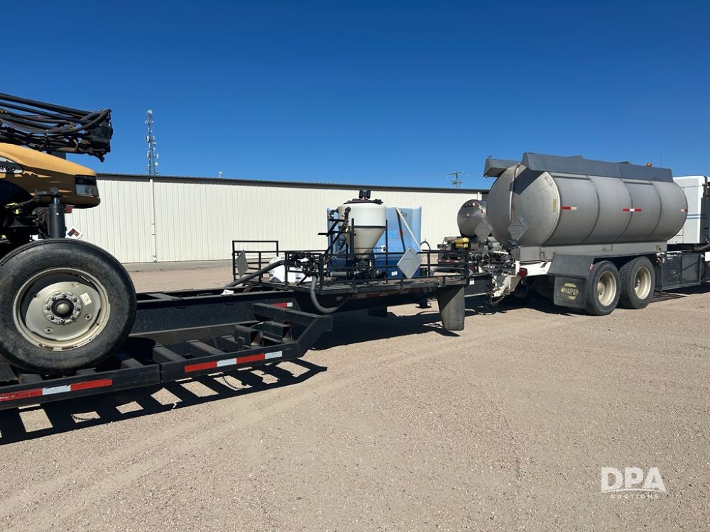 Sprayer Trailer (CP1191), pintle hitch sprayer trailer, manual outriggers and rear ramps, front shuttle rack, poly chemical inductor and liquid manifold, tandem axle, air brakes, 255/70R22.5 tires.