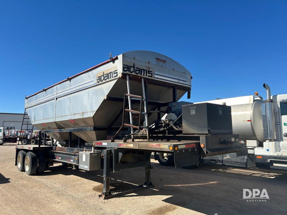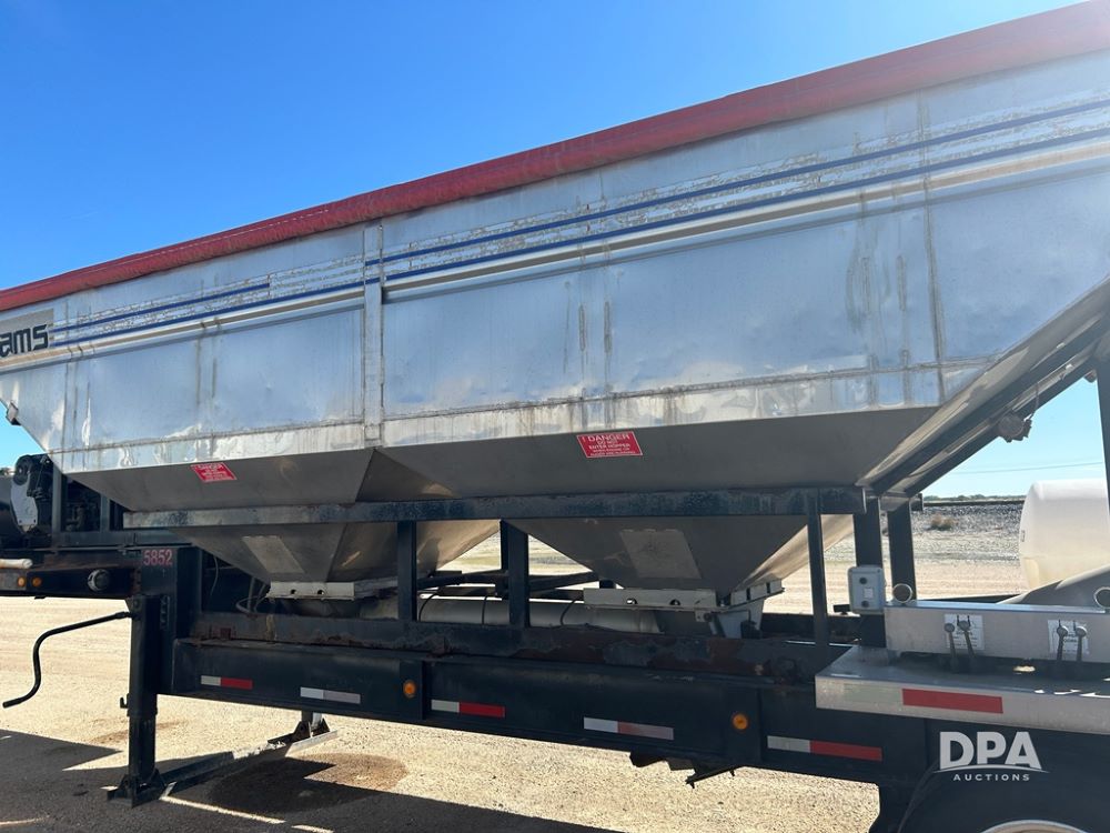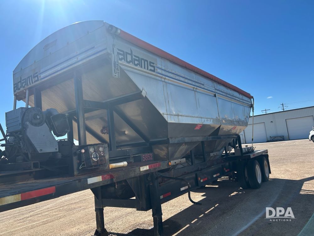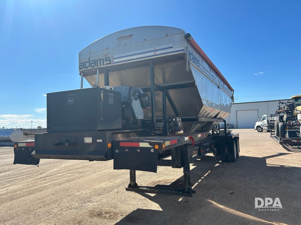 2013 Adams Dry Trailer (CP1195 Unit 5852), 24 ton stainless steel hydraulic dry tender trailer, self contained hydraulics w/diesel engine, rear discharge auger, roll over tarp, tandem axle, 255/70R22.5 tires.