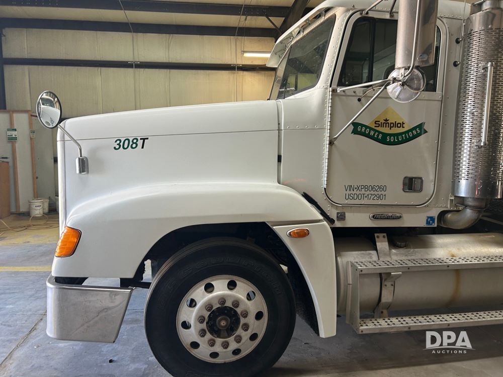 1999 Freightliner FLD 120 Liquid Truck (CP1210 Unit 308T), Detroit diesel engine, 13 speed transmission, tandem axle full screw, 2014 KBK 2,800 gallon fiberglass liquid tank, Honda gas engine, John Blue 3'' liquid pump, engine brake, aluminum full fenders, dual aluminum fuel tanks, cruise control, heat/air conditioning, 22.5 tires, aluminum wheels, odometer reads 680,309 miles.