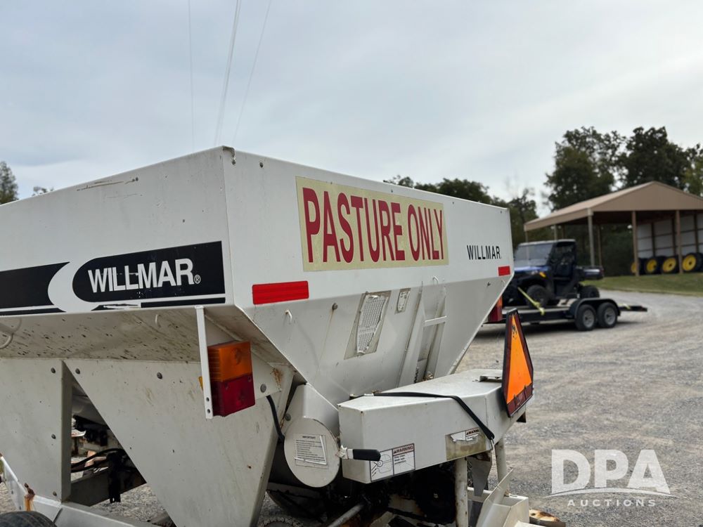 Willmar Super 500 Dry Spreader (JY0991, Unit 4611), Willmar Model Super 500 pull type dry spreader, tandem axle, twin hydraulic spinners, PTO drive, 11L-15 flotation tires.
