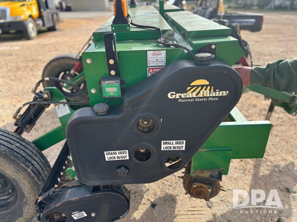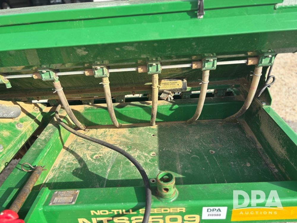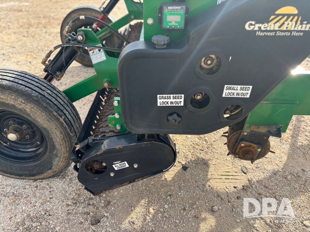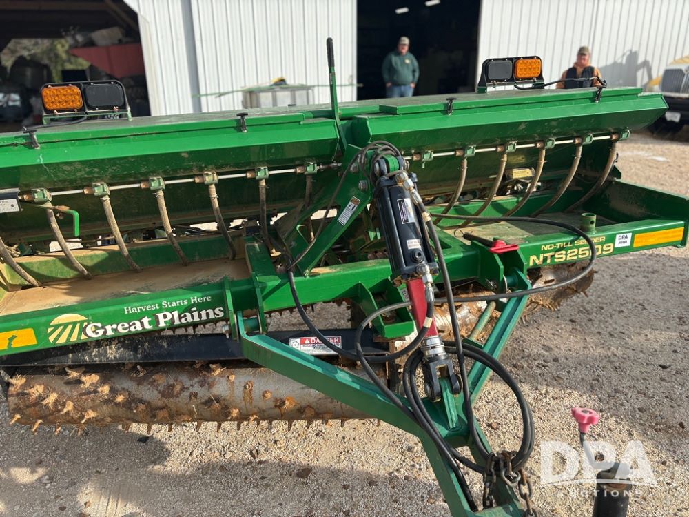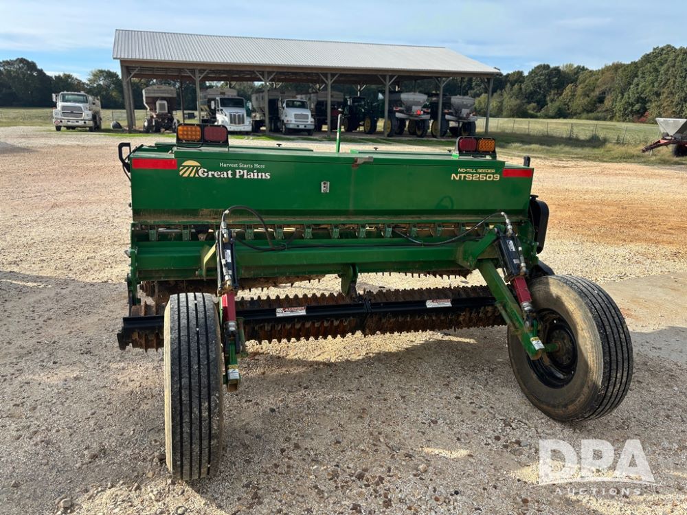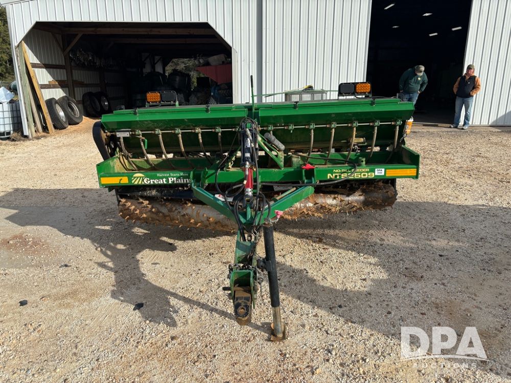 Great Plains NTS2509 No Till Drill (JY0980), Great Plains Model NTS2509 no till drill, approx. 9' working width, 7.5" spacing, small seed box, acre counter, ground drive, lockout clutch, 4 speed sealed gearbox, front spike roller, rear packer roller, hydraulic, 235/85R16 tires.