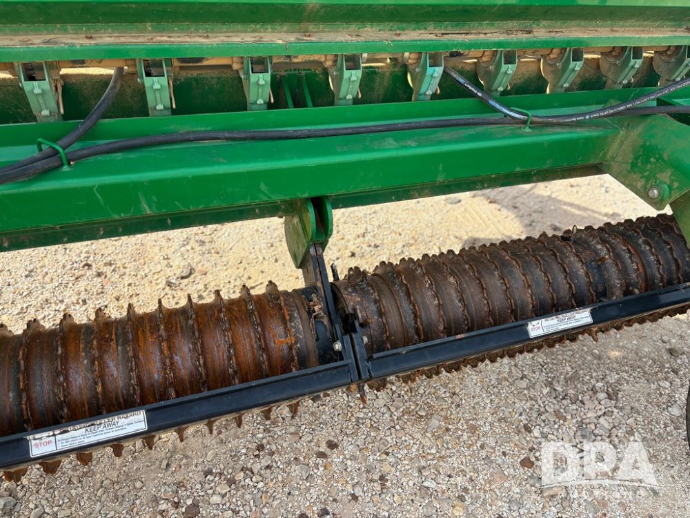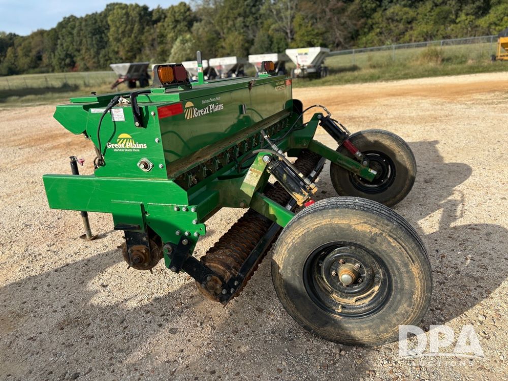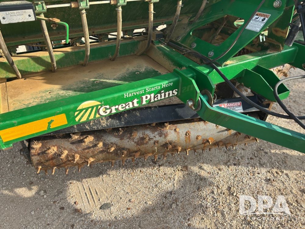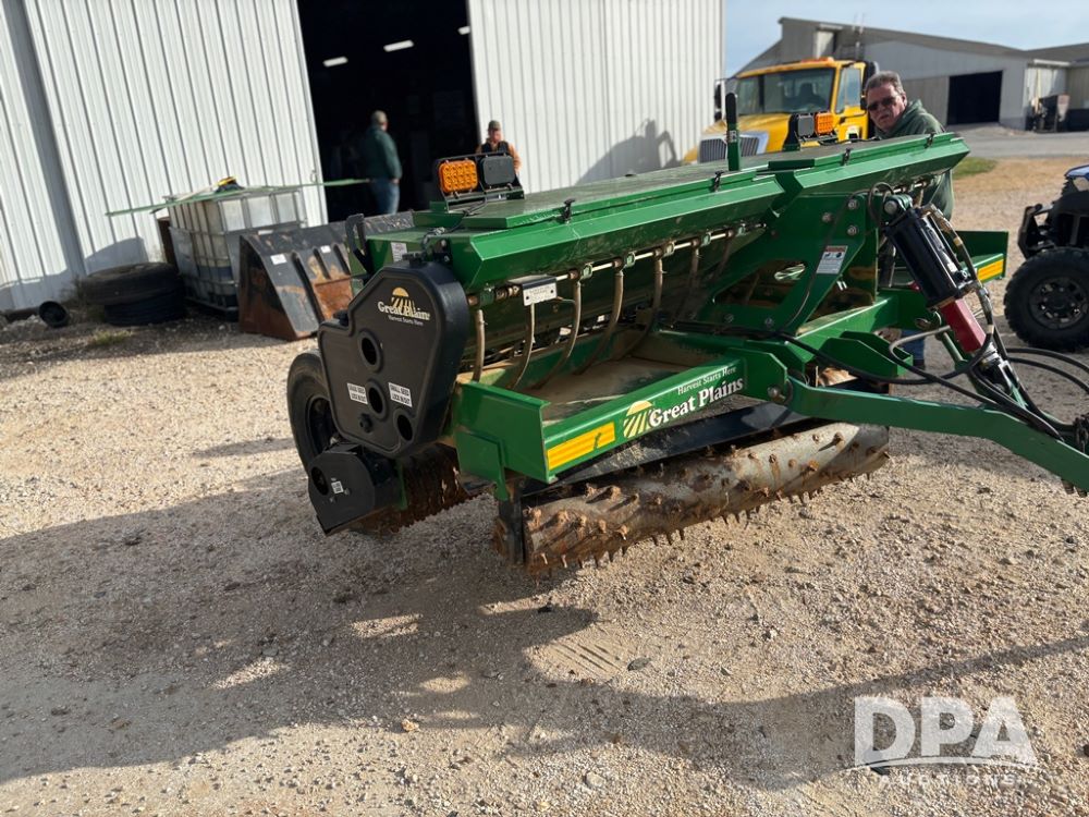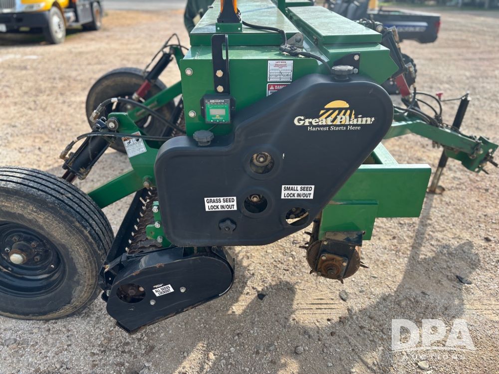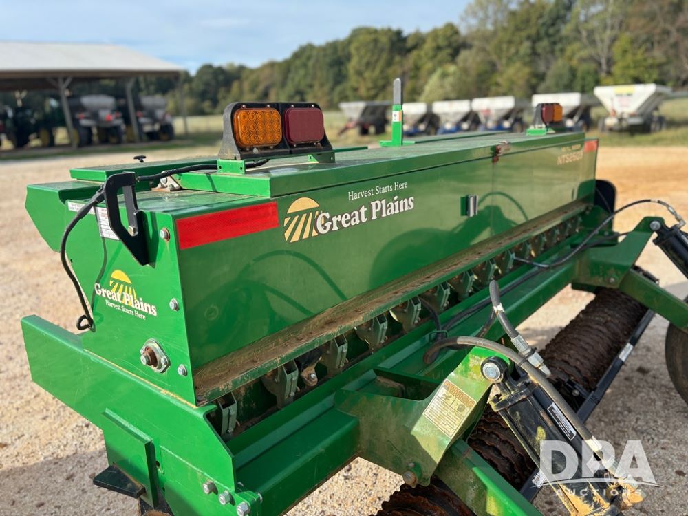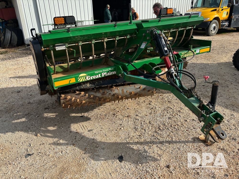 Great Plains NTS2509 No Till Drill (JY0980), Great Plains Model NTS2509 no till drill, approx. 9' working width, 7.5" spacing, small seed box, acre counter, ground drive, lockout clutch, 4 speed sealed gearbox, front spike roller, rear packer roller, hydraulic, 235/85R16 tires.