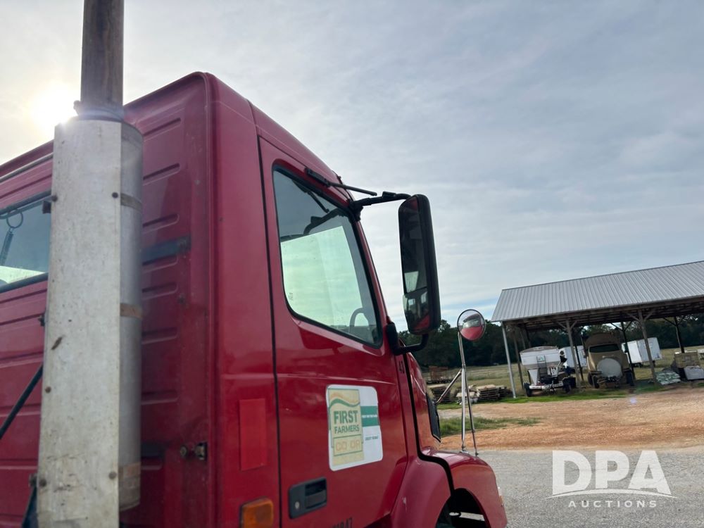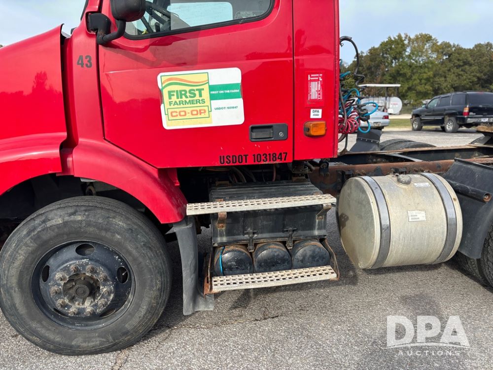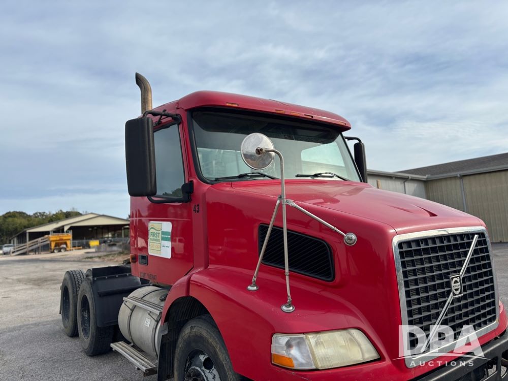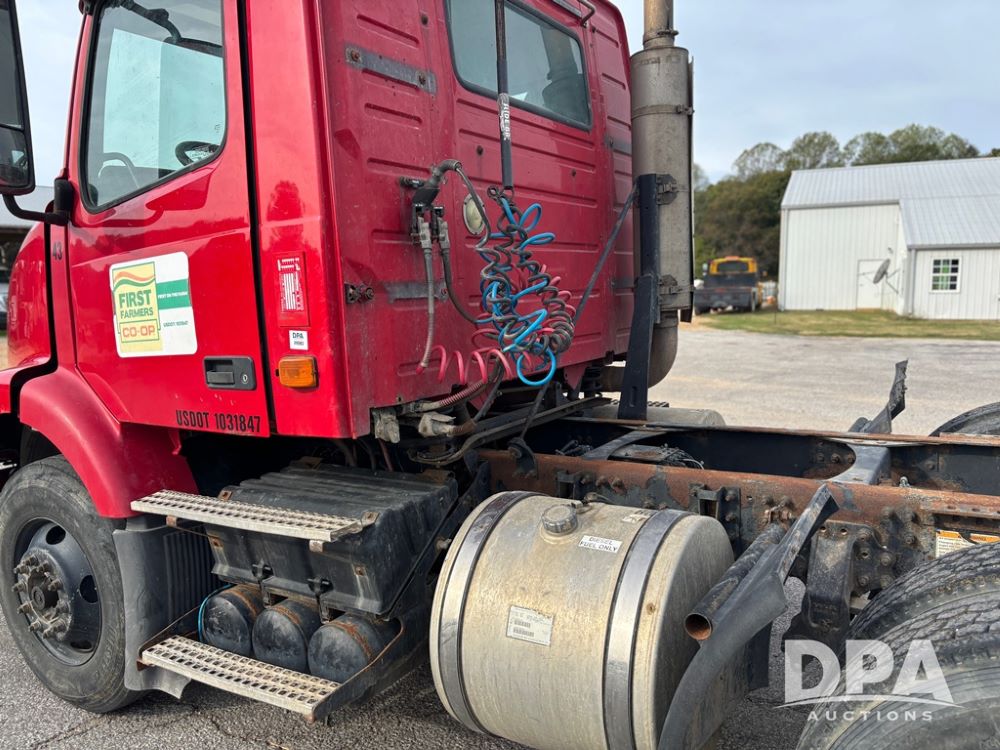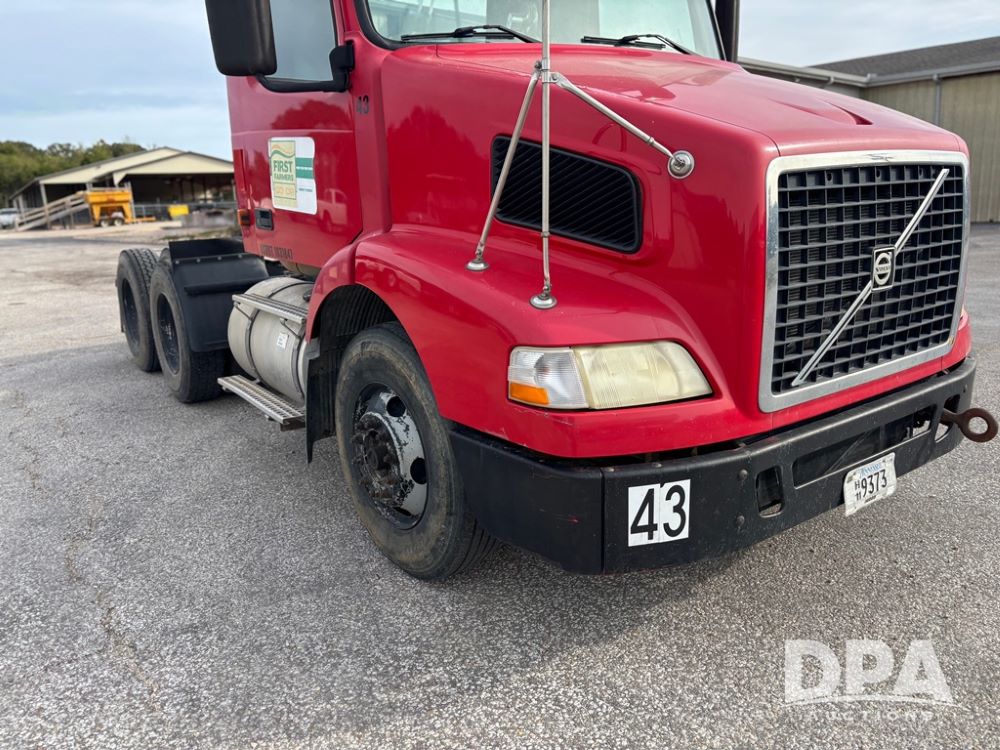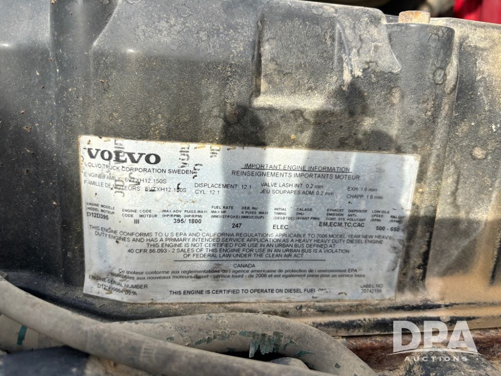 2006 Volvo Day Cab Truck (JY0982, Unit 43), Volvo D12 - 12.1L diesel engine, Eaton Fuller 10 speed manual transmission, heat, Am/Fm radio, tandem axle, air ride suspension, 5th wheel plate, 11R22.5 tires, single fuel tank, single exhaust, 12,000 pound front axle, 40,000 pound rears, shows 685,103 miles.