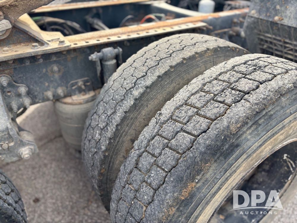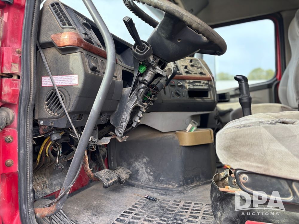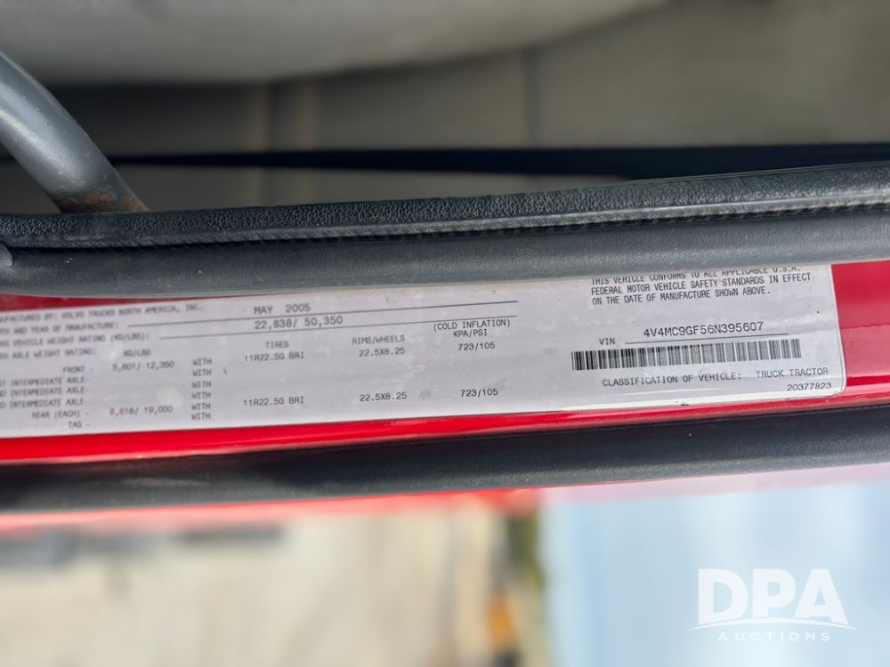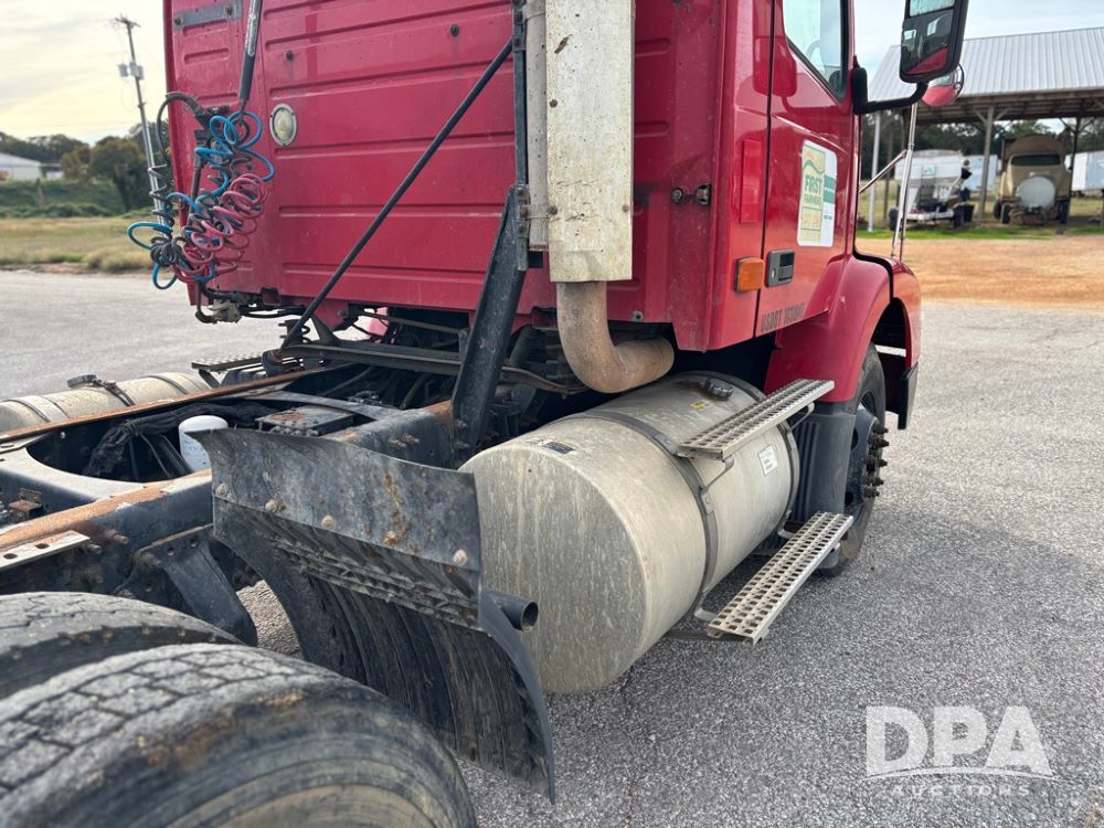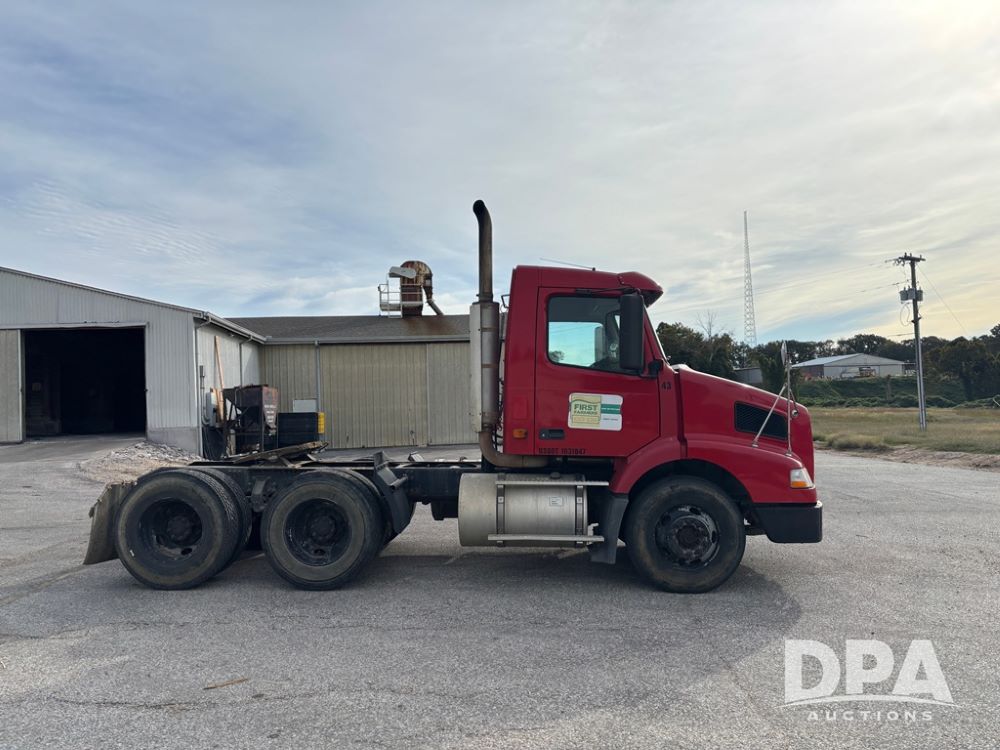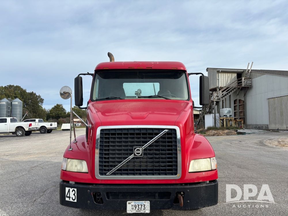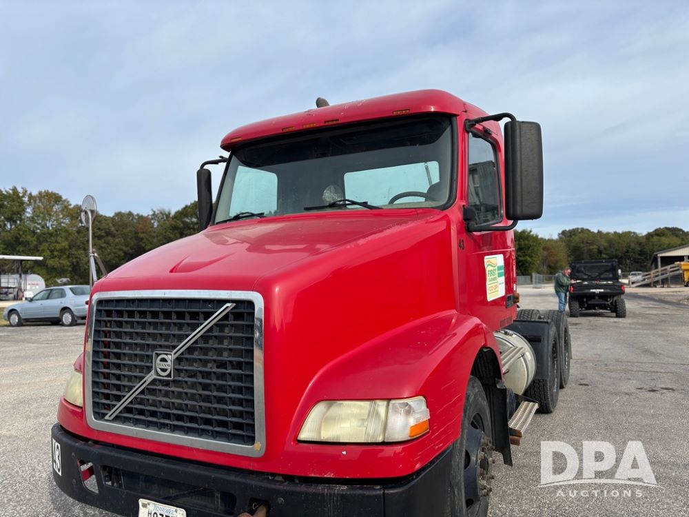 2006 Volvo Day Cab Truck (JY0982, Unit 43), Volvo D12 - 12.1L diesel engine, Eaton Fuller 10 speed manual transmission, heat, Am/Fm radio, tandem axle, air ride suspension, 5th wheel plate, 11R22.5 tires, single fuel tank, single exhaust, 12,000 pound front axle, 40,000 pound rears, shows 685,103 miles.