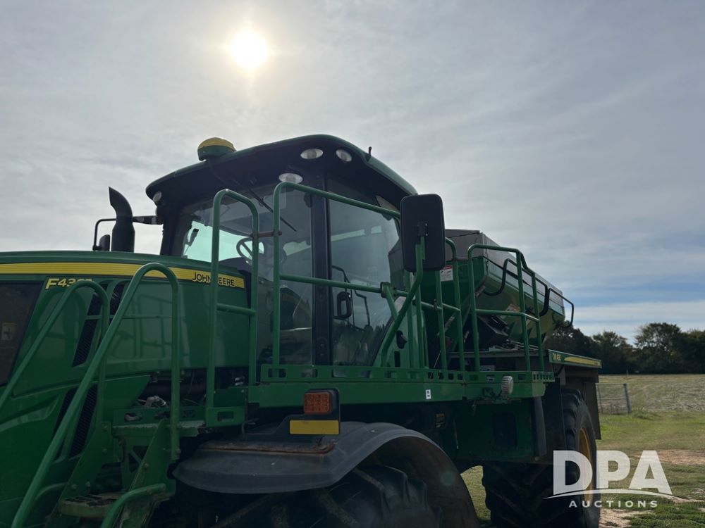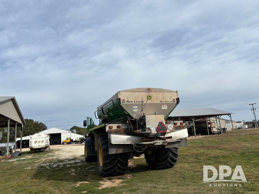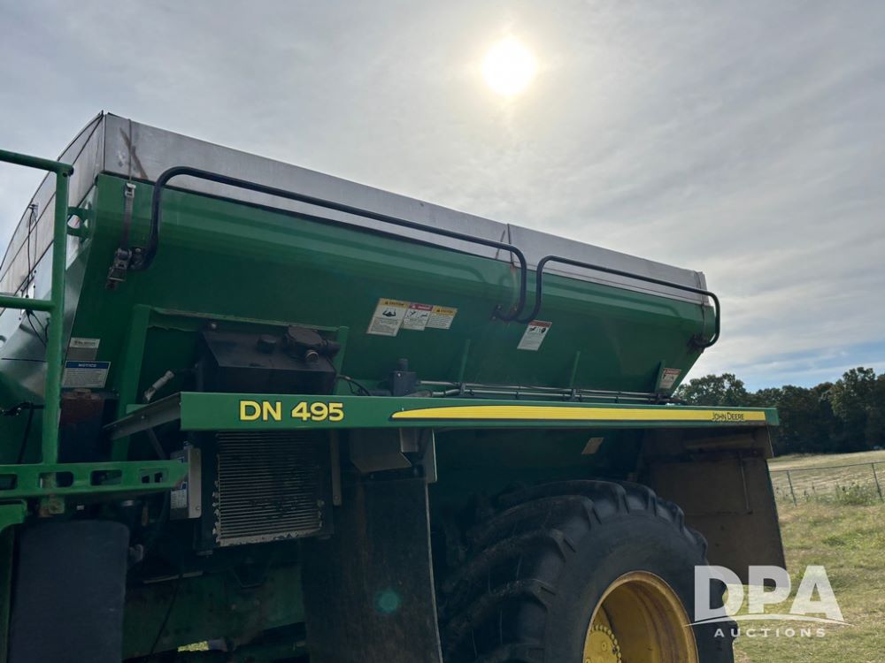 John Deere F4365 Dry Floater (JY0985), John Deere 9.0L diesel engine, hydrostatic transmission, Premium Cab, heat, air conditioning, Am/Fm radio, buddy seat, John Deere DN495 stainless steel dry spreader box (Model AKK18182-14', S/N 556688), 304 stainless, dual spinners, 11 inch gate, New Leader MultApplier insert, AgriCover electric roll tarp, hydraulic, 750/50R26 front tires, 1050/50R32 rear tires, swath control, section control, auto trac, John Deere StarFire 6000 6000 globe, Gen 4 processor, John Deere command center, shows 4,052 hours.