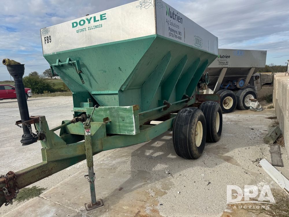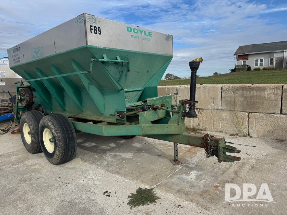 Doyle Dry Spreader (NP6204, Unit 89862), Doyle pull type dry spreader, tandem axle, 14L-16.1 flotation tires, dual spinners, 540 PTO.