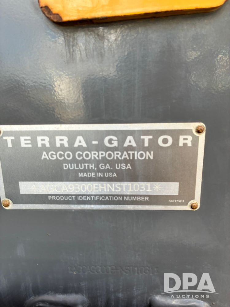 2015 AGCO 9300B Terra Gator Liquid Floater (LLD1447), diesel engine (DELETED), CVT transmission, air conditioning, heat, radio, beacon light, buddy seat, 2,400 gallon stainless steel tank, Benson boom system, 80 foot boom, Raven Viper Pro monitor, shows 2,541 hours.
