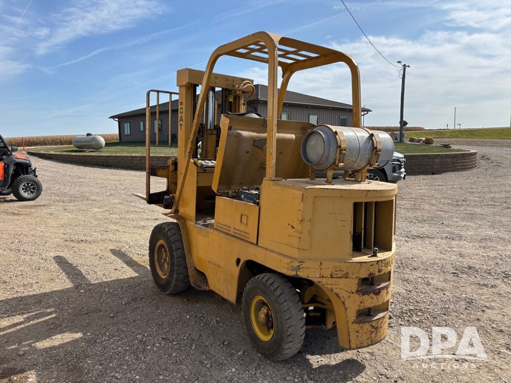 Cat V40C Forklift (DR12647), LP gas engine, shuttle drive, 3 stage mast, 4,000LB capacity, hydraulic side shift, pneumatic tires, shows 4,770 hours.