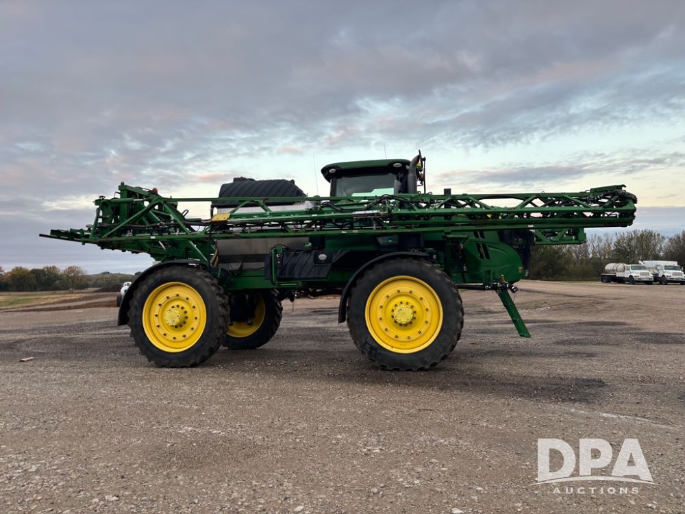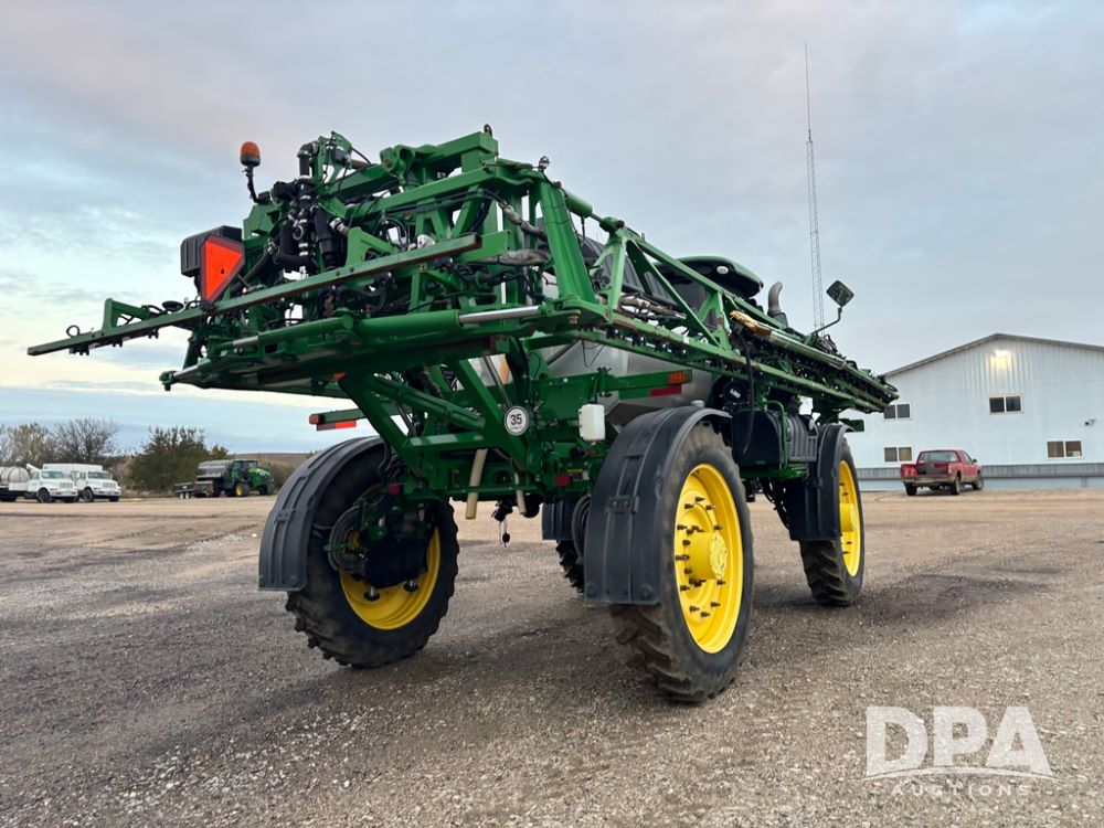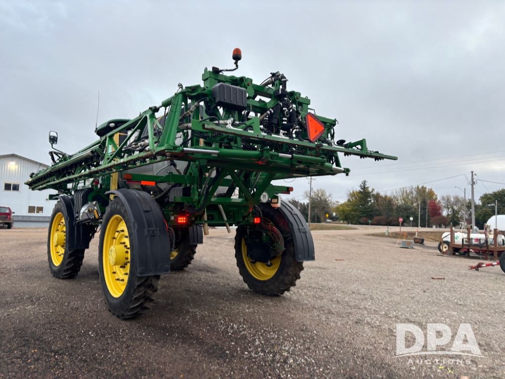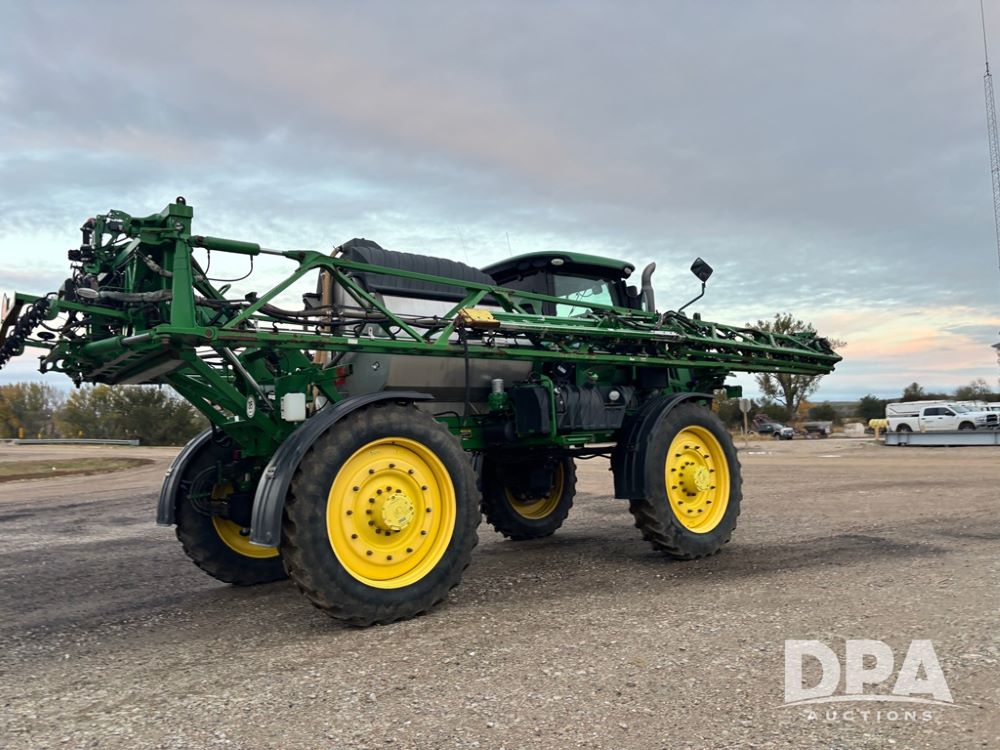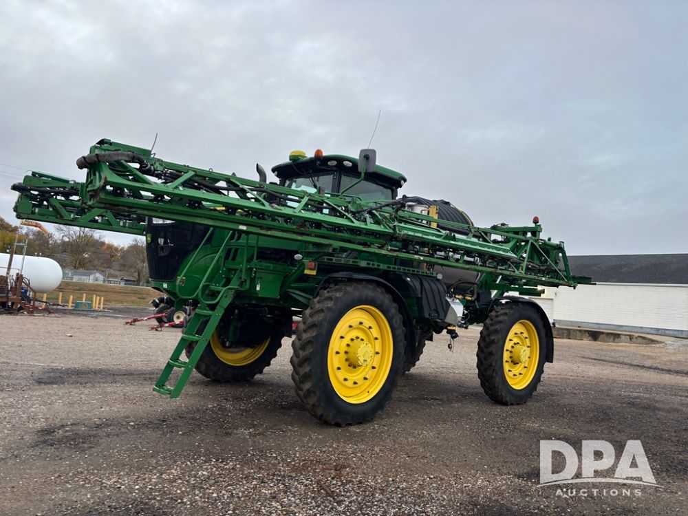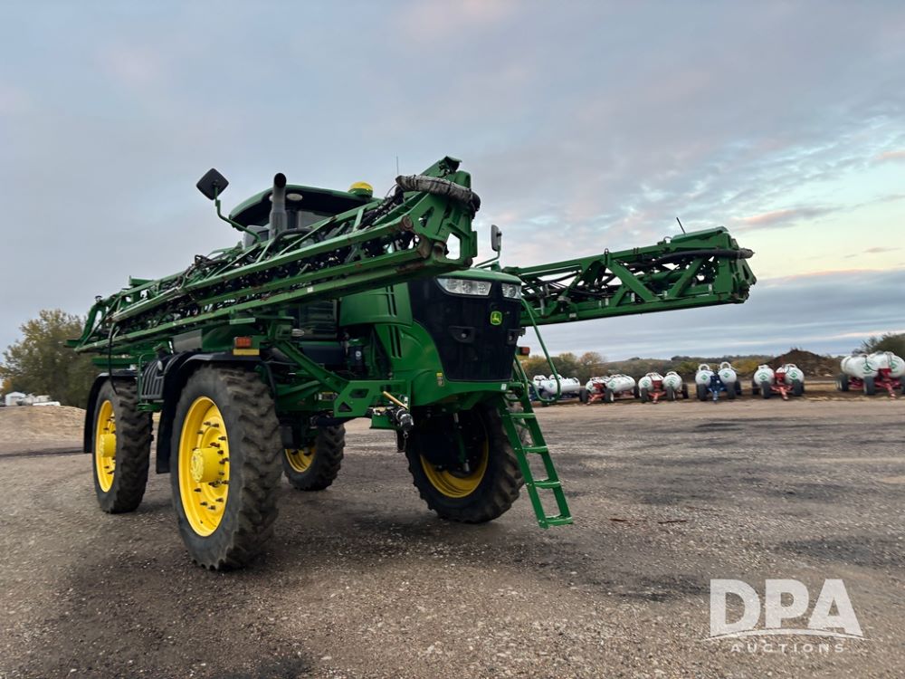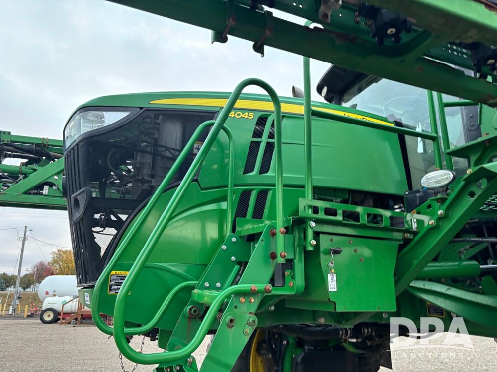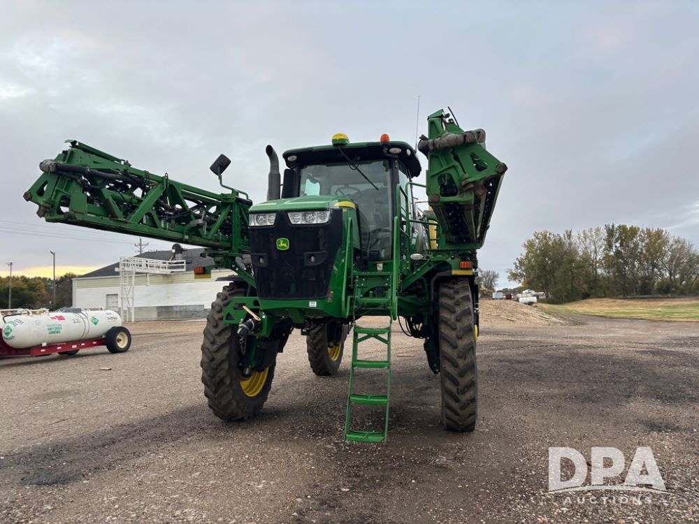 2018 John Deere R4045 Sprayer (DR12651 Unit 106257), John Deere diesel engine, hydrostatic drive, 1200 gallon stainless steel liquid system, 120' boom, Exactapply nozzle bodies, stainless steel chemical inductor, StarFire 6000 globe, John Deere Green Star controls, saddle mounted poly rinse tank, front load, Firestone 380/105R50 row crop tires, shows 3,388 hours.