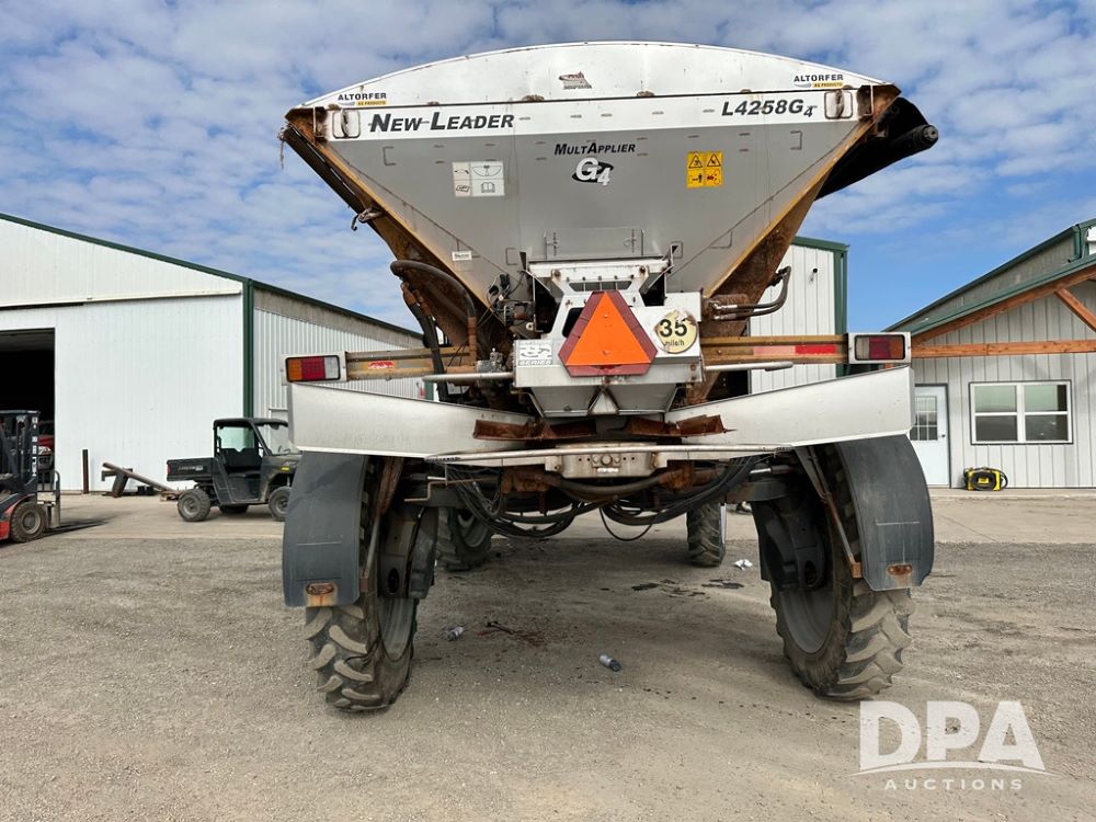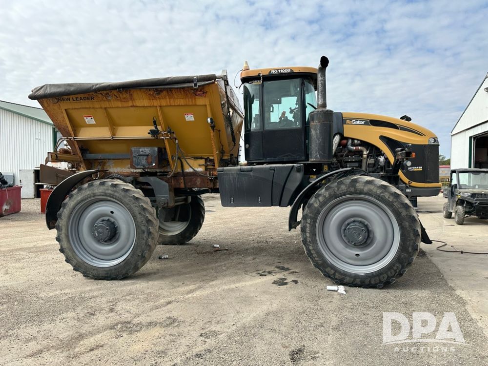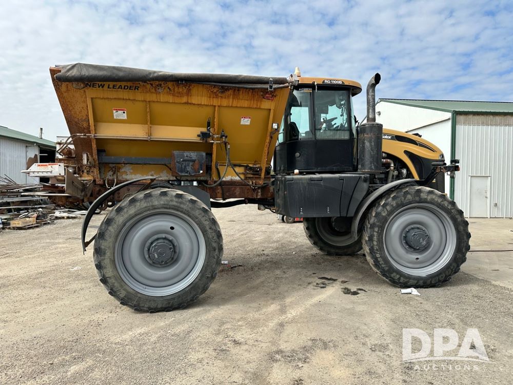 2015 Rogator RG1100B Dry Spreader Machine (NP6210), diesel engine, hydrostatic transmission, air conditioning, heat, Pioneer stereo, leather seat, New Leader L4258 G4 stainless steel dry Spreader Box, twin spinner, all hydraulic, Michelin 380.90R46 tires, Raven Viper Pro monitor, shows 2,697 hours.