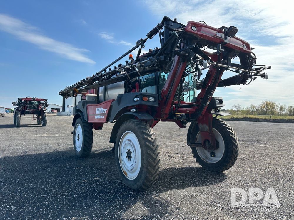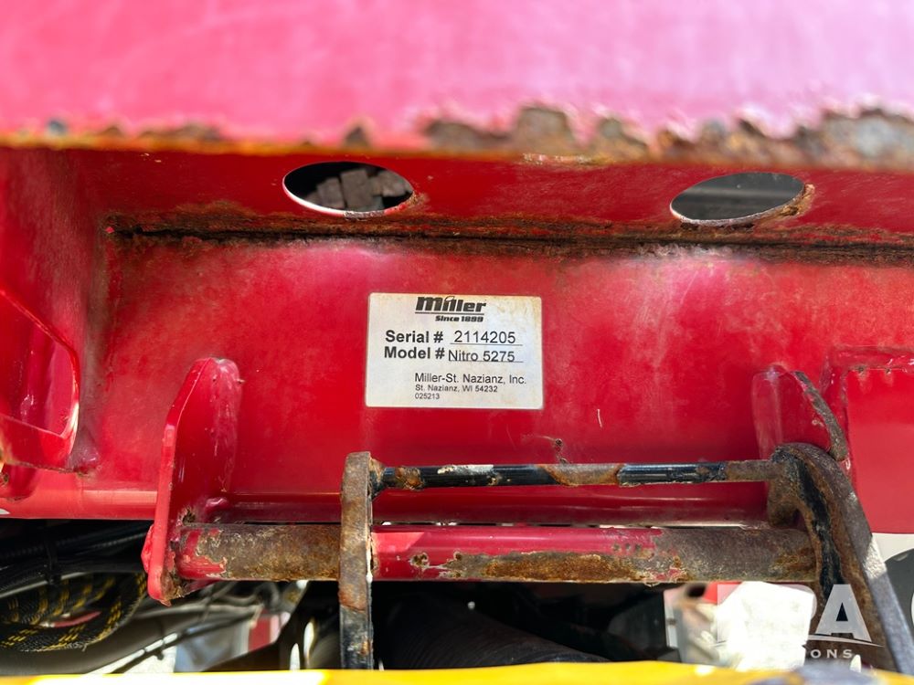 2014 Miller Nitro 5275 Sprayer (NP6213), Cummins 275 hp diesel engine, hydrostatic transmission, heat, air conditioning, Delphi AM/FM radio, buddy seat, 1600 gallon stainless steel liquid system, 90 foot boom, 3 way nozzle bodies, Michelin 380/90R46 tires, Raven Viper 4 monitor, shows 3,952 hours.