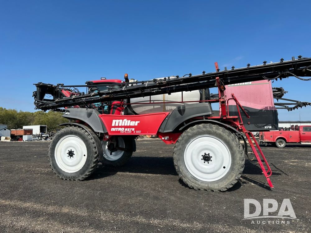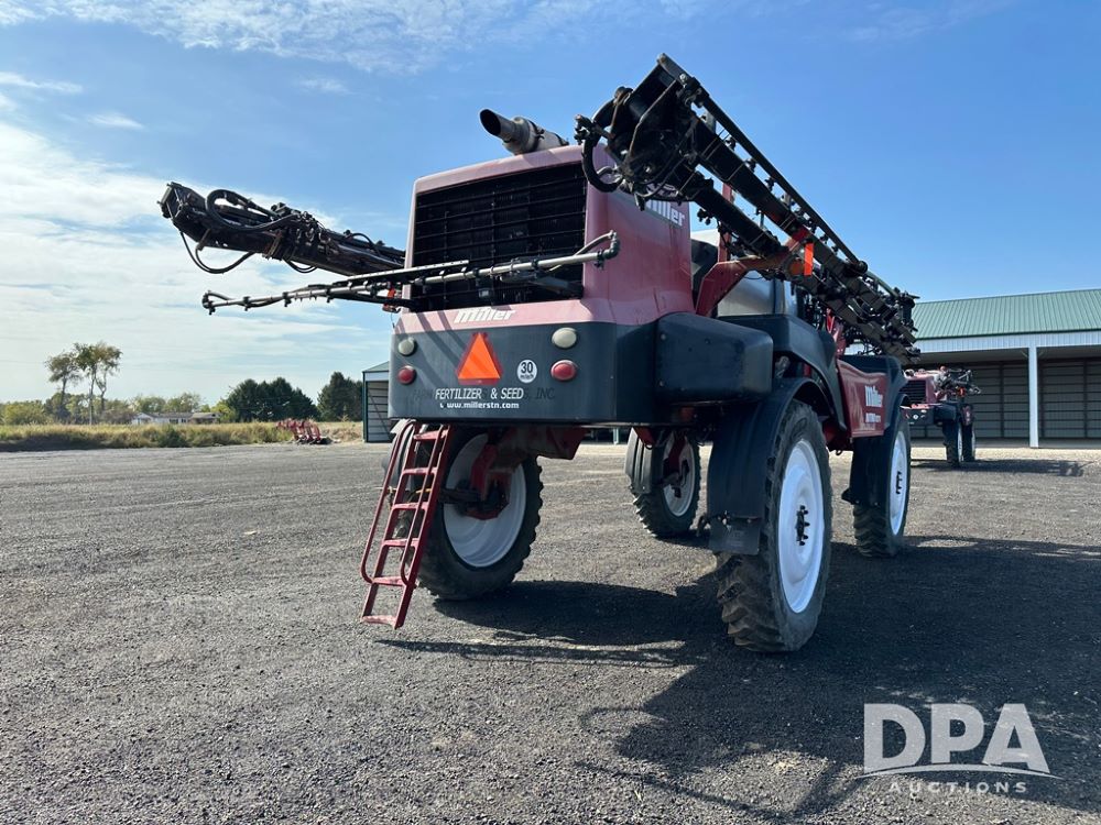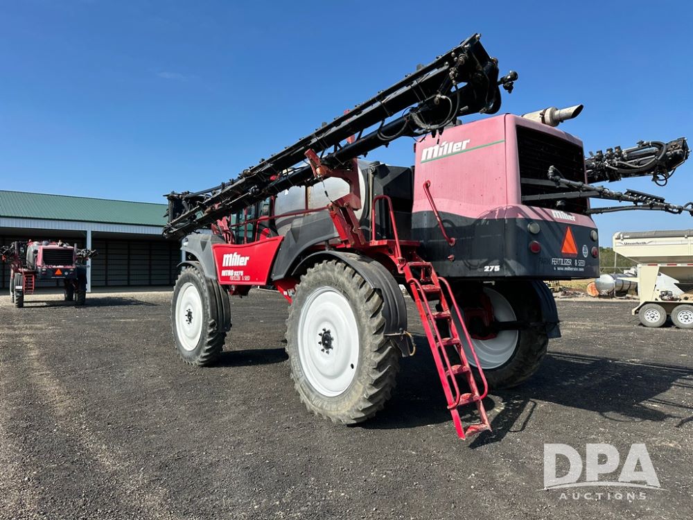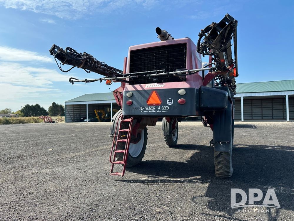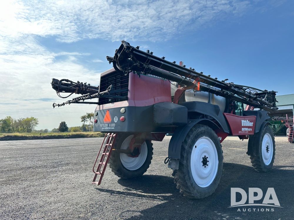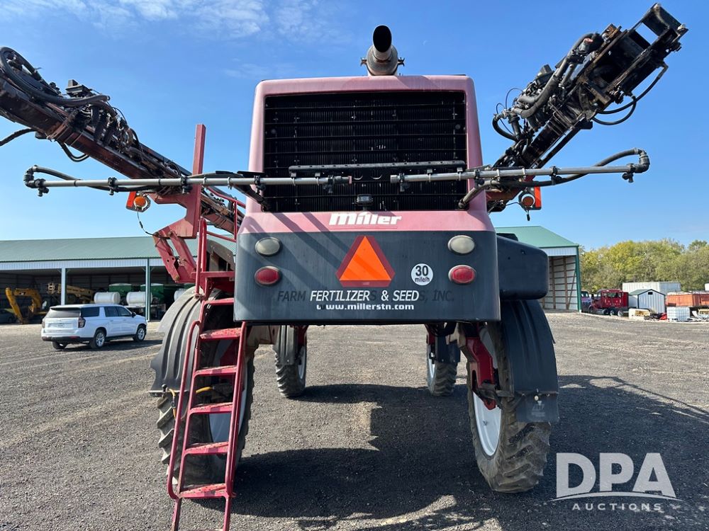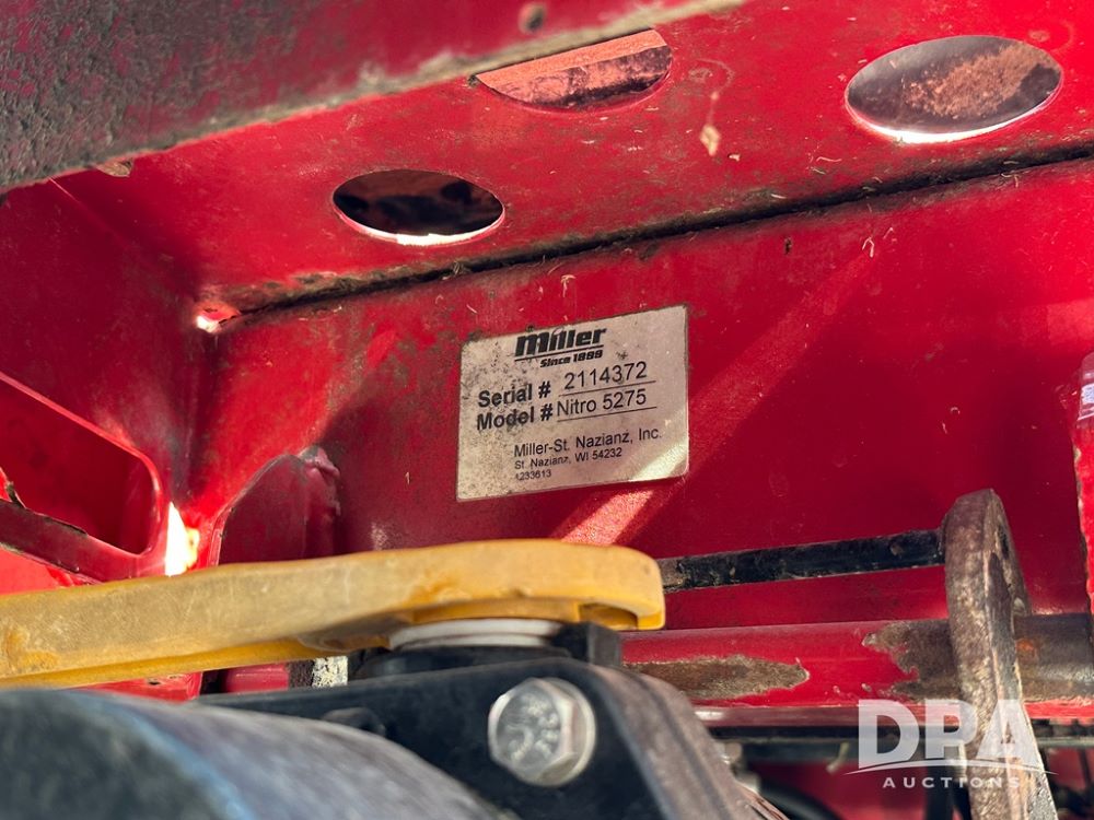 2014 Miller Nitro 5275 Sprayer (NP6214), Cummins 275 hp diesel engine, hydrostatic transmission, heat, air conditioning, Delphi AM/FM radio, buddy seat, 1,600 gallon stainless steel liquid system, 90 foot boom, 3 way nozzle bodies, Michelin 380/90R46 tires, Raven Viper 4 monitor, shows 4,857 hours.