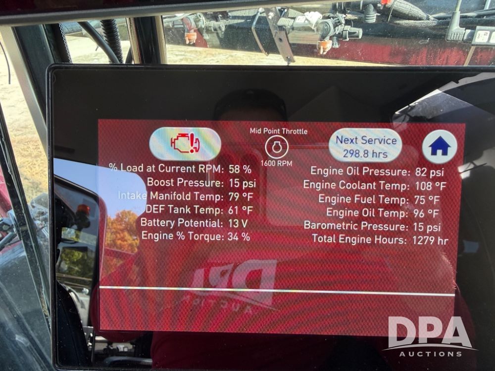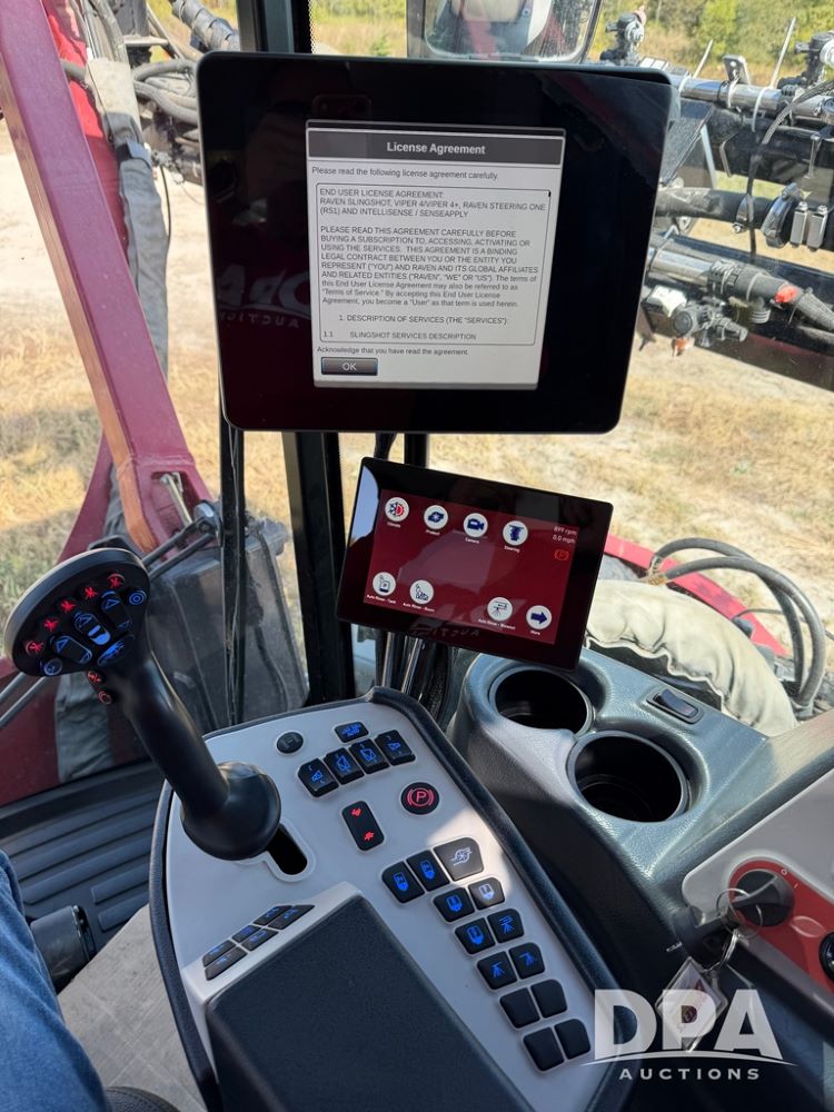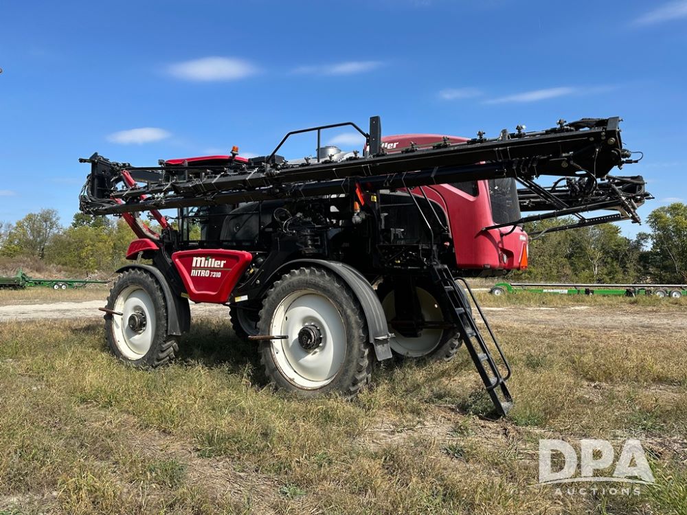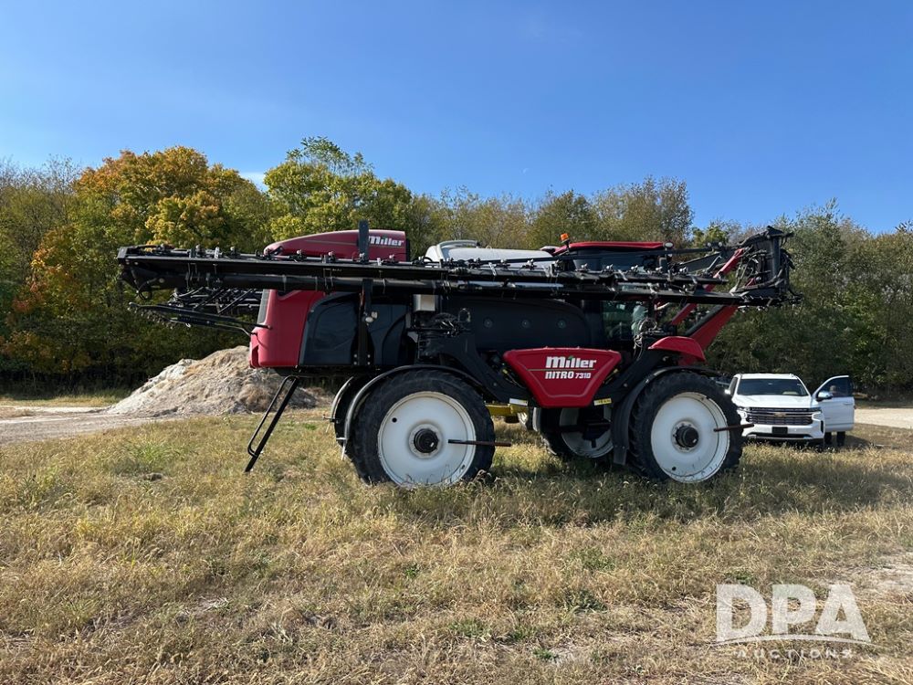 2020 Miller Nitro 7310 Sprayer (NP6221), 6.7L diesel engine, hydrostatic transmission, air conditioning, heat, AM/FM radio, 1200 gallon stainless steel liquid system, 120 foot boom, electronic suspension, Raven Viper 4 monitor, New Holland GPS, RS!, SmarTrax Auto Steer, IntelliSpray, 4 wheel steer, chemical inductor, Michelin 380/90R50 tires, shows 1,279 hours.