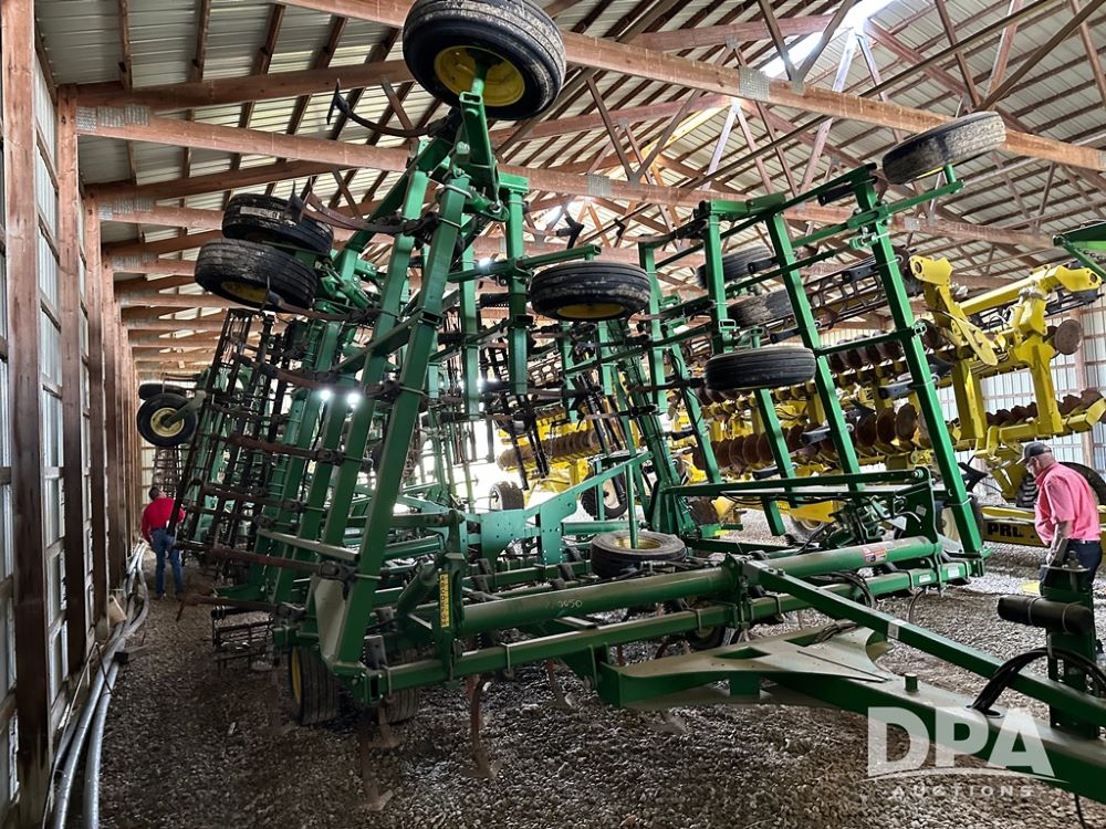 John Deere 2210 Field Cultivator (NP6223), 45 feet, 5 section, floating hitch, reels and harrows, tandem walking wheels.