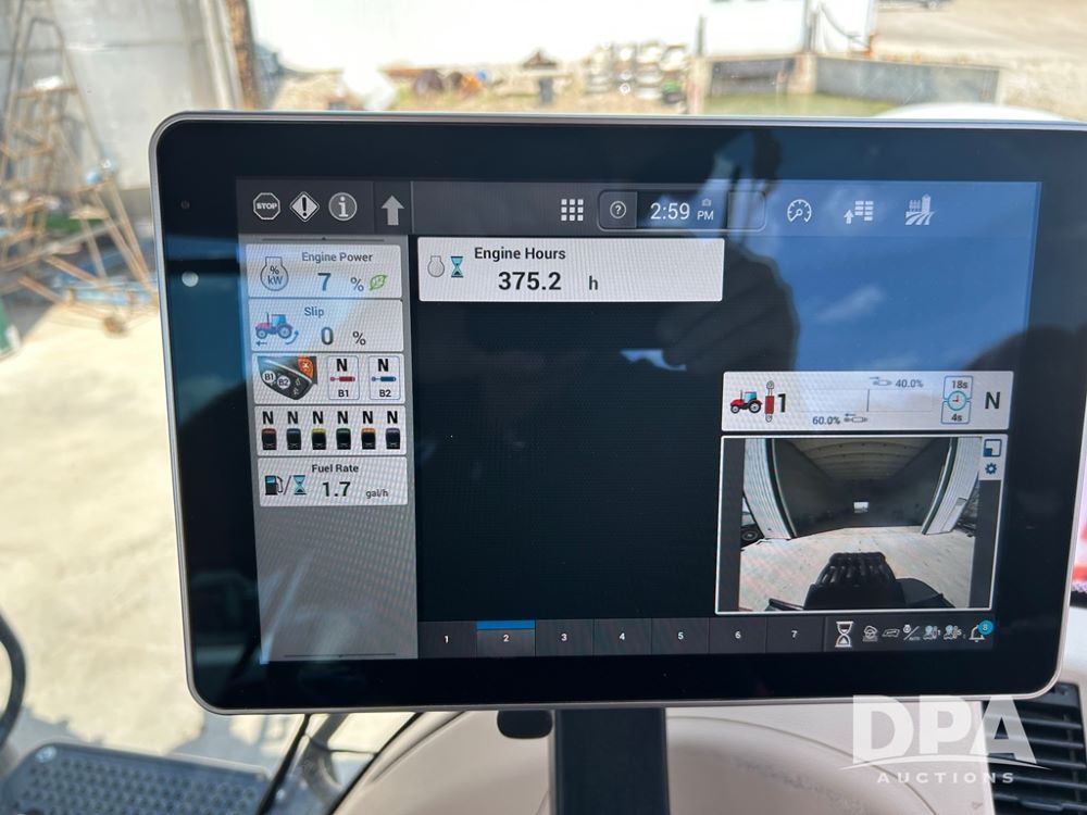 2024 Case IH Magnum 340 Tractor (CP0572), FPT turbocharged diesel engine, powershift transmission, 4WD, luxury technology cab, leather interior, has two high capacity pumps, 1000 PTO, 4 hydraulic ports, heat/air conditioning, AM/FM stereo, Goodyear front and rear duals, rears are 420/85R34, fronts are 480/60R50, AFS Connect, AFS Pro 1200, front weights, shows 263.9 drive line hours, shows 375 engine hours.