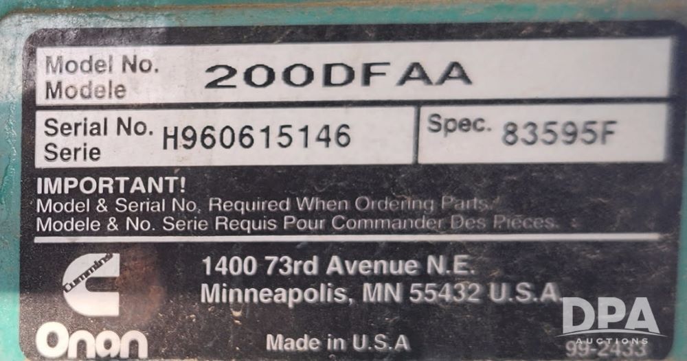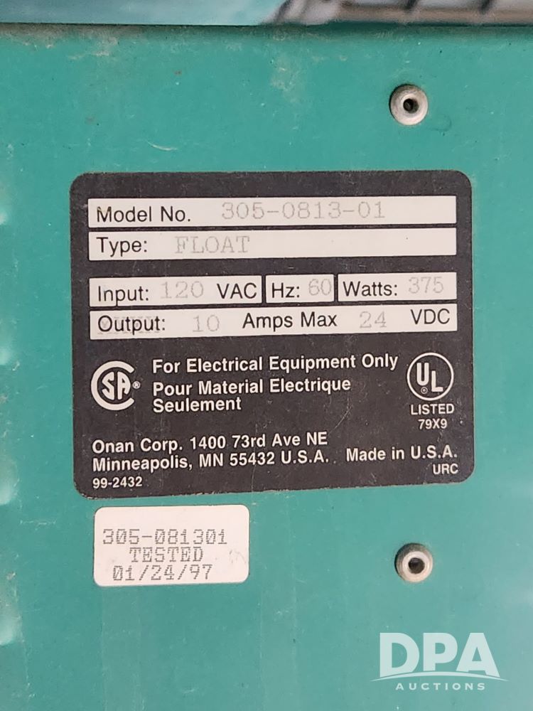 Onan 25,000kw Generator (JM653), diesel powered 25,000 kw generator, 300 gallon fuel tank, trickle charger, 725.8 hours.