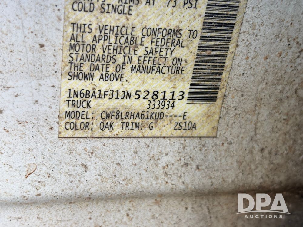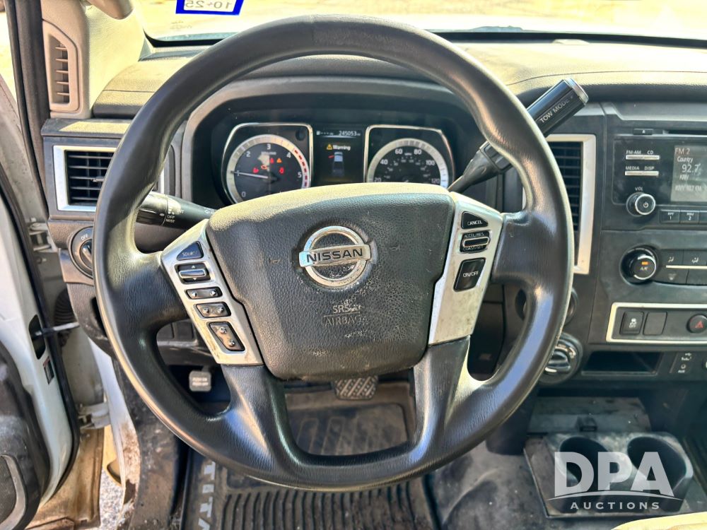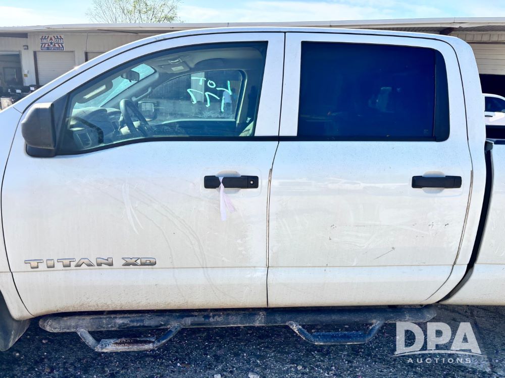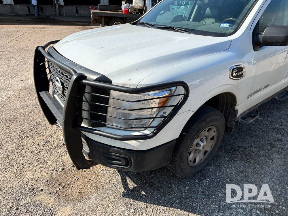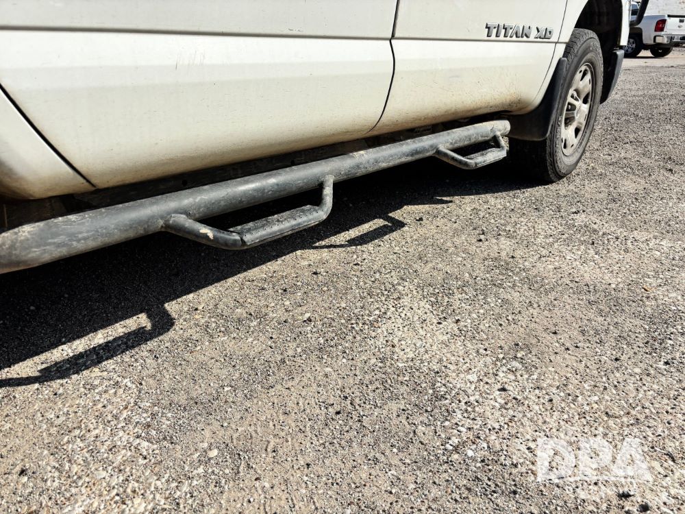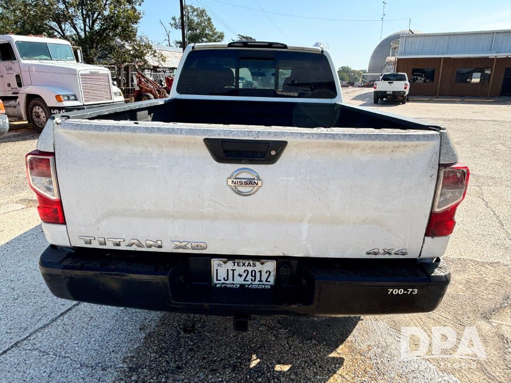 2018 Nissan Titan XD 4x4 Pickup (GP11771, Unit 700-73), 4 door, Cummins turbo diesel engine, automatic transmission, heat, air conditioning, Am/Fm radio, cloth interior, power windows and locks, cruise control, running boards, tow package, grill guard, bed liner, LT245/75R17 tires, shows 245,053 miles.