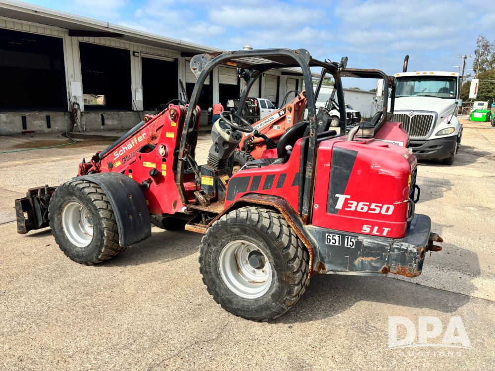 2022 Schaffer 3650T SLT Wheel Loader (GP11761, Unit 651-15), 2022 Schaffer Model 3650T SLT wheel loader, OROPS, Kubota diesel engine, joystick controls, forks, machine weight 3,590 kg, max operating weight 4,300 kg, 425/55R17 tires, shows 1,274 hours.