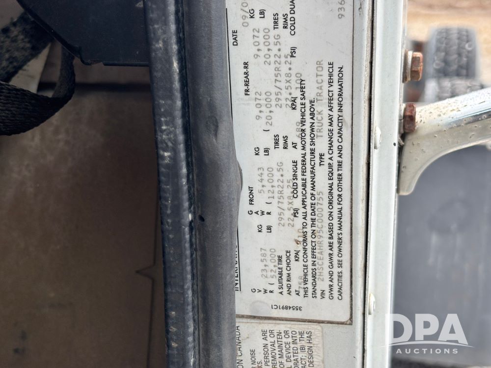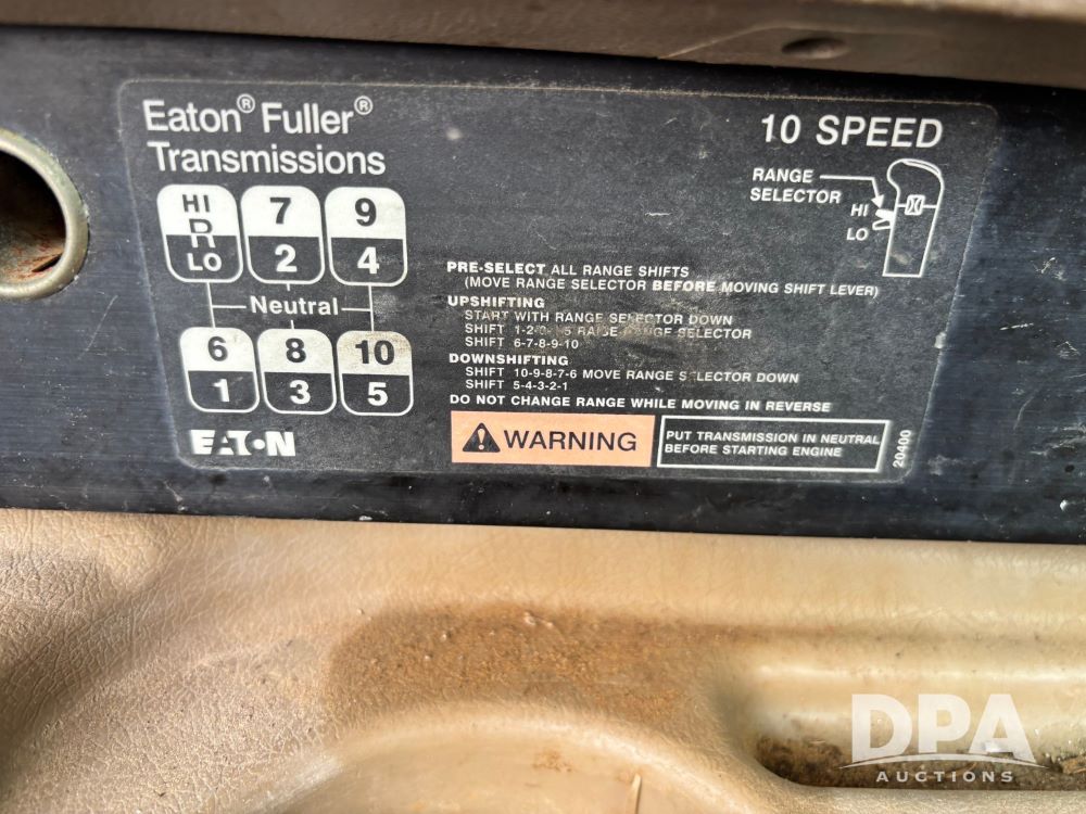 2005 International 9200i Day Cab Truck (GP11767, Unit 652-75), Cummins ISM 350V diesel engine, Eaton Fuller 10 speed transmission, heat, Am/Fm radio, cruise control, tandem axle, air ride suspension, 5th wheel plate, dual fuel tanks, single exhaust, 295/75R22.5 tires, GVWR 52,000 pounds, shows 1,105,658 miles.