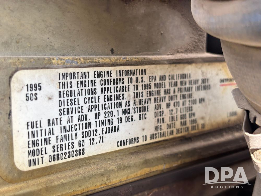 1995 International Eagle Truck (GP11766, Unit 675-48), Detroit Series 60 - 12.7L diesel engine, Roadranger 9 speed transmission, heat, Am/Fm radio, cruise control, Pro Sleeper, tandem axle, air ride suspension, 5th wheel plate, wet kit, dual fuel tanks, single exhaust, 285/75R24.5 tires, GVWR 52,000 pounds, approx. 888,292 miles.