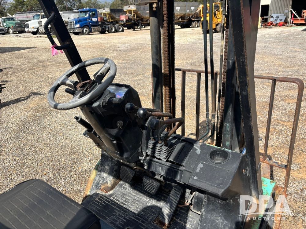 Mitsubishi Caterpillar Forklift (GP11809, Unit 657-49), Mitsubishi Caterpillar forklift, gas, shuttle shift, forks, tilt, side shift, 7.00-12 front tires, 6.90/6.00-9 rear tires, approx. 8,673 hours.